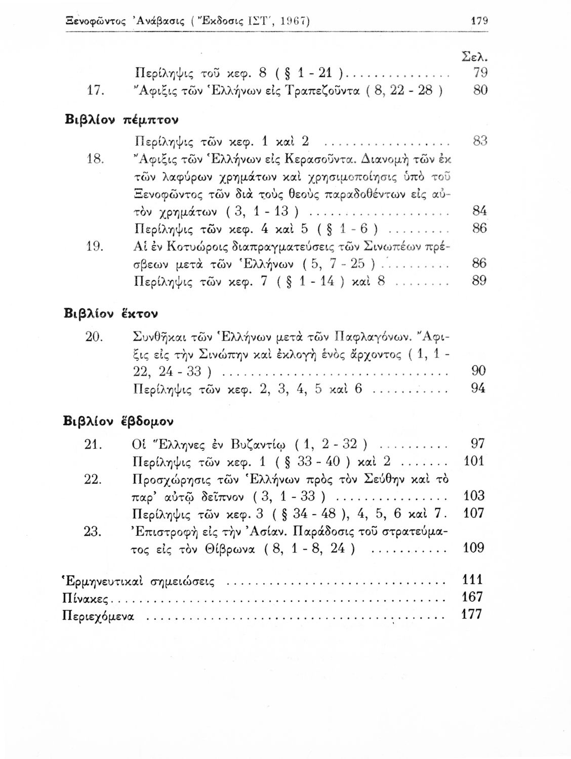 Σχολικό εγχειρίδιο Αρχαίων Ελληνικών για τη Γ' Γυμνασίου που περιέχει αποσπάσματα από την Ανάβαση του Ξενοφώντα και ερμηνευτικά και ετυμολογικά σχόλια.
