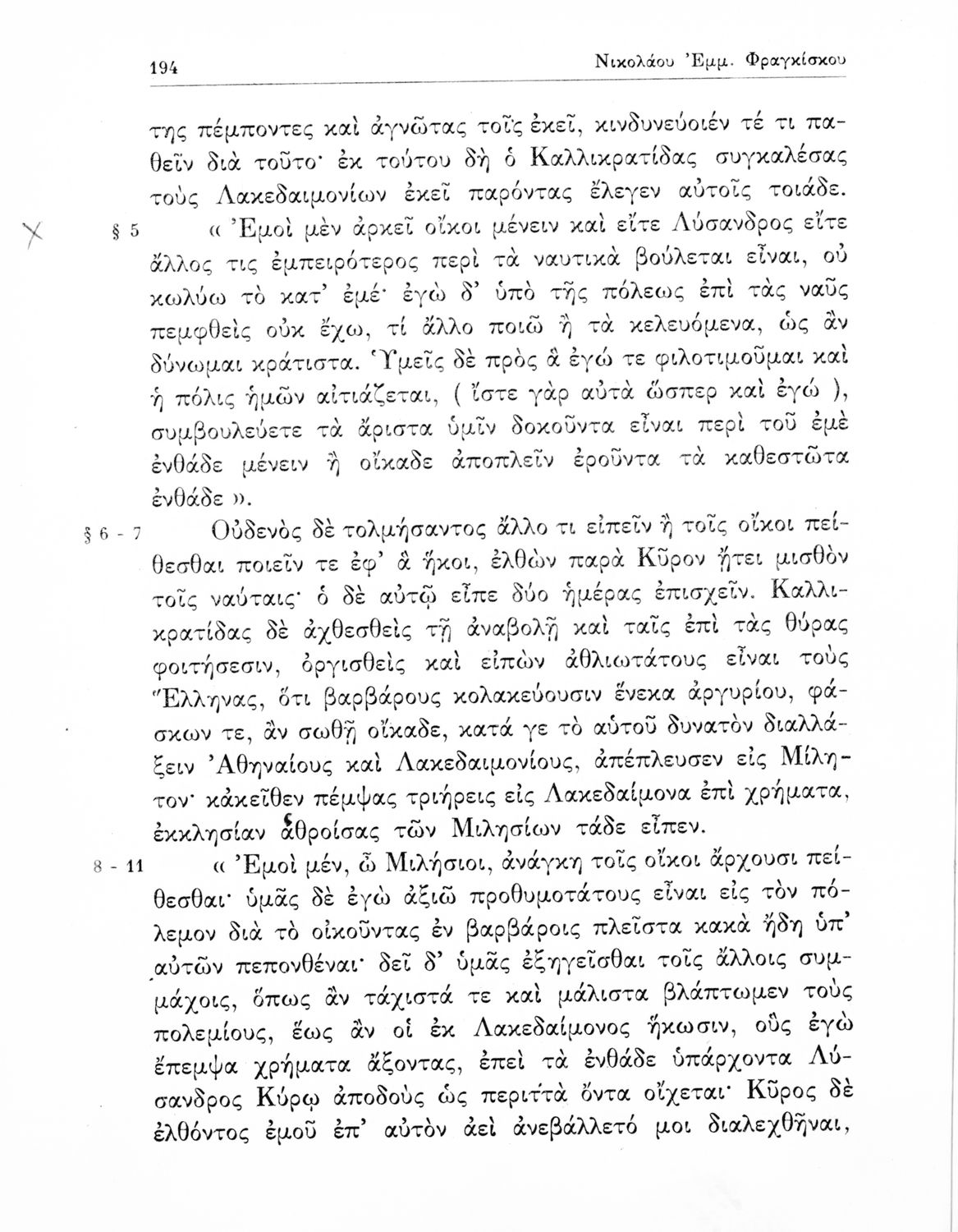 Ξενοφών, Κυριάκος Κοσμάς, Ν. Φραγκίσκος (σχόλια)