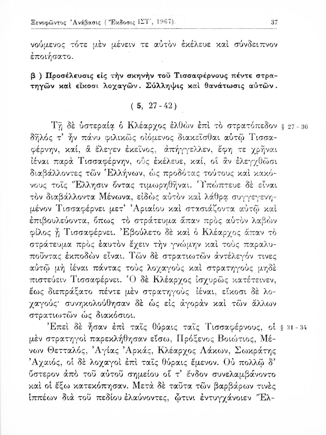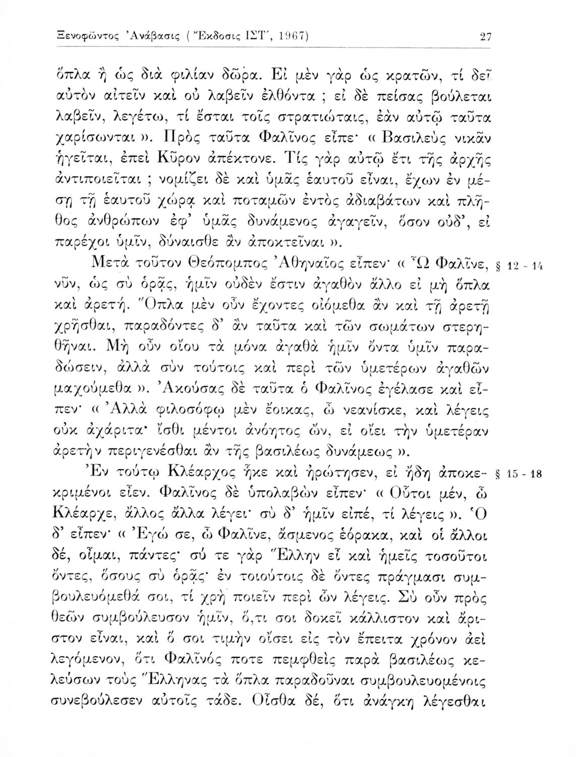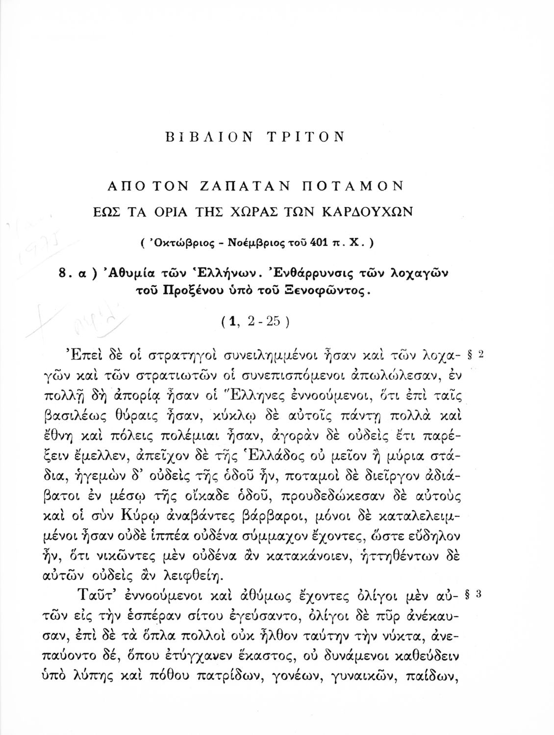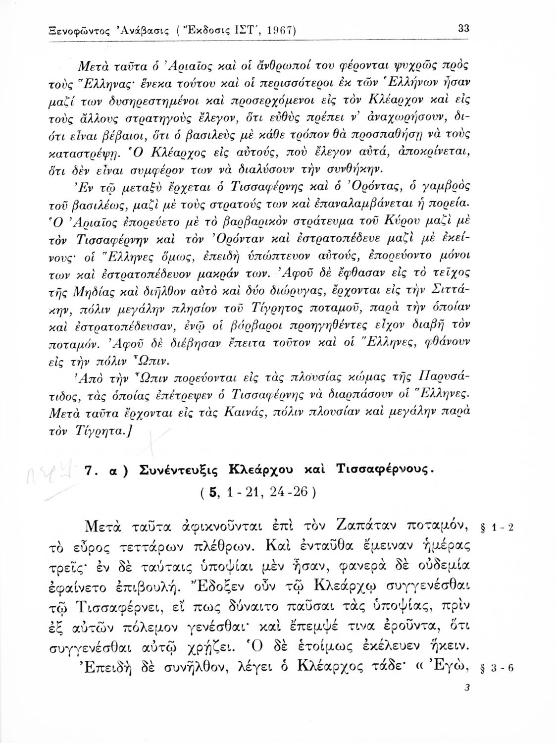 Ξενοφώντος Ανάβασις (Εκλογαί), Γ΄ Γυμνασίου