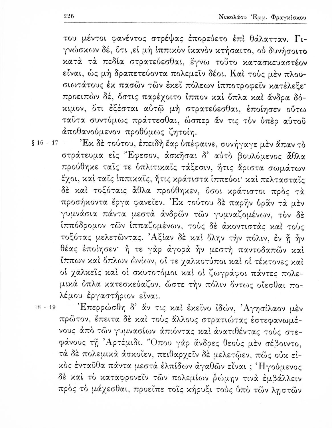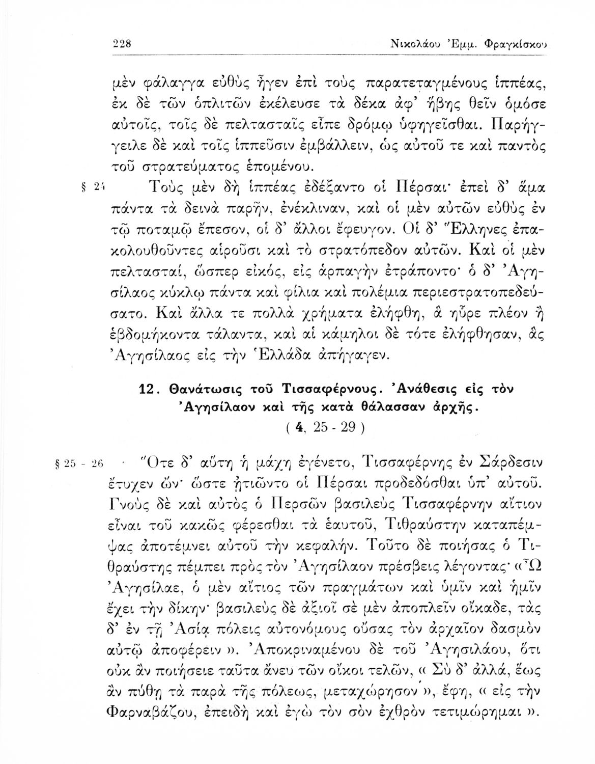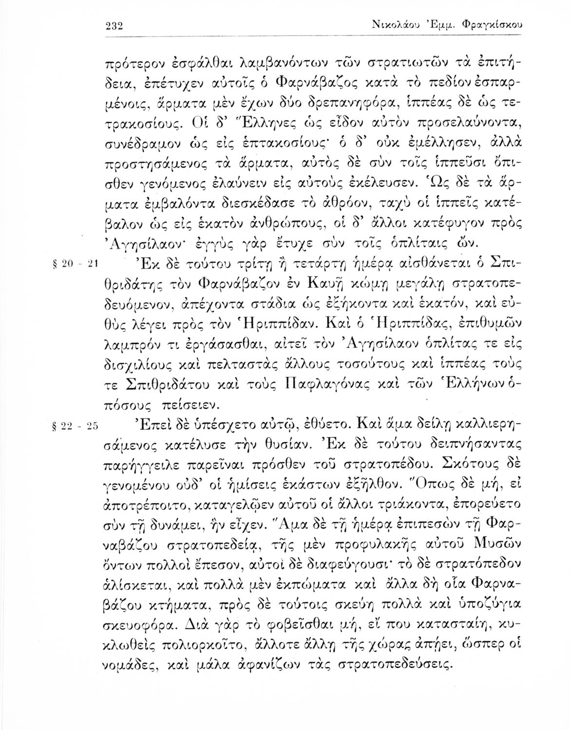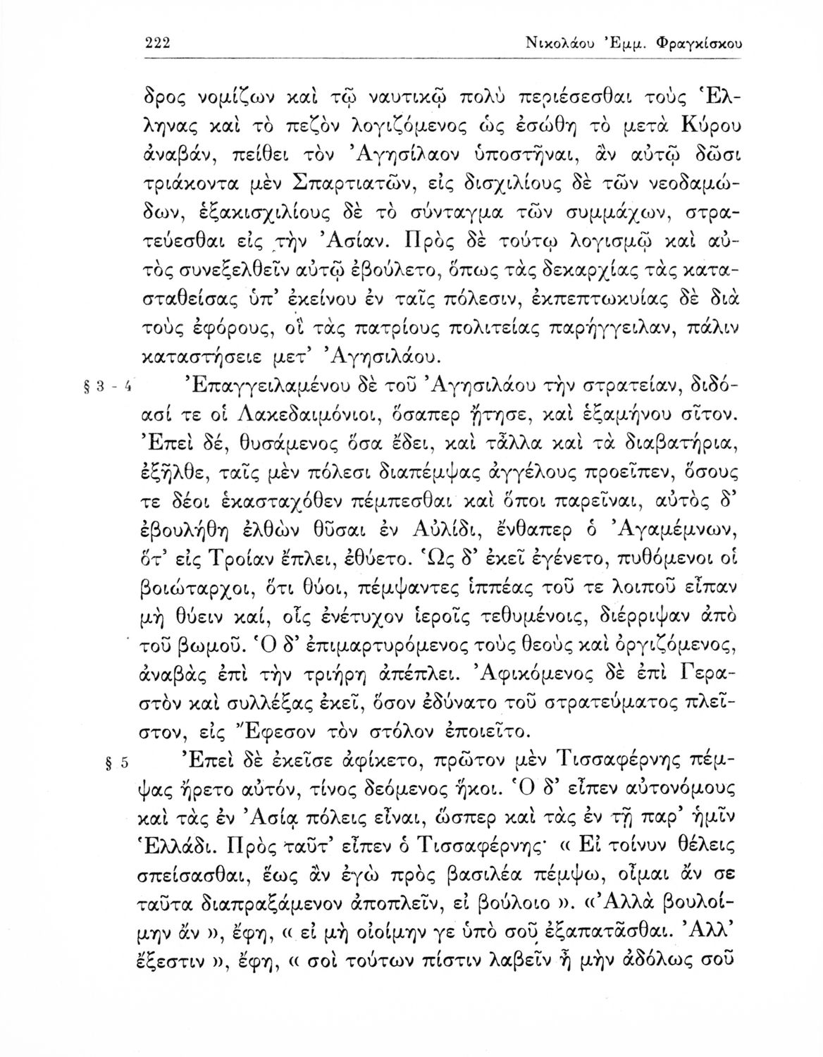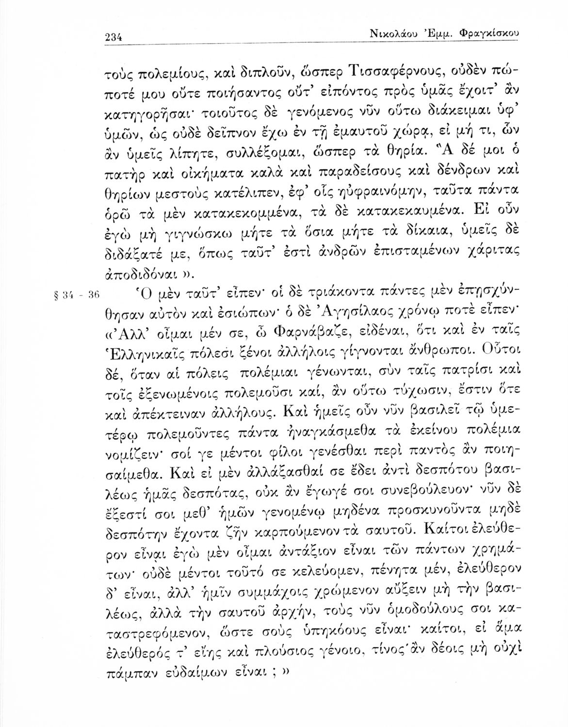 Ξενοφών, Κυριάκος Κοσμάς, Ν. Φραγκίσκος (σχόλια)