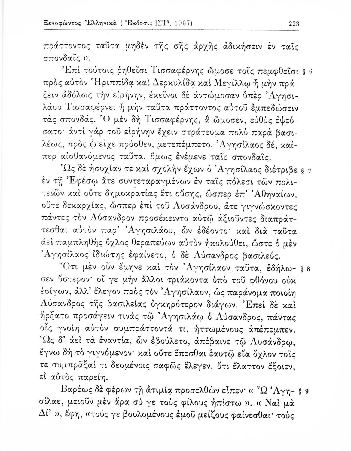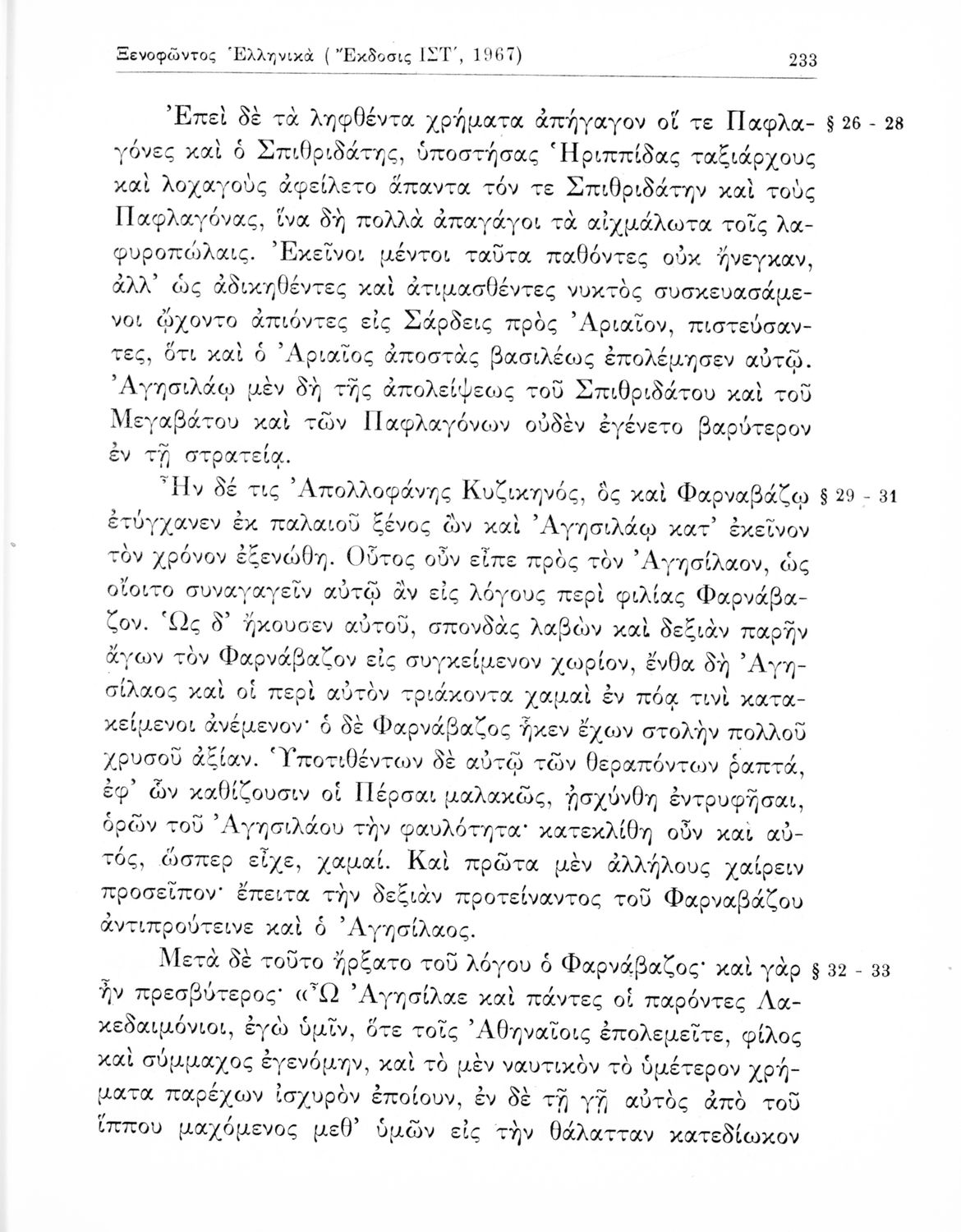 Σχολικό εγχειρίδιο της Γ΄ Γυμνασίου για το μάθημα των Αρχαίων. Περιέχει αποσπάσματα από το έργο του Ξενοφώντα, ερμηνευτικά και πραγματολογικά σχόλια και λεξιλογικές παρατηρήσεις.
