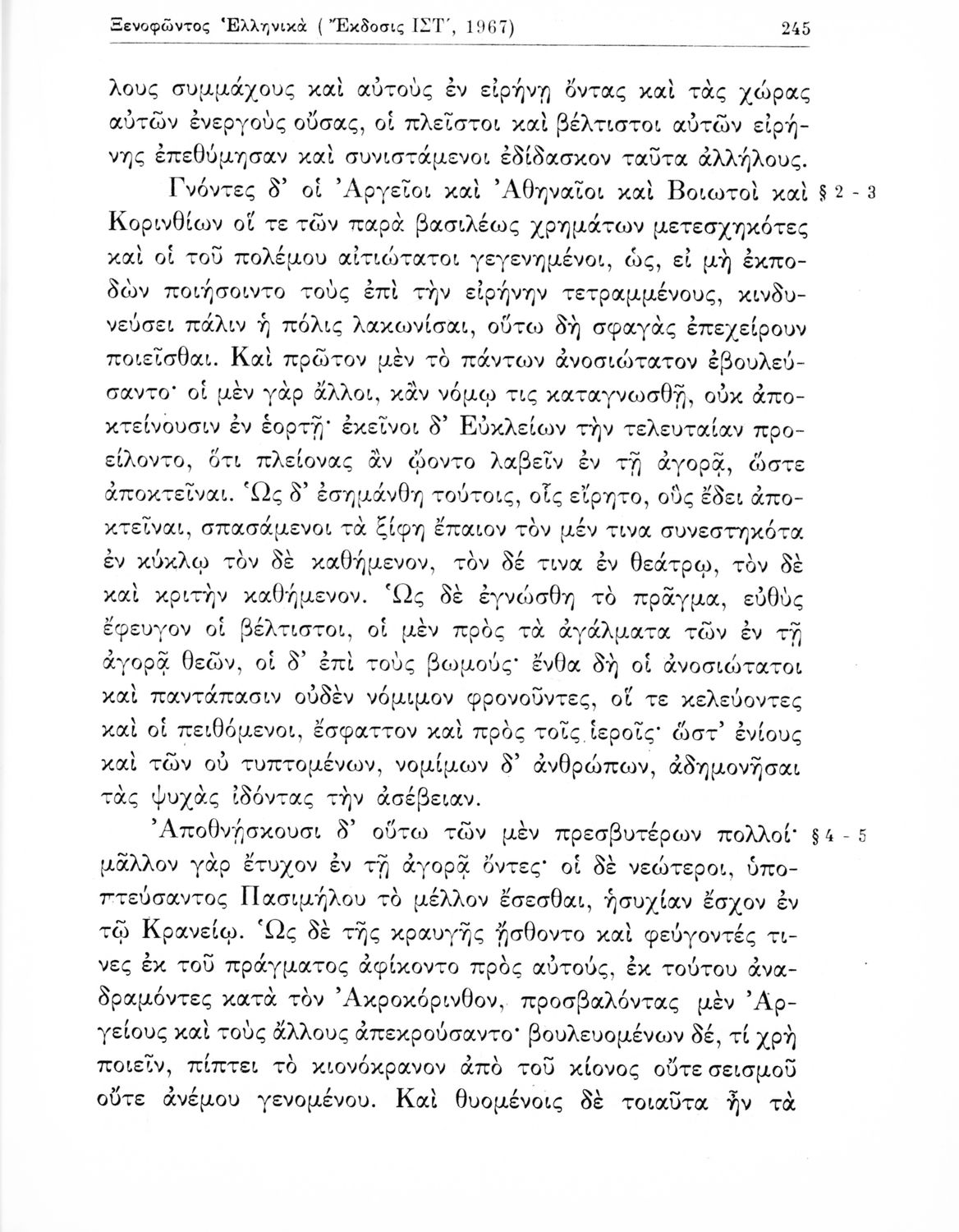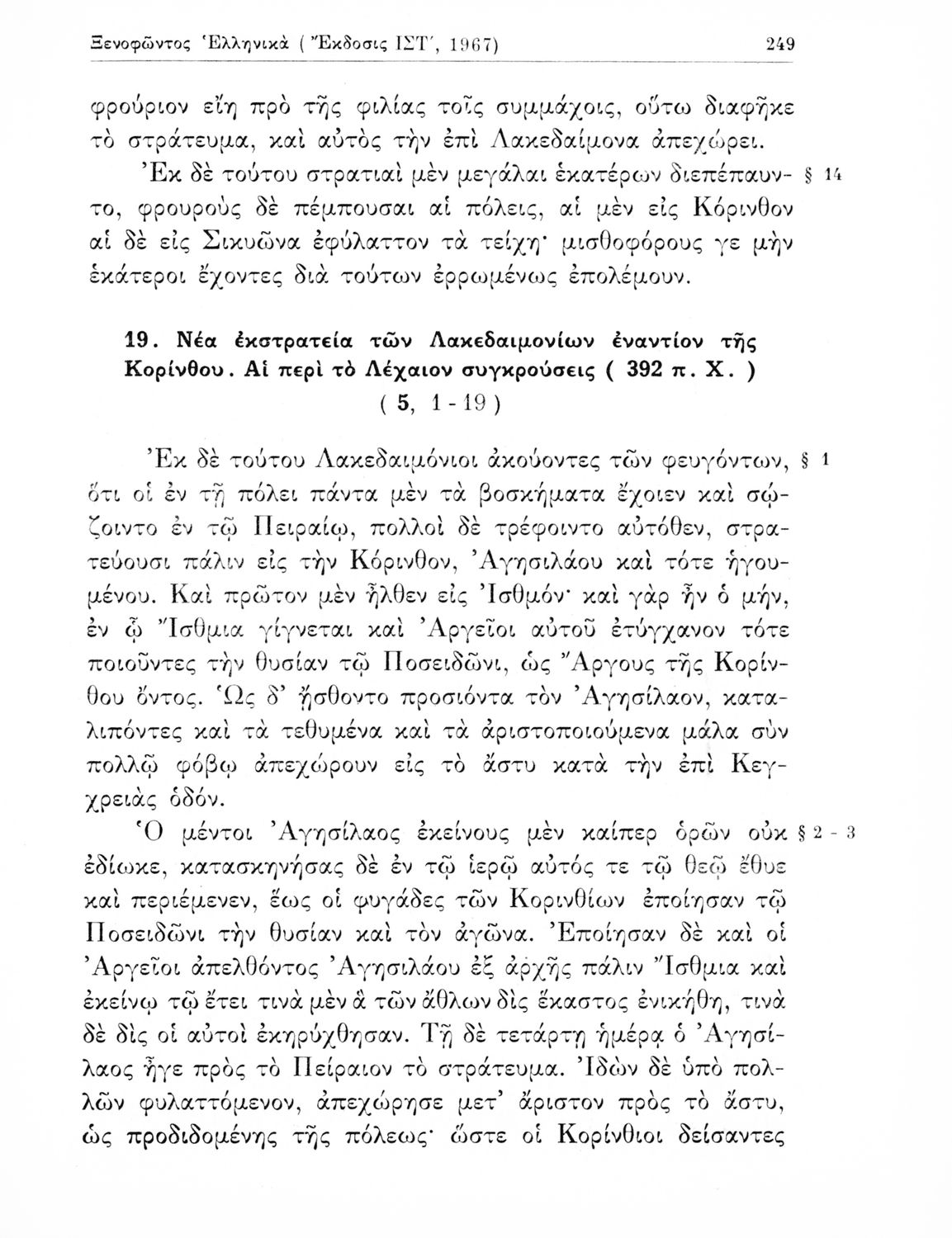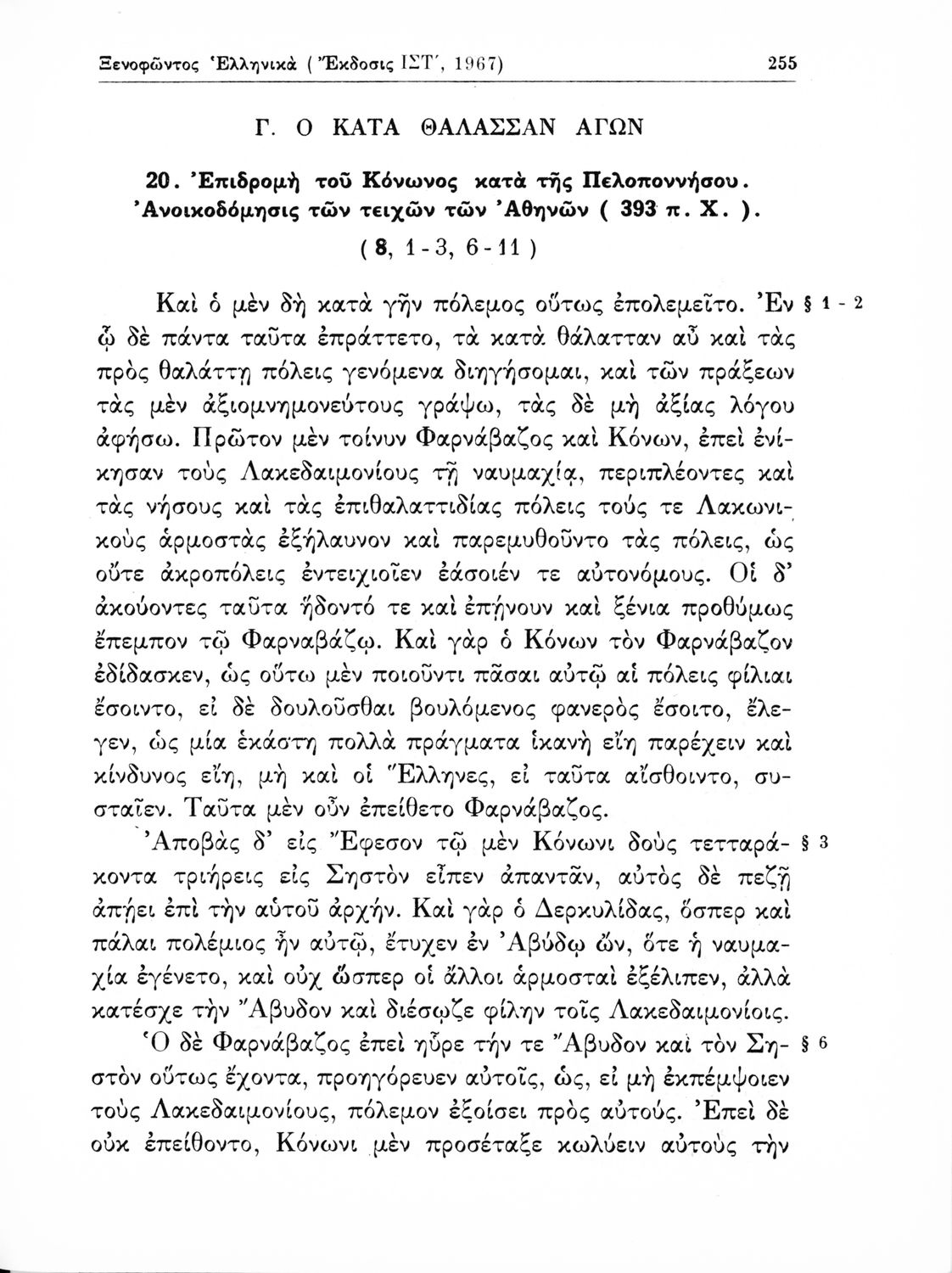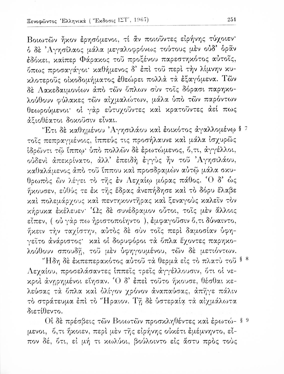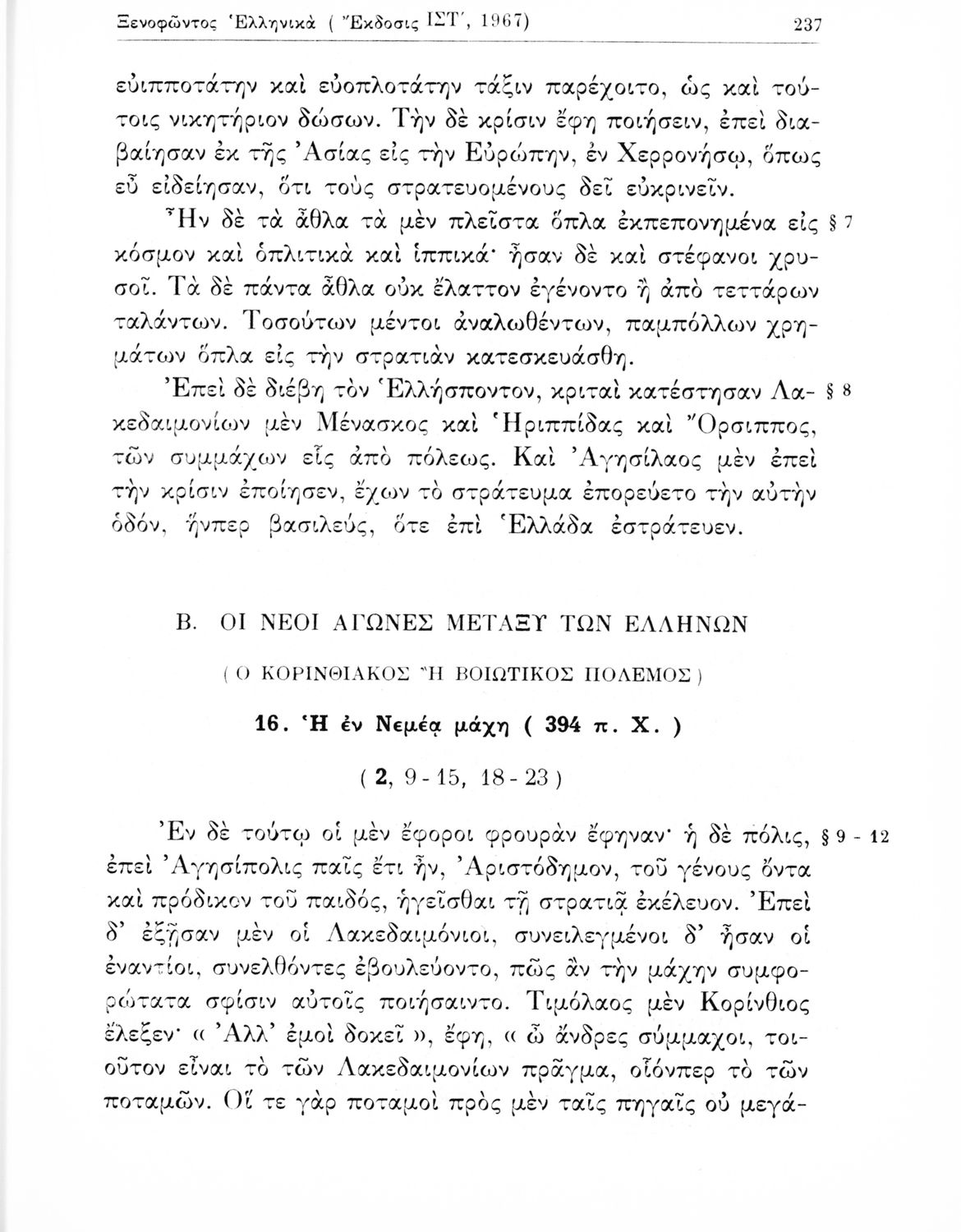 Σχολικό εγχειρίδιο Αρχαίων Ελληνικών για τη Γ' Γυμνασίου που περιέχει αποσπάσματα από την Ανάβαση του Ξενοφώντα και ερμηνευτικά και ετυμολογικά σχόλια.