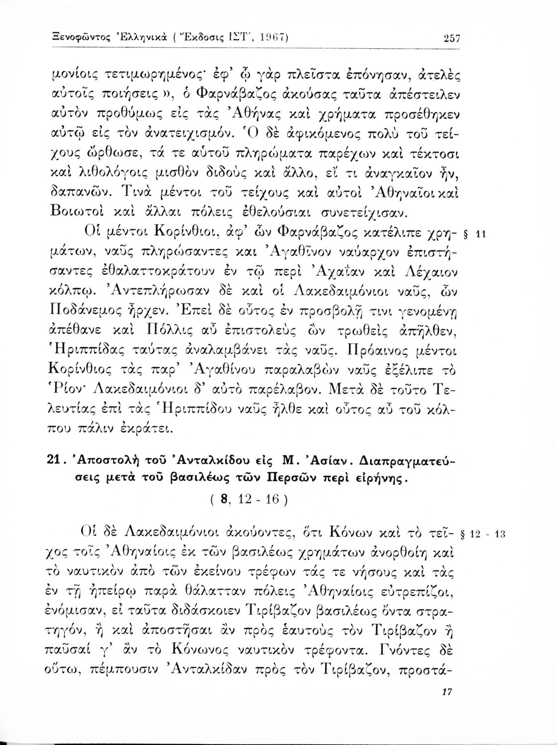 Σχολικό εγχειρίδιο Αρχαίων Ελληνικών για τη Γ' Γυμνασίου που περιέχει αποσπάσματα από την Ανάβαση του Ξενοφώντα και ερμηνευτικά και ετυμολογικά σχόλια.