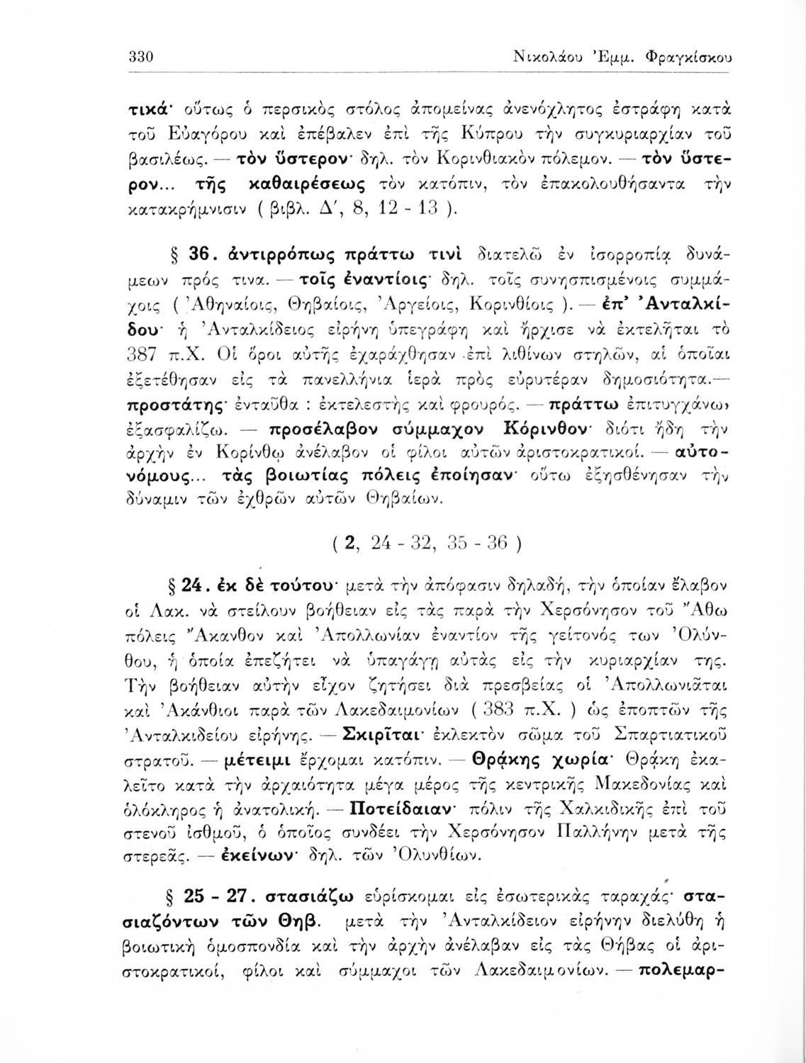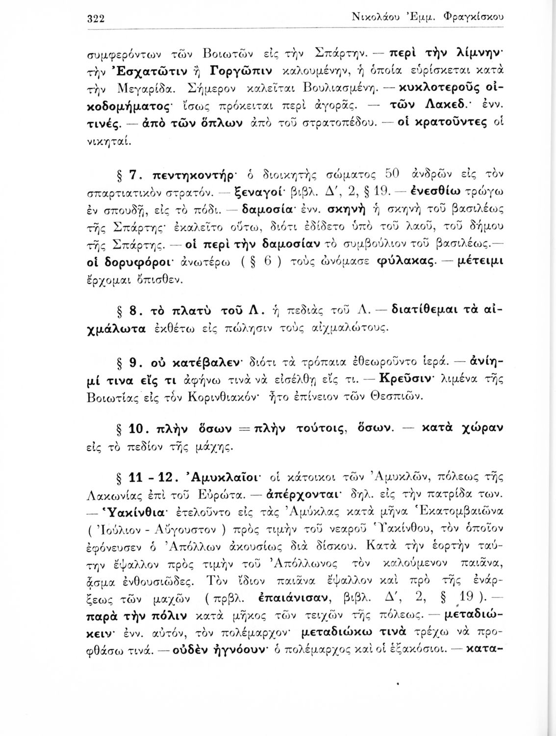 Ξενοφών, Κυριάκος Κοσμάς, Ν. Φραγκίσκος (σχόλια)