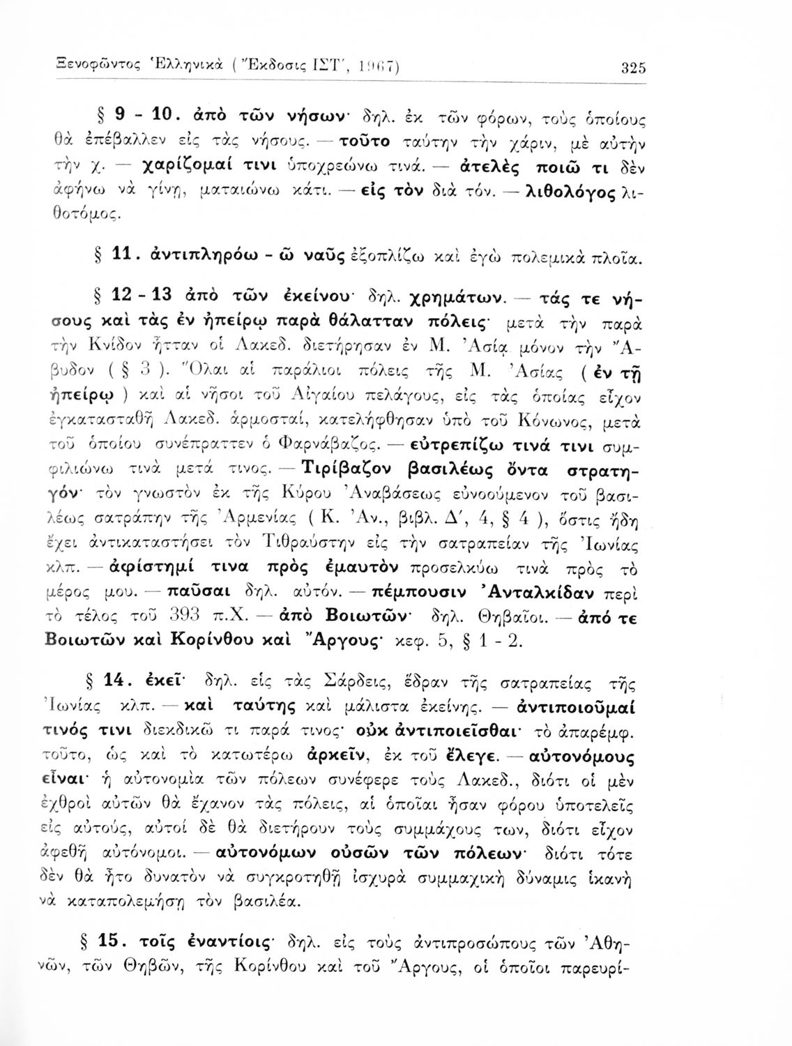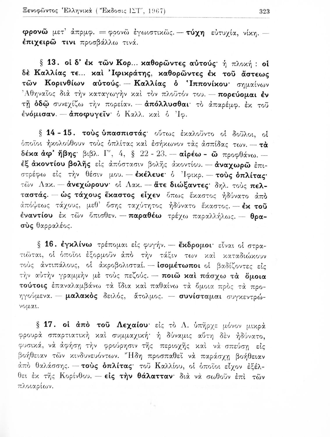 Σχολικό εγχειρίδιο Αρχαίων Ελληνικών για τη Γ' Γυμνασίου που περιέχει αποσπάσματα από την Ανάβαση του Ξενοφώντα και ερμηνευτικά και ετυμολογικά σχόλια.