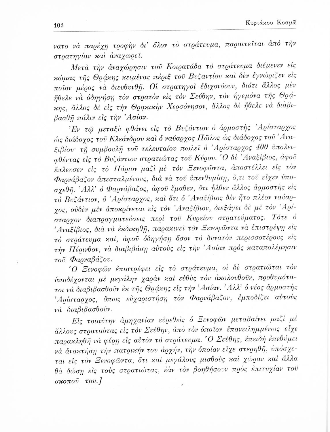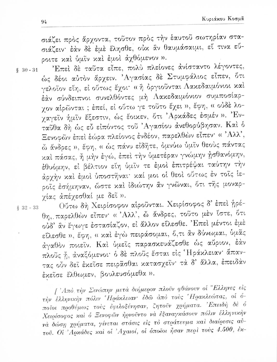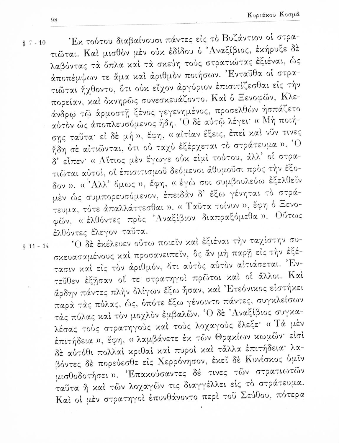 Ξενοφών, Κυριάκος Κοσμάς (σχόλια)