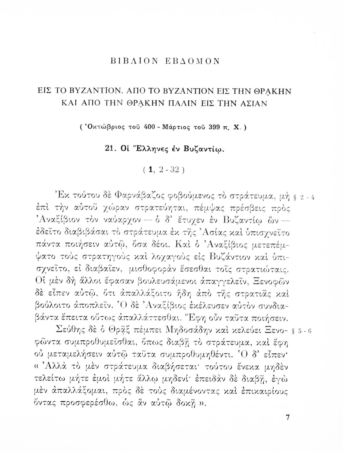 Σχολικό εγχειρίδιο της Γ΄ Γυμνασίου για το μάθημα των Αρχαίων. Περιέχει αποσπάσματα από το έργο του Ξενοφώντα, ερμηνευτικά και πραγματολογικά σχόλια και λεξιλογικές παρατηρήσεις.
