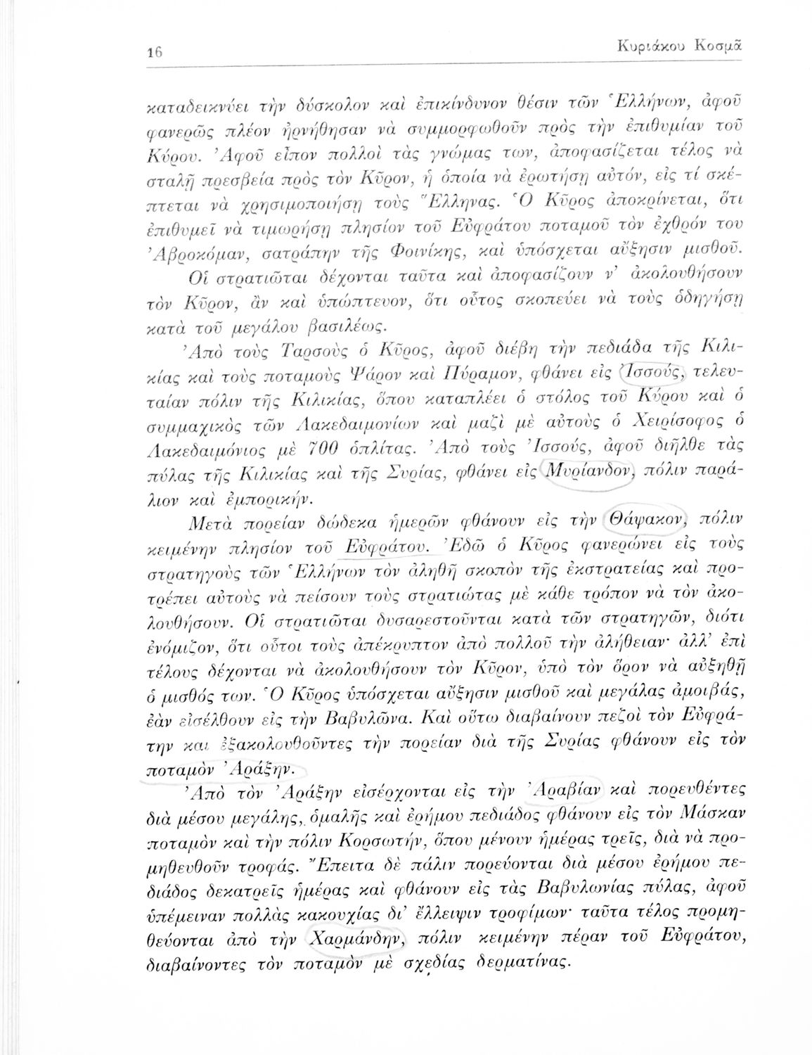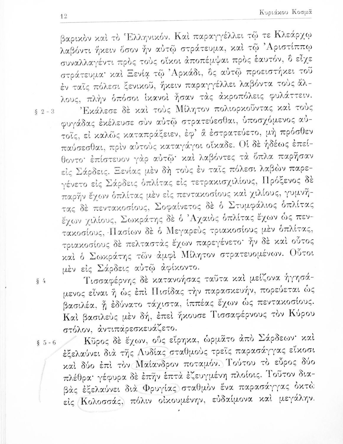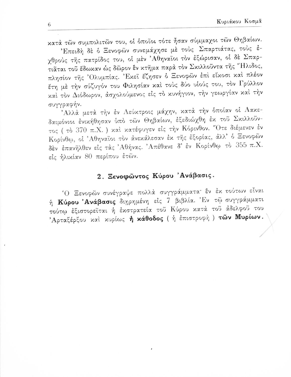 Ξενοφών, Κυριάκος Κοσμάς (σχόλια)