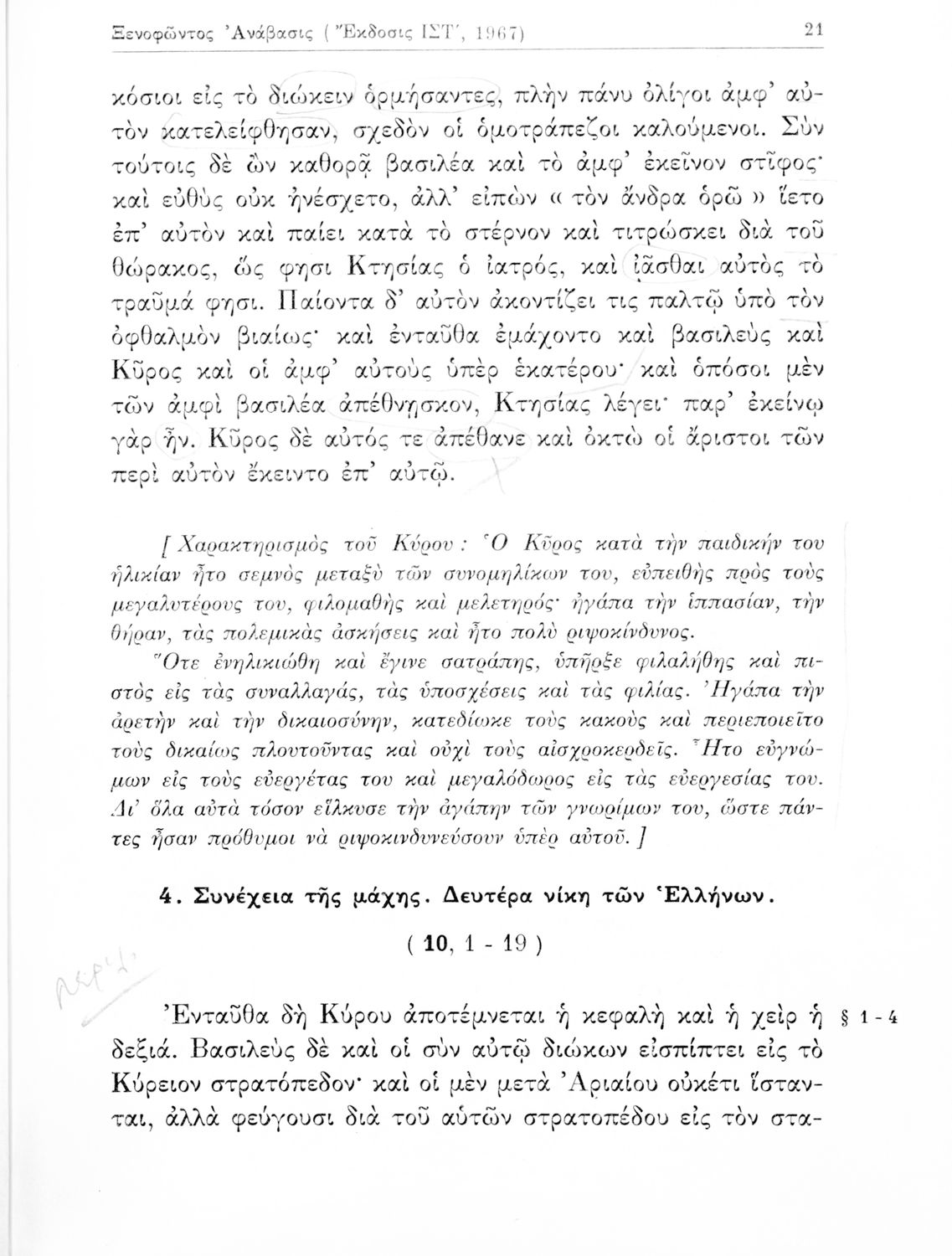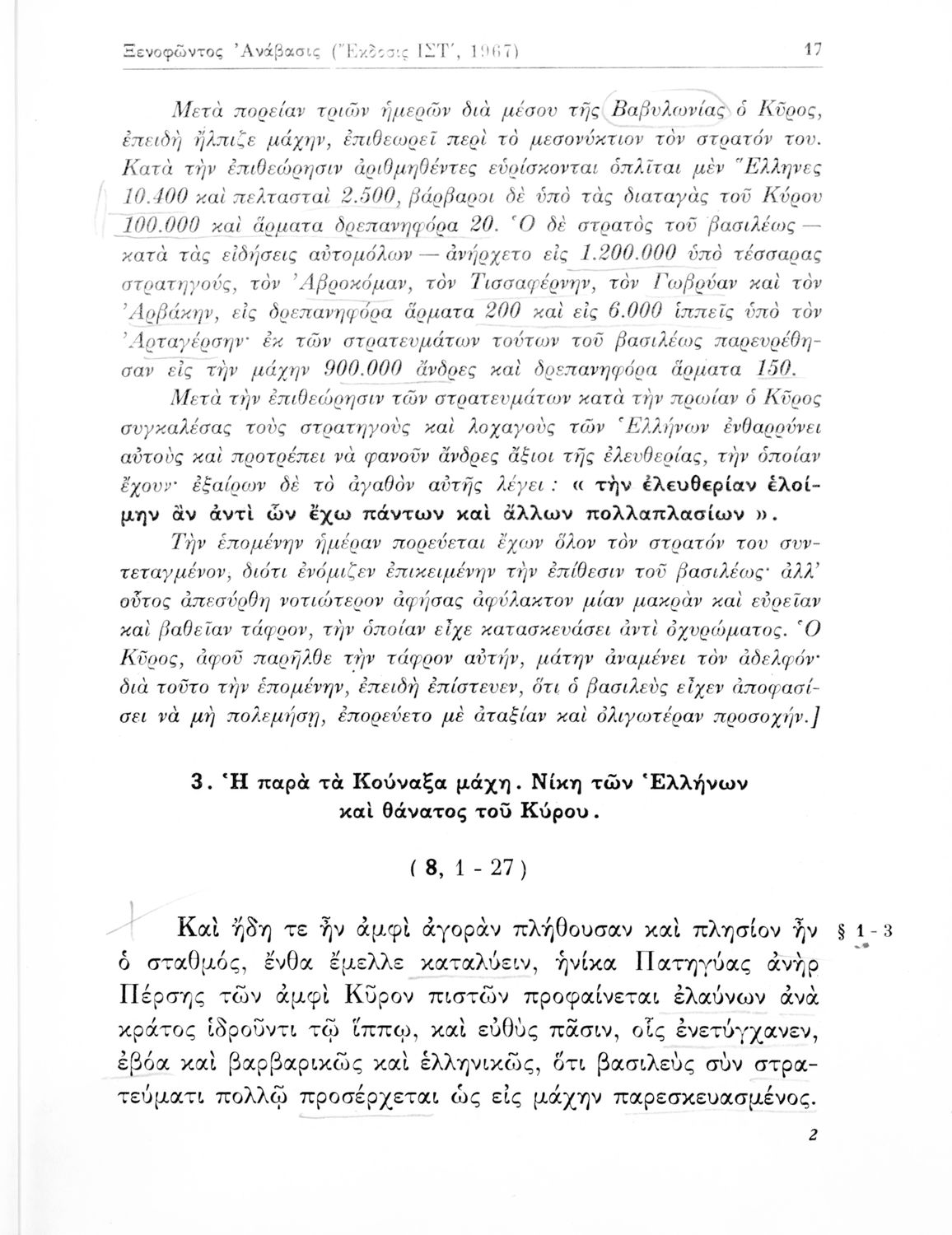Ξενοφώντος Ανάβασις (Εκλογαί), Γ΄ Γυμνασίου