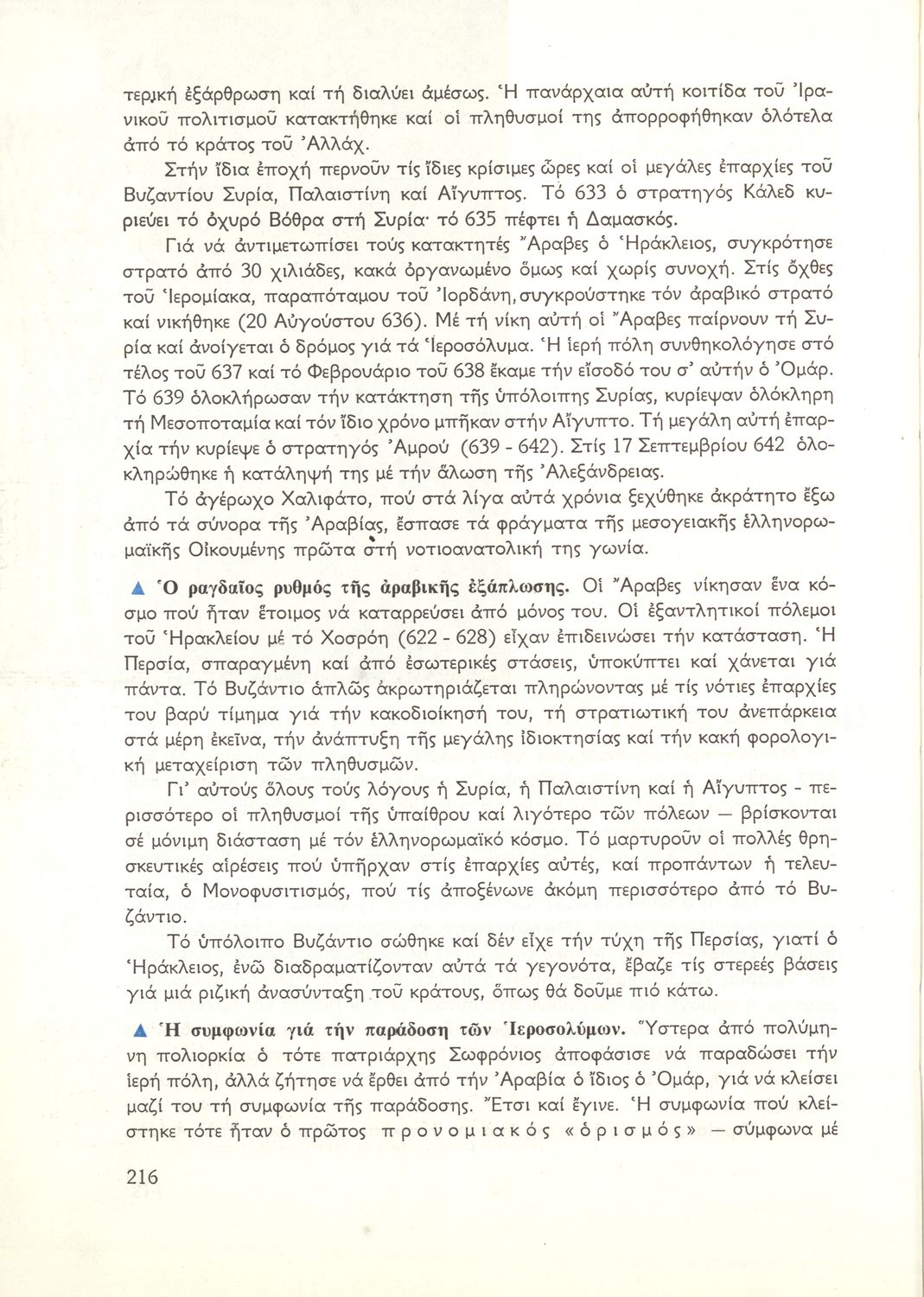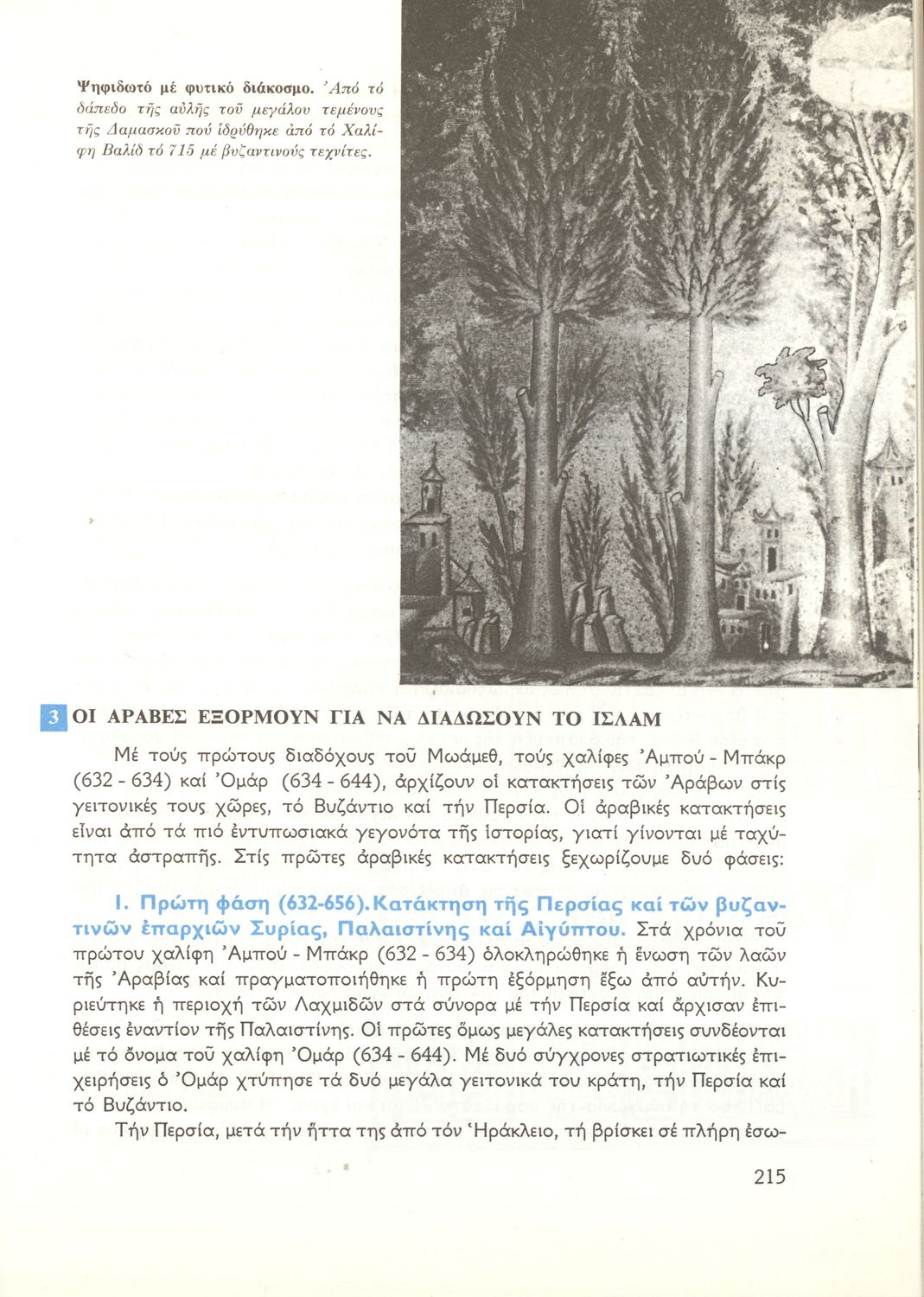 Σχολικό εγχειρίδιο Ιστορίας Β΄ Γυμνασίου που καλύπτει την περίοδο από την κατάληψη της Ελλάδας από τους Ρωμαίους ως την πτώση της Βυζαντινής Αυτοκρατορίας. Γίνεται ιδιαίτερη μνεία στο χριστιανικό και ελληνικό στοιχείο του Βυζαντίου. Προτείνει μια υλιστική ανάγνωση της Ιστορίας την οποία διαβάζει από την οπτική των κοινωνικών συγκρούσεων.