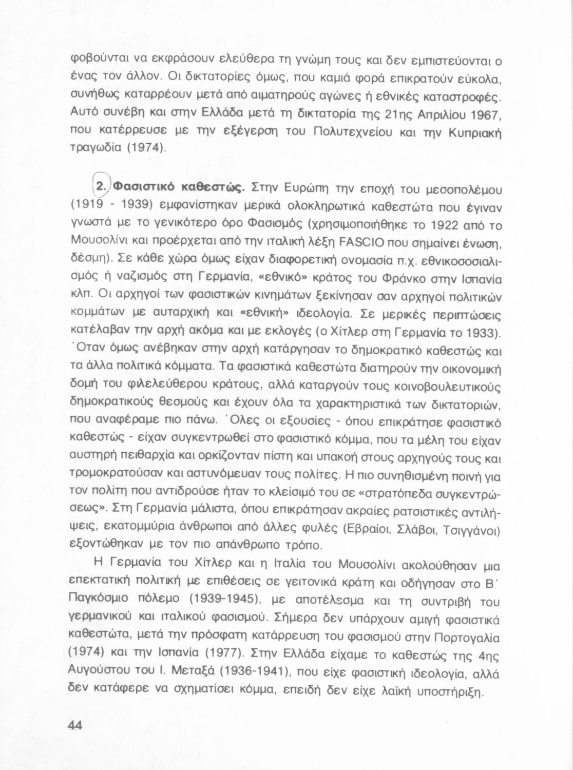 Σχολικό εγχειρίδιο της Γ΄ Γυμνασίου για το μάθημα της Πολιτικής Αγωγής. Αρχικά αναφέρεται γενικά στις λειτουργίες της κοινωνίας, μετά στη διοίκηση, και τα διοικητικά συστήματα. Στη συνέχεια παρουσιάζει τα στοιχεία του δημοκρατικού πολιτεύματος. Αναλύει τους δημοκρατικούς θεσμούς και τέλος παρουσιάζει τους Διεθνείς Οργανισμούς.