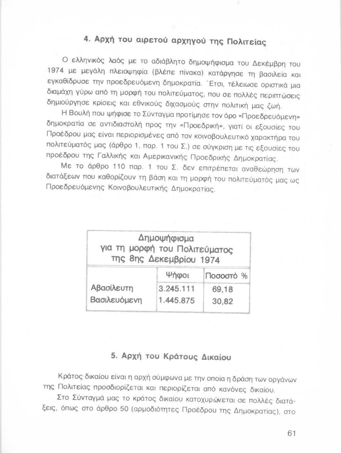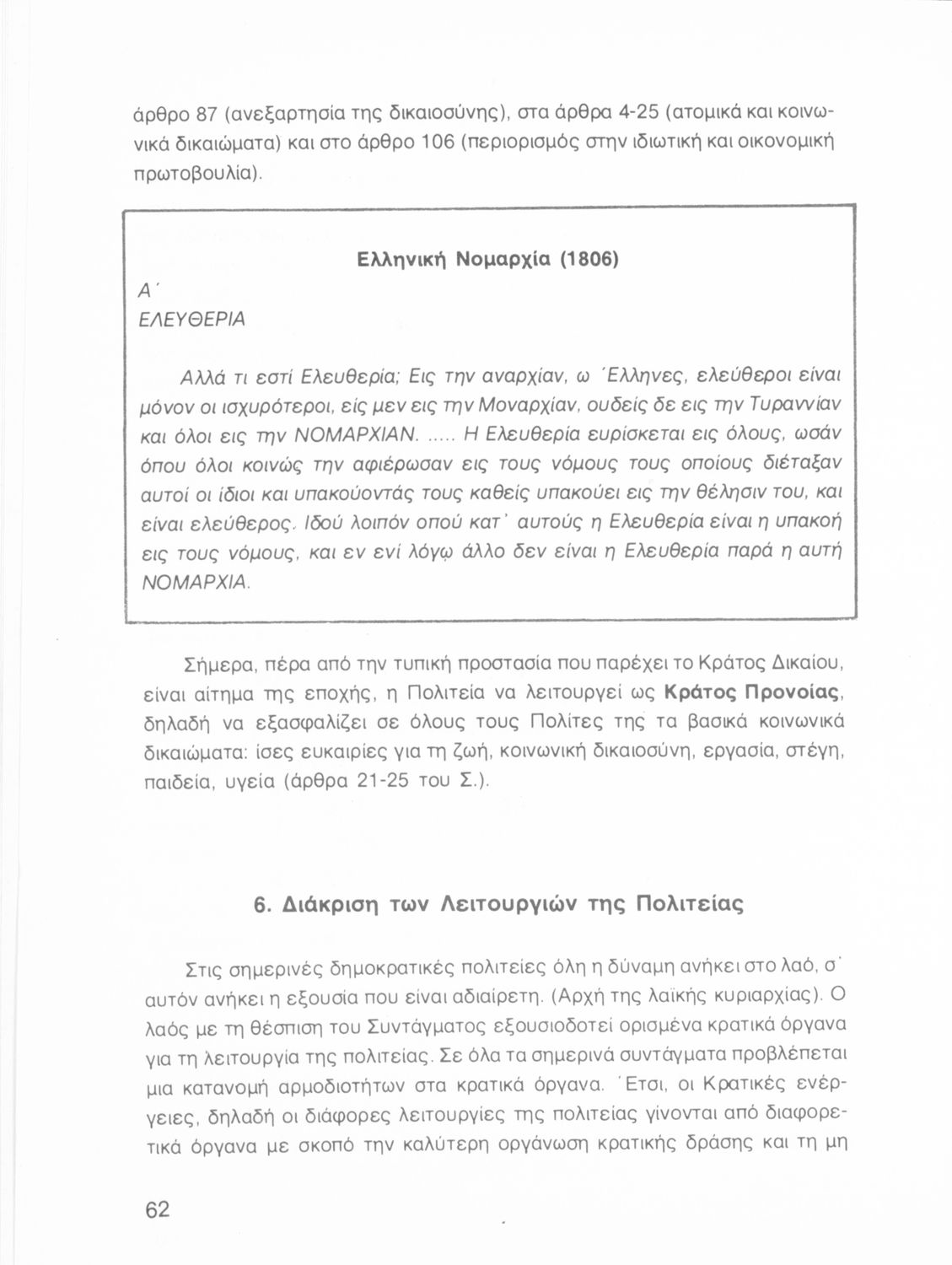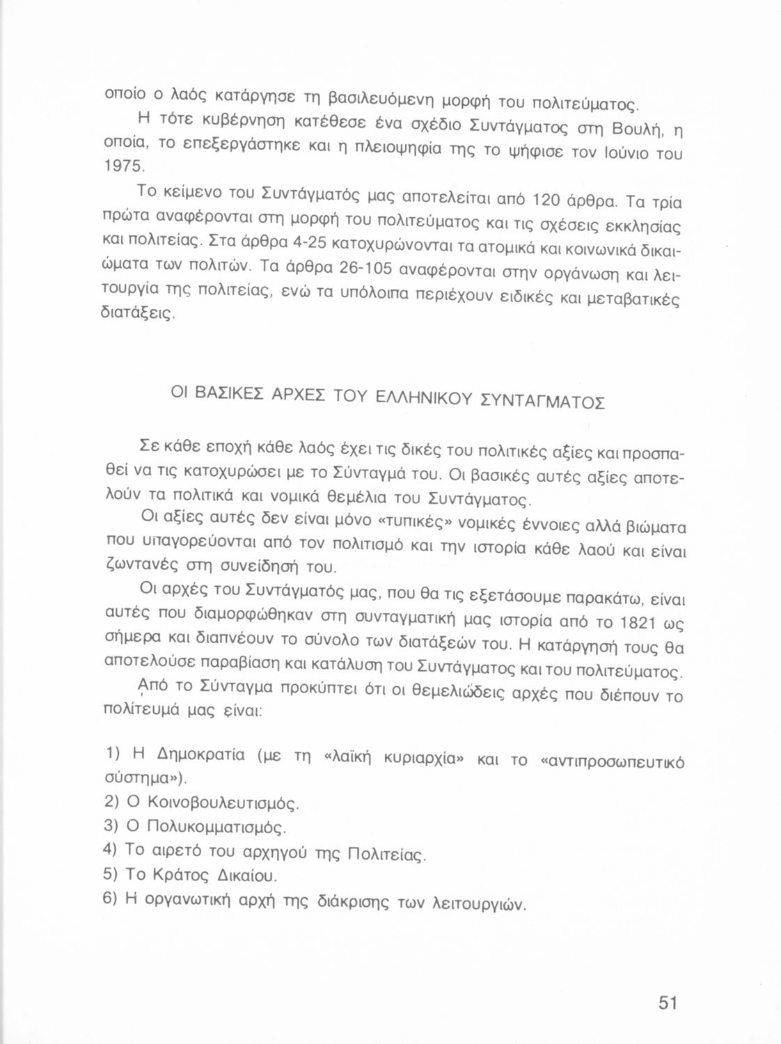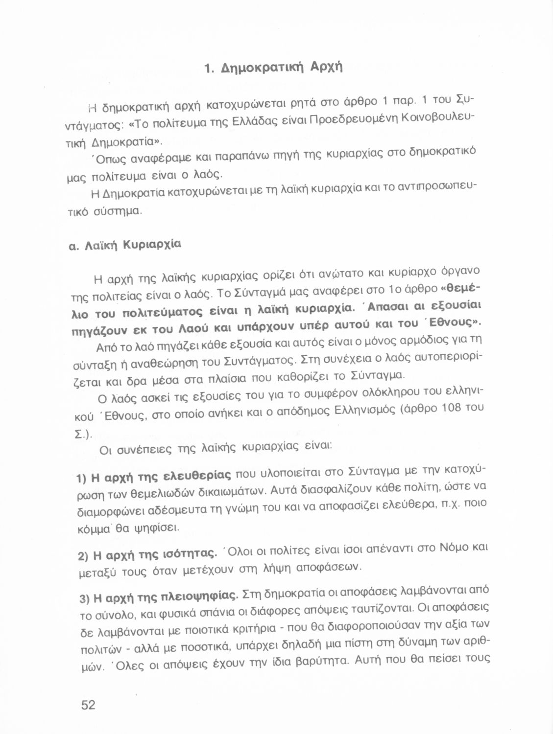 Κωδικός αναγνώρισης: 01-42215 Τίτλος: Στοιχεία Δημοκρατικού Πολιτεύματος. Γ΄ Γυμνασίου Συγγραφέας: Β. Γ. Πετριτσόπουλος, Π. Ι. Γιαννακόπουλος, Α. Γ. Καράλης Μέγεθος και υπόστρωμα: Σχολικό εγχειρίδιο, 213 σελίδες. Εικόνες (έγχρωμες). |