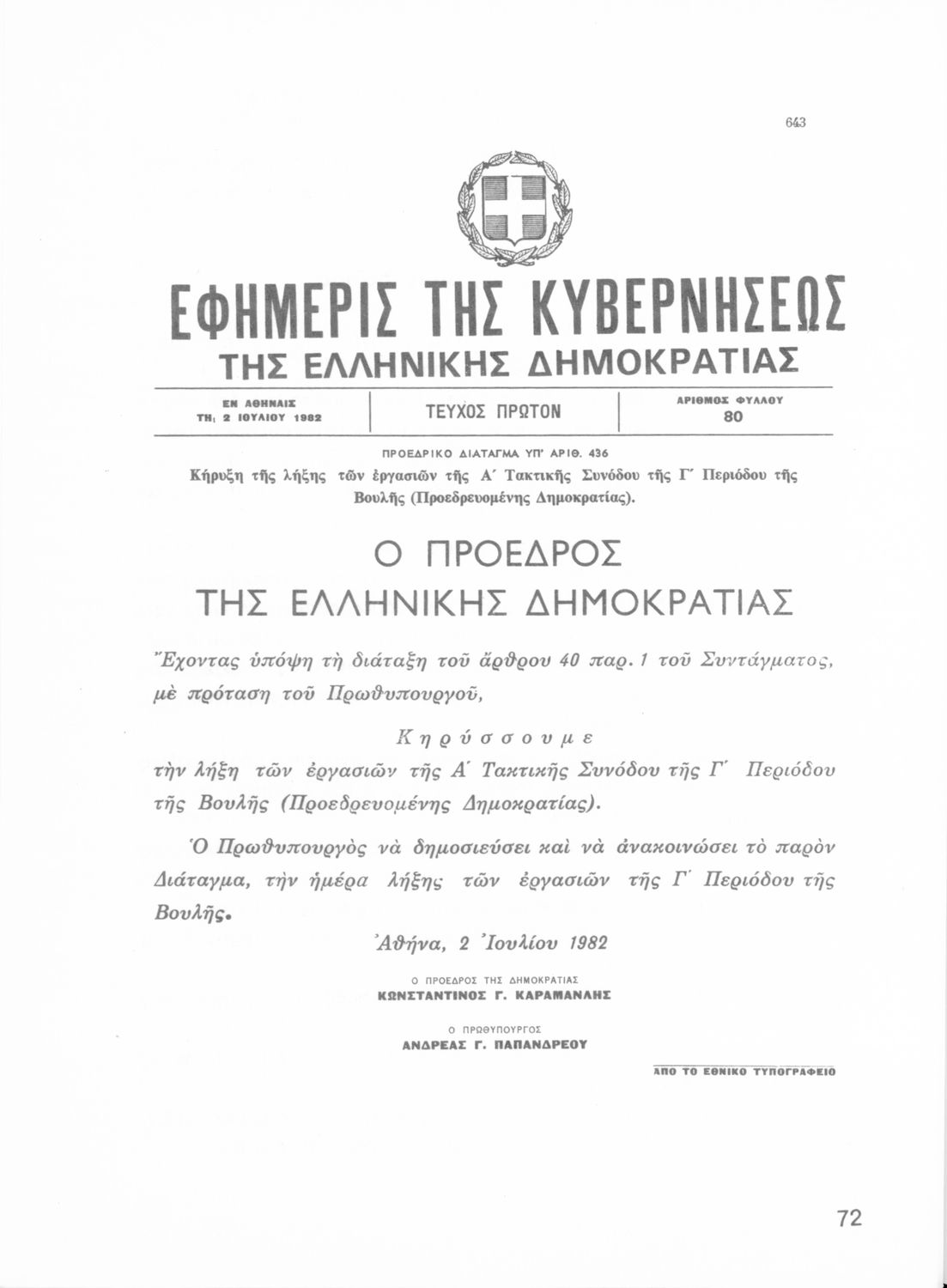 Υπουργική απόφαση / Σύμβαση: 3927/30-12-1982.