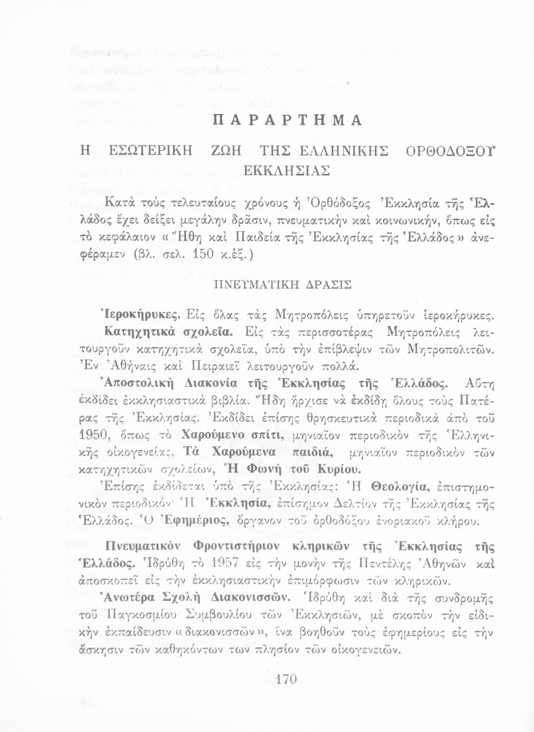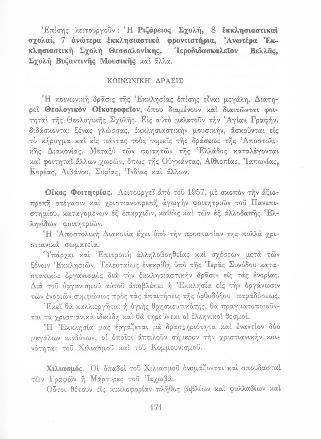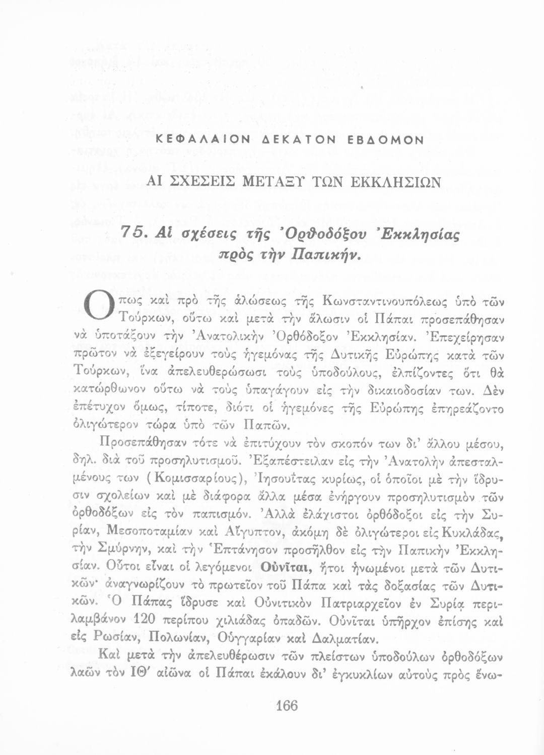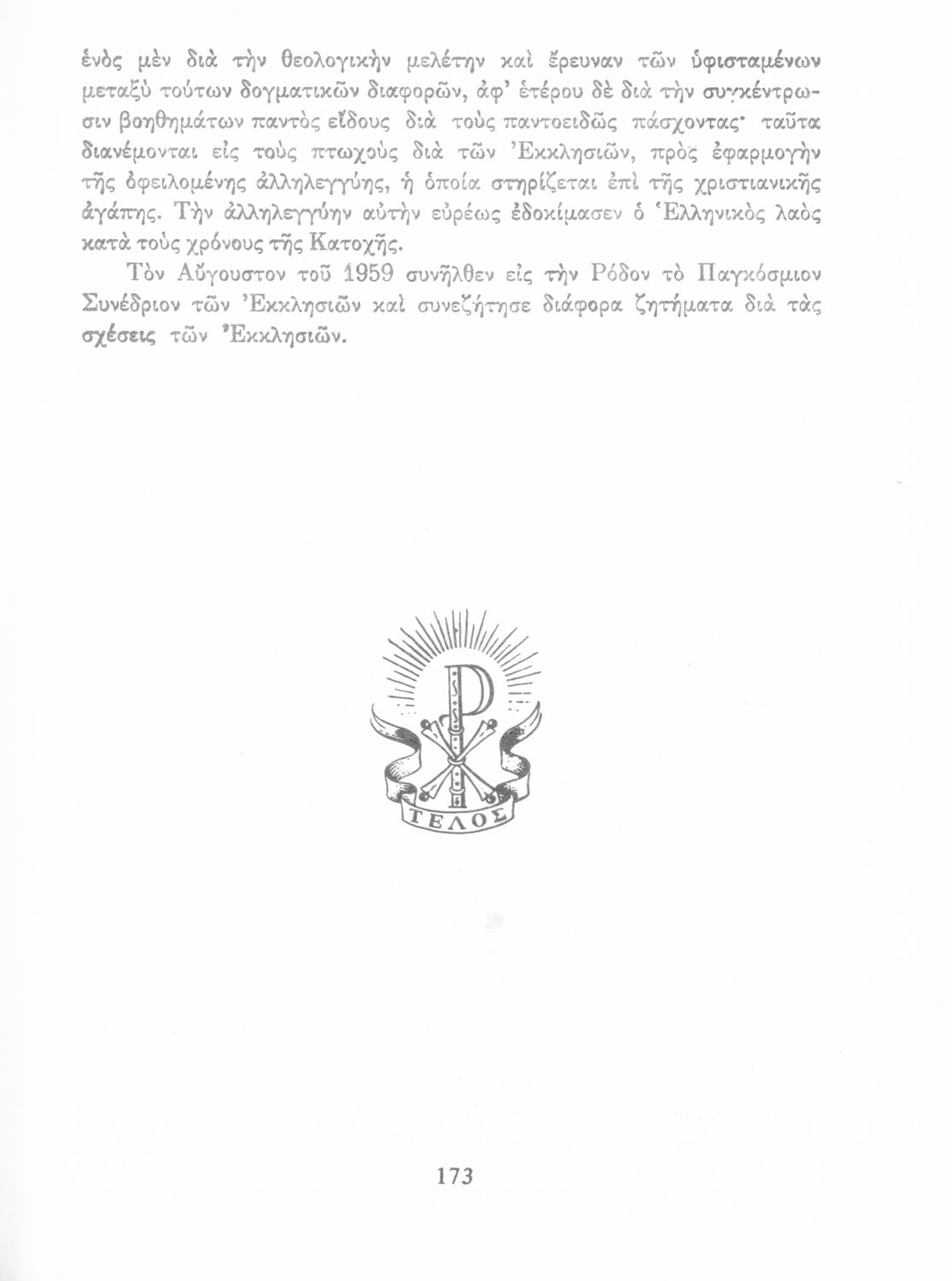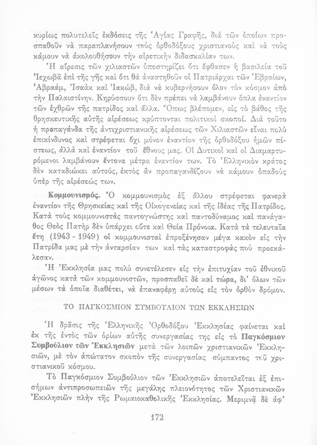 Σχολικό εγχειρίδιο Θρησκευτικών που αποτελεί μια ιστορική επισκόπηση της Ορθόδοξης Εκκλησίας από την ίδρυσή της μέχρι την ίδρυση του Παγκοσμίου Συμβουλίου των Εκκλησιών. Φέρει το σύμβολο της δικτατορίας.