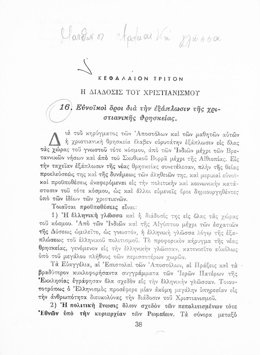Σχολικό εγχειρίδιο Θρησκευτικών που αποτελεί μια ιστορική επισκόπηση της Ορθόδοξης Εκκλησίας από την ίδρυσή της μέχρι την ίδρυση του Παγκοσμίου Συμβουλίου των Εκκλησιών. Φέρει το σύμβολο της δικτατορίας.