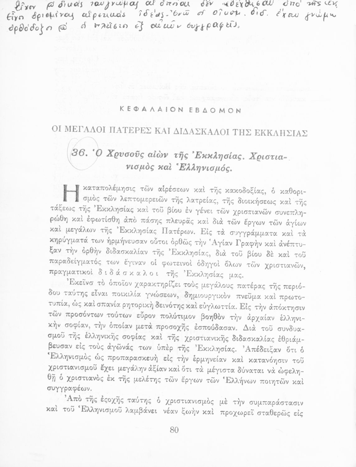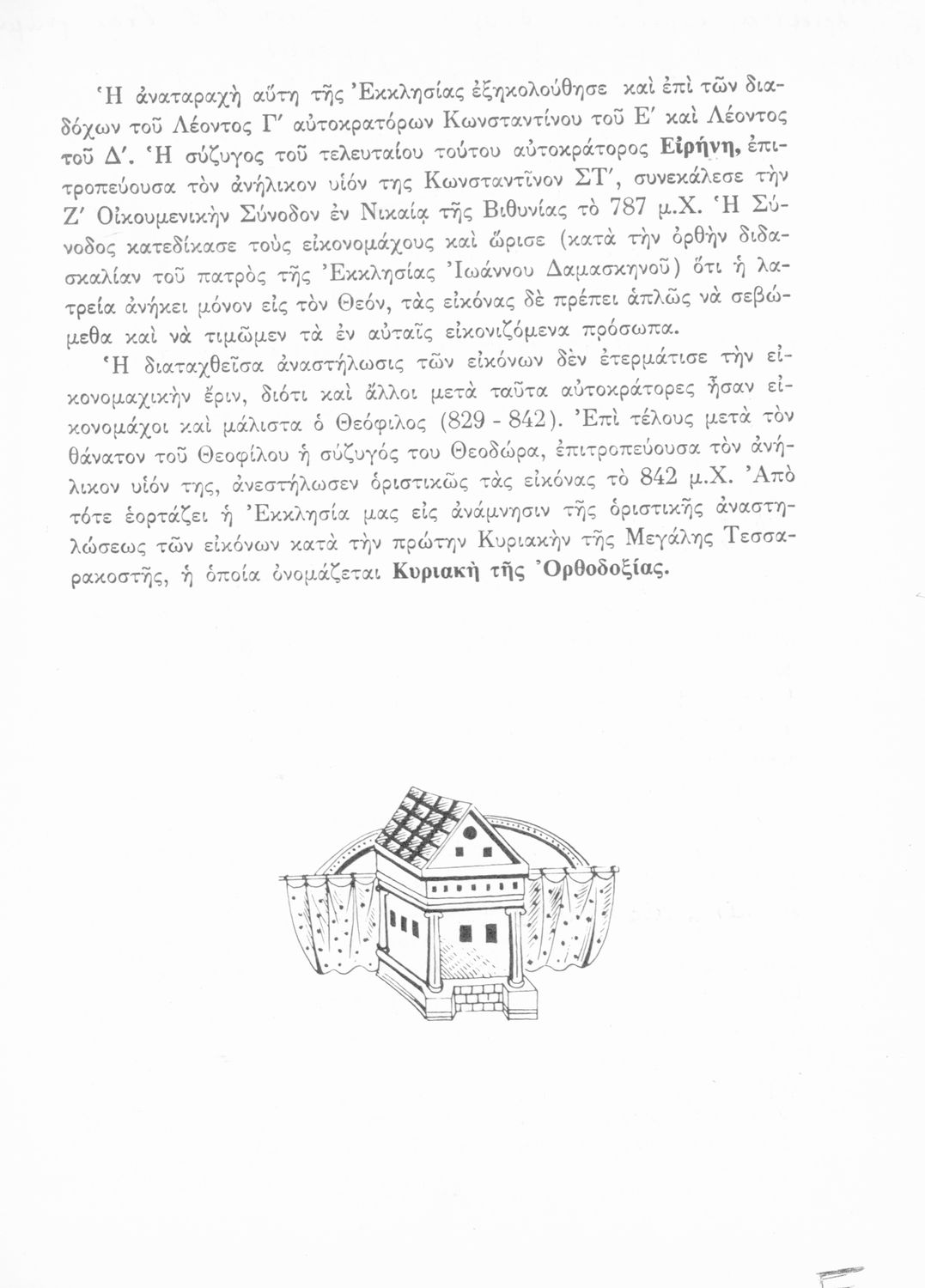Σχολικό εγχειρίδιο Θρησκευτικών που αποτελεί μια ιστορική επισκόπηση της Ορθόδοξης Εκκλησίας από την ίδρυσή της μέχρι την ίδρυση του Παγκοσμίου Συμβουλίου των Εκκλησιών. Φέρει το σύμβολο της δικτατορίας.