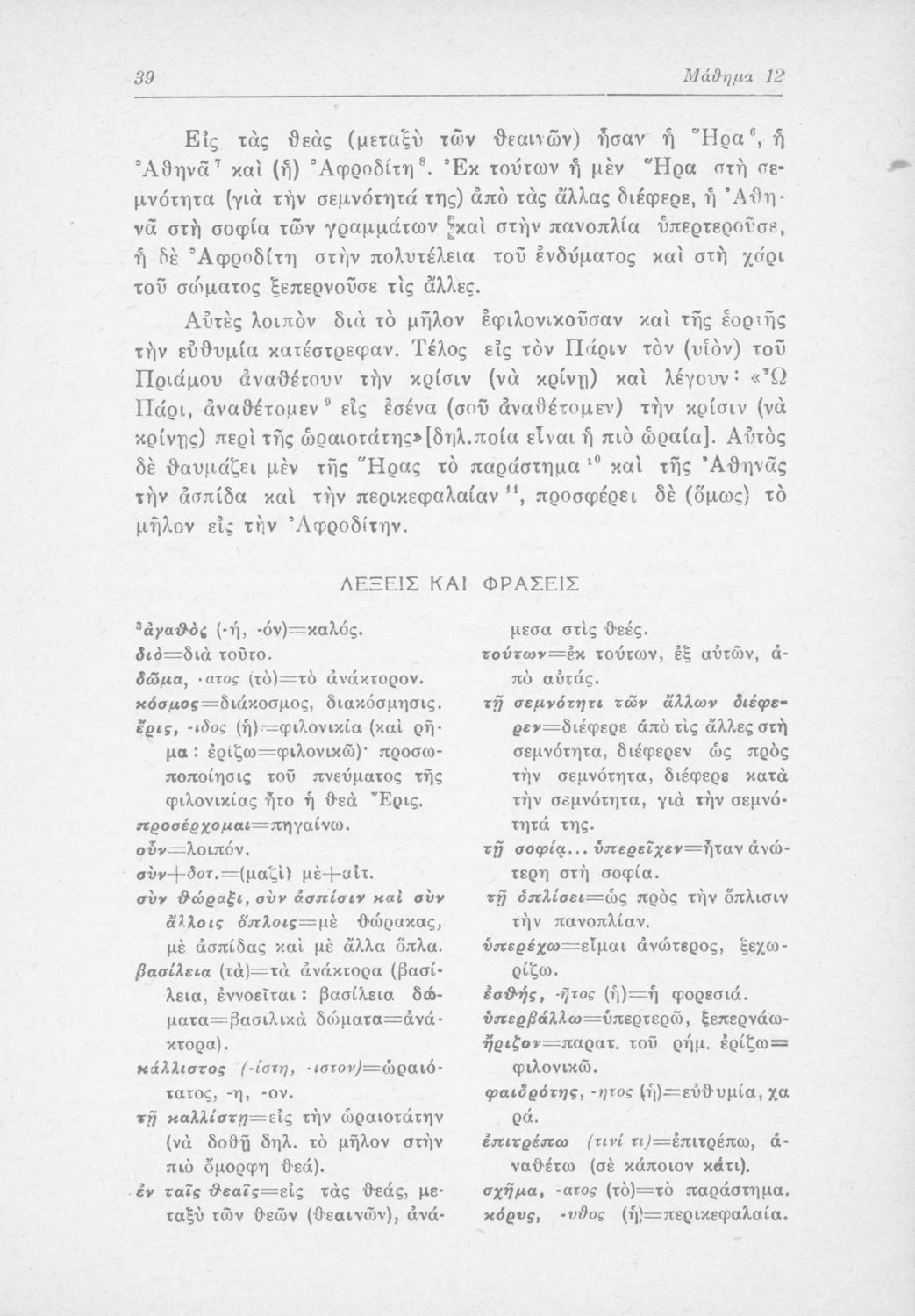 Μαθητικό βοήθημα/λεξιλόγιο που περιλαμβάνει τις λέξεις που υπάρχουν στα σχολικά βιβλία των Αρχαίων Ελληνικών των τριών πρώτων τάξεων του Γυμνασίου και παρέχει τη σημασιολογία και την ετυμολογία τους. Περιέχει ...
