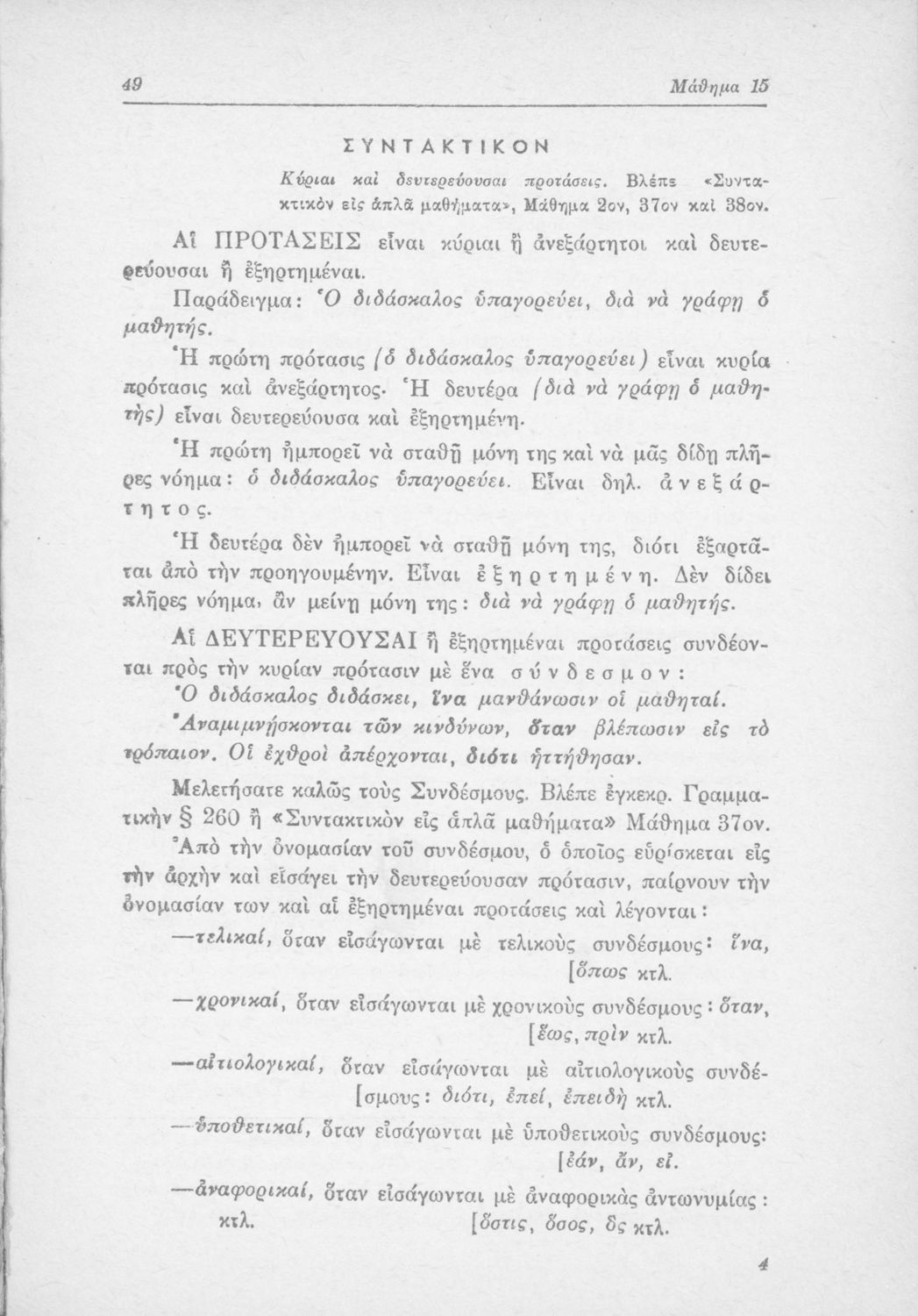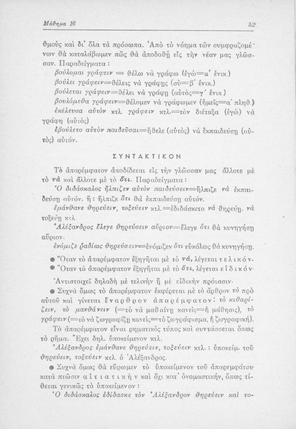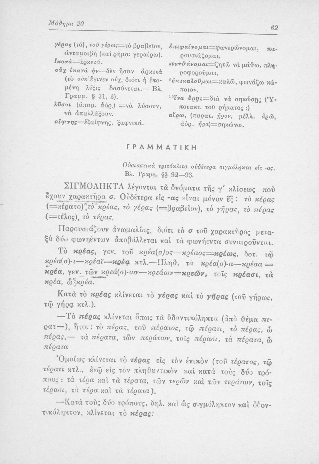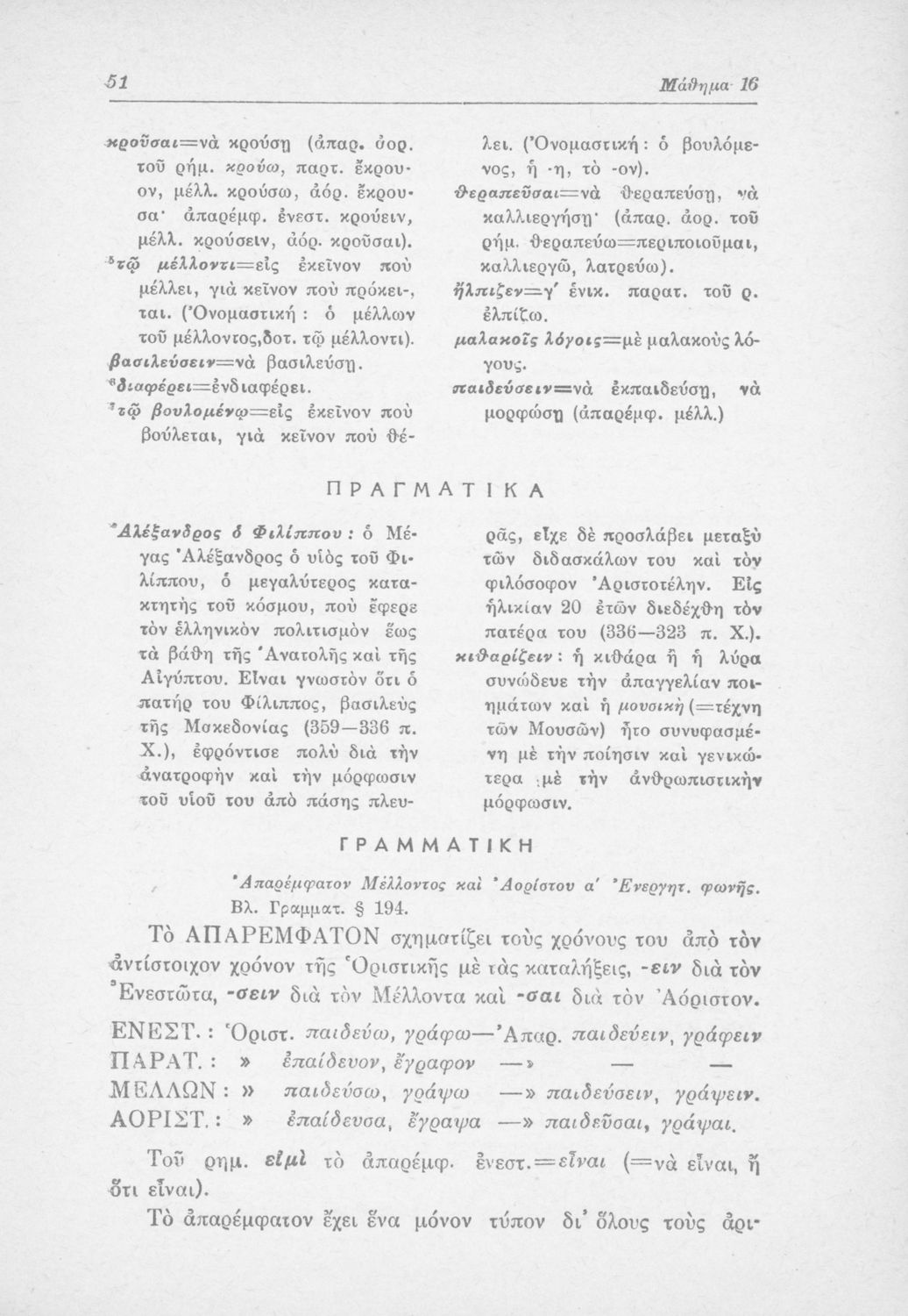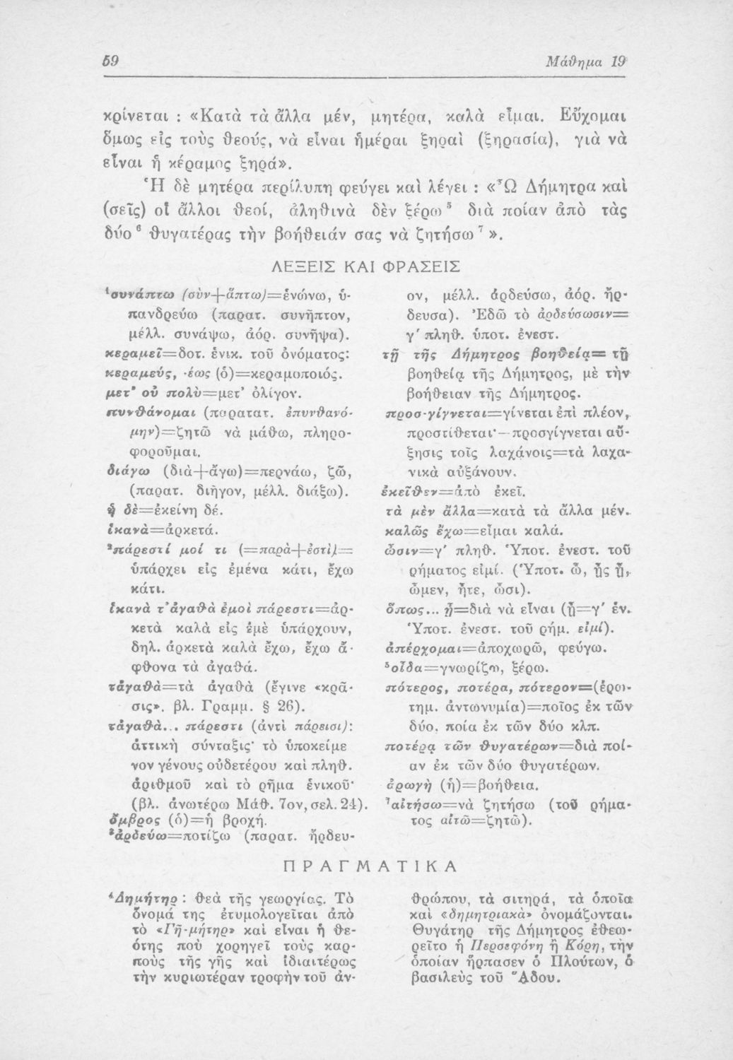 Σχολικό εγχειρίδιο Αρχαίων Ελληνικών Γυμνασίου που εξετάζει τα μέρη του λόγου και την σύνταξή τους.