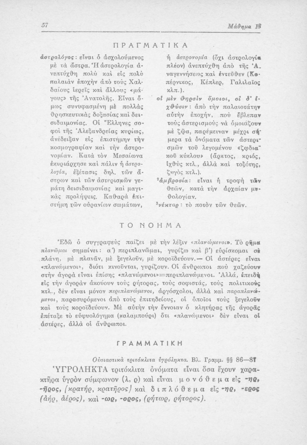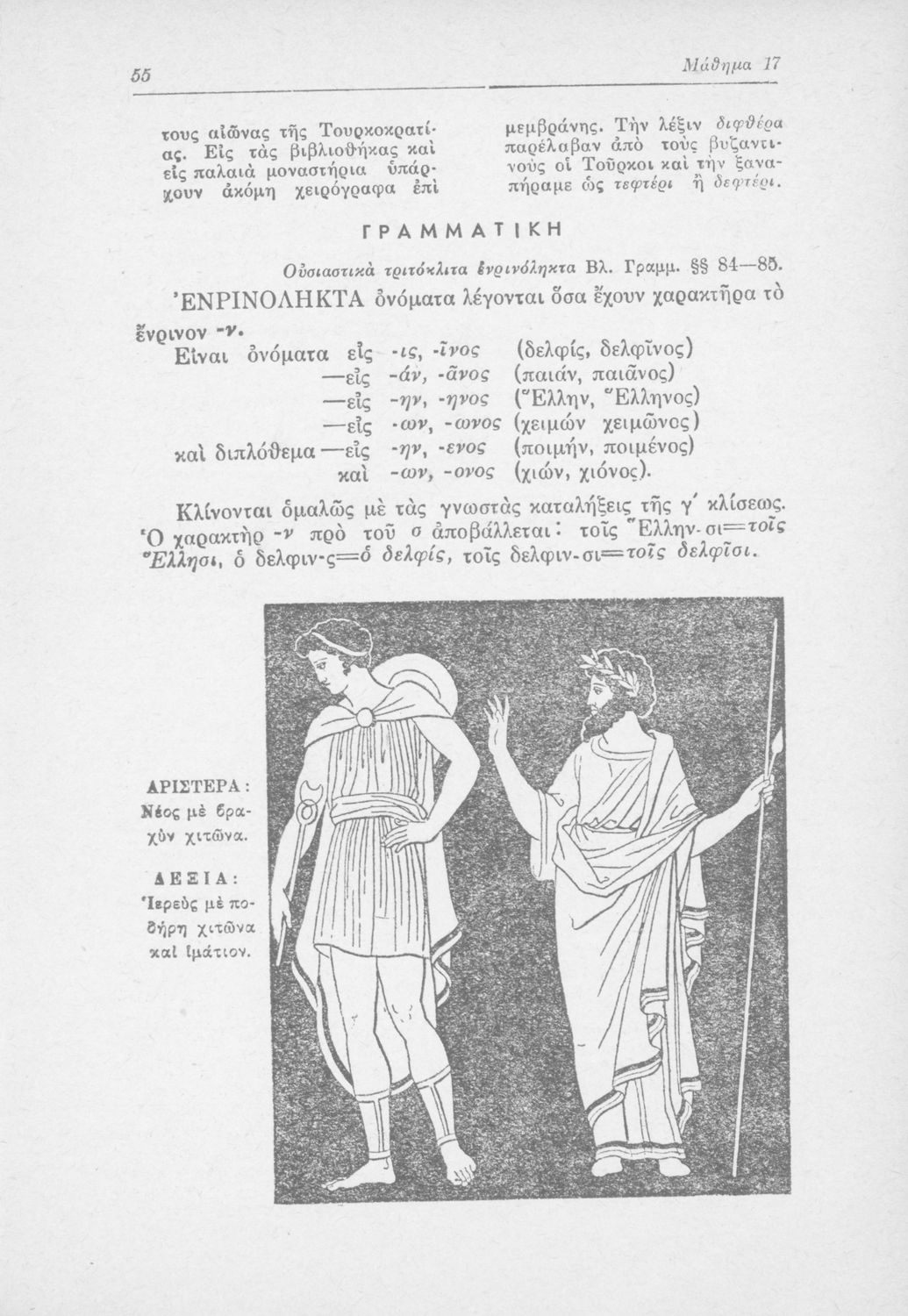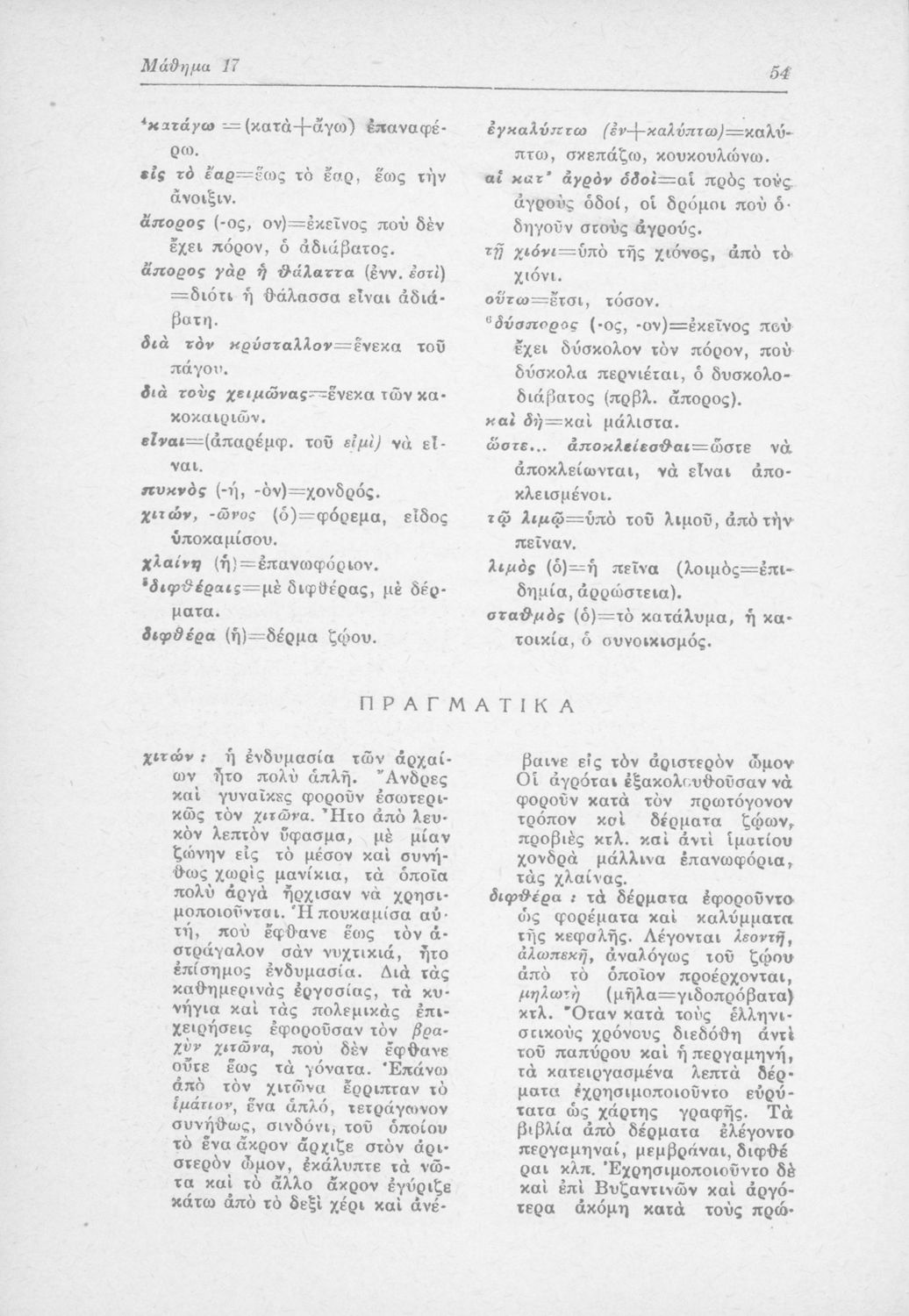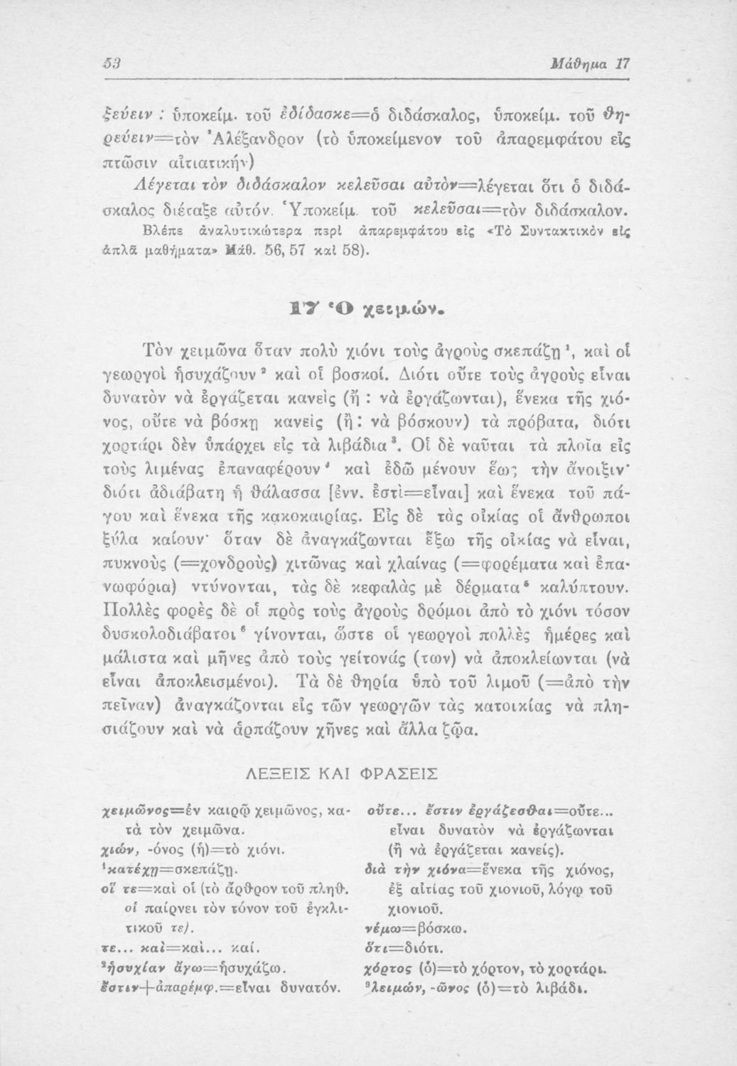 Σχολικό εγχειρίδιο Αρχαίων Ελληνικών Γυμνασίου που εξετάζει τα μέρη του λόγου και την σύνταξή τους.
