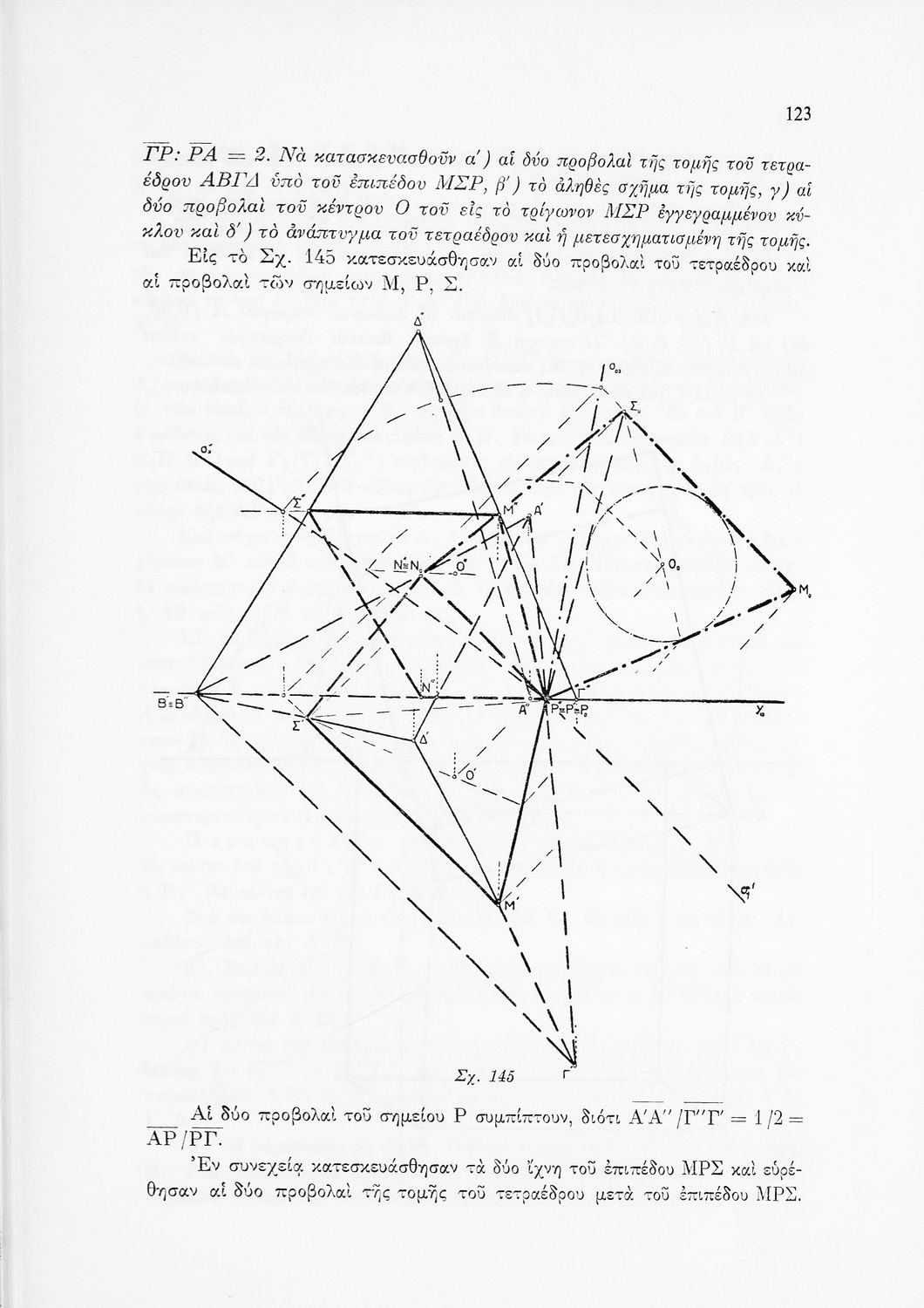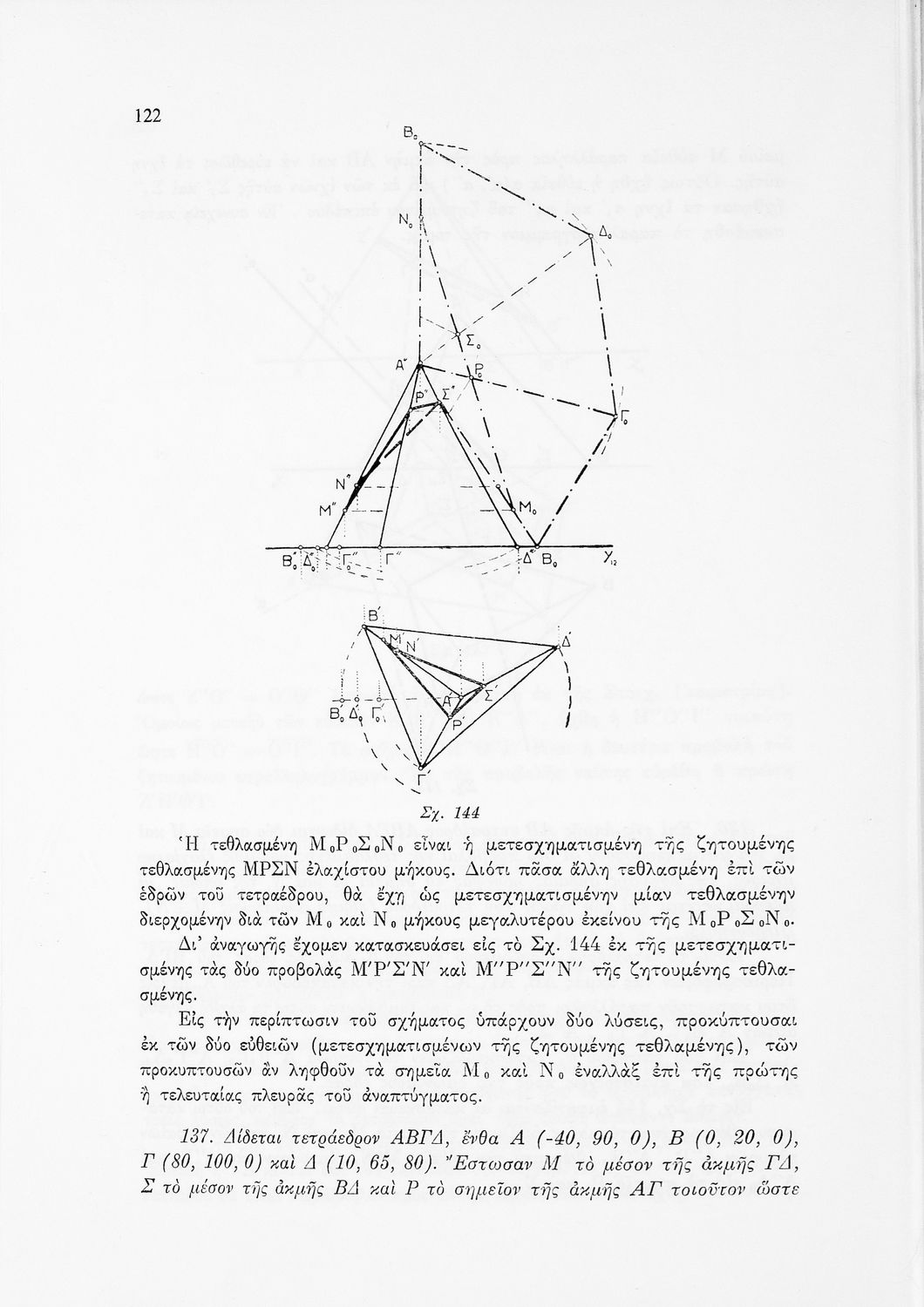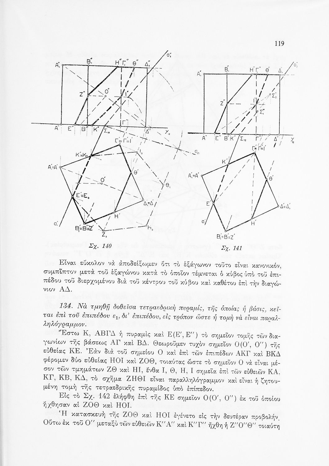 Σχολικό εγχειρίδιο Παραστατικής Γεωμετρίας για τις Ε΄ και ΣΤ΄ Γυμνασίου χωρισμένο σε θεωρία και ασκήσεις που περιλαμβάνει παράρτημα με έγχρωμα διαγράμματα σε Χ, Ψ, Ζ άξονα. Ο συγγραφέας ήταν καθηγητής στο ΕΜΠ.