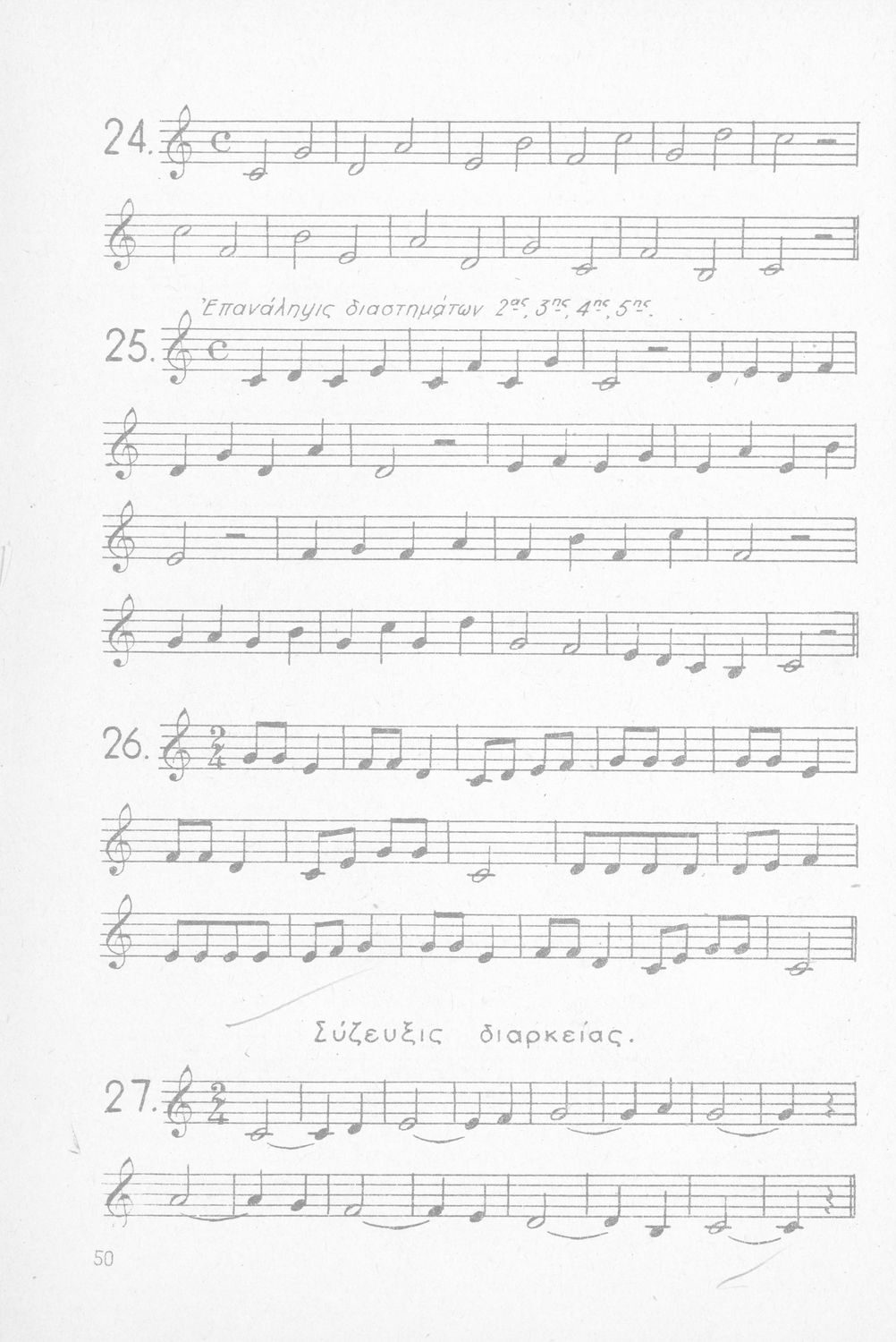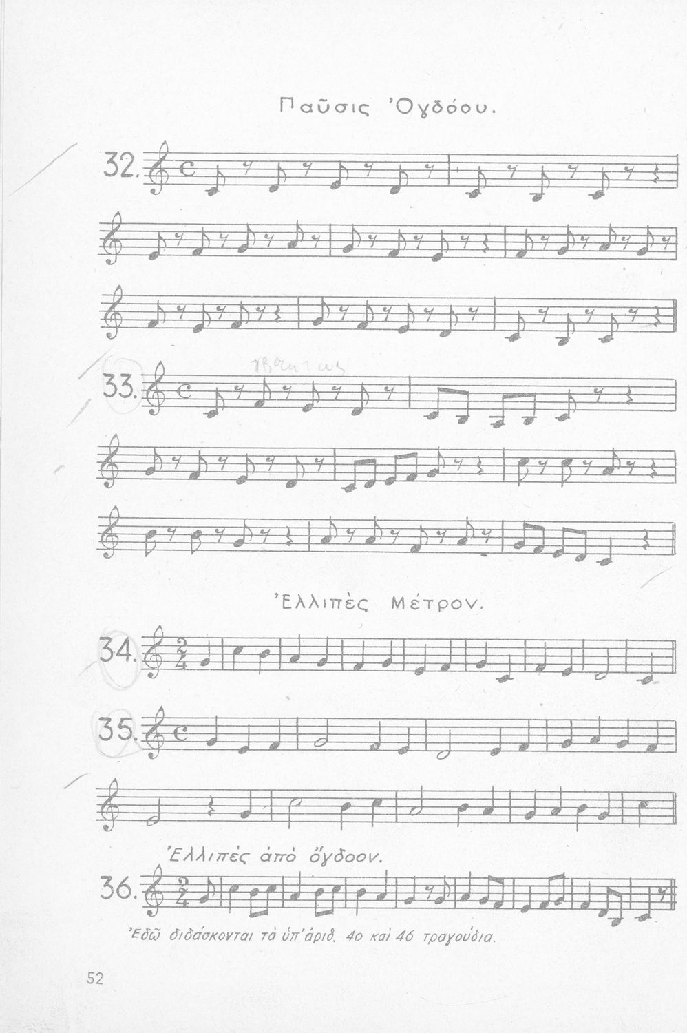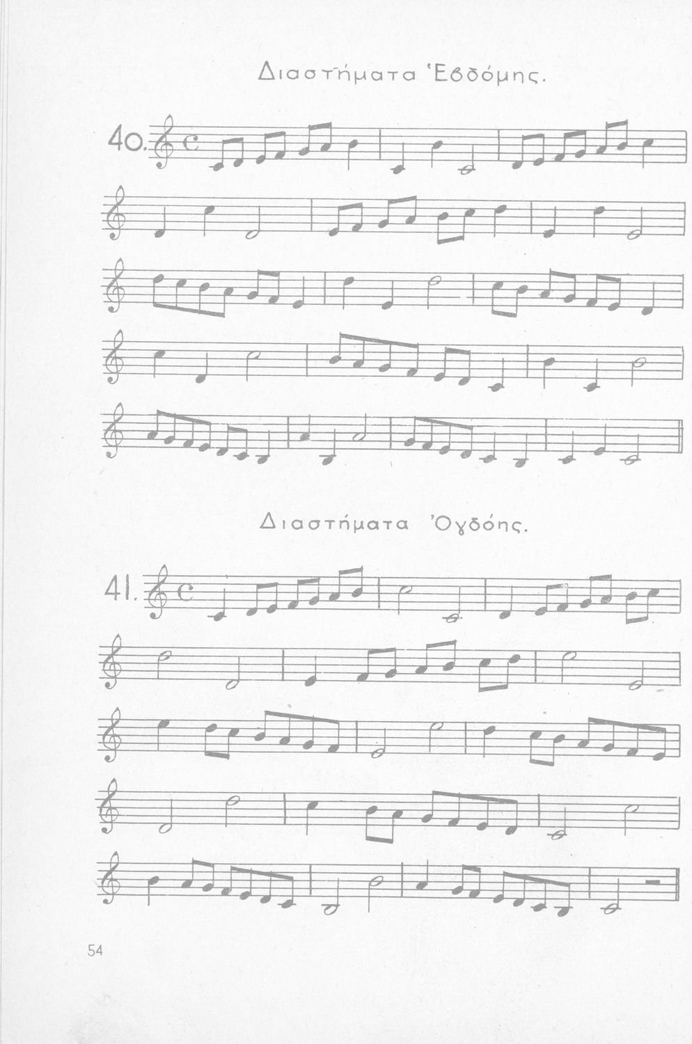 Σχολικό εγχειρίδιο Μουσικής για Γυμνάσια, Παρθεναγωγεία και Διδασκαλεία. Περιέχει ασκήσεις μελωδικές, χωρίς θεωρία.