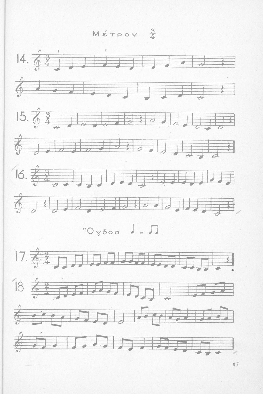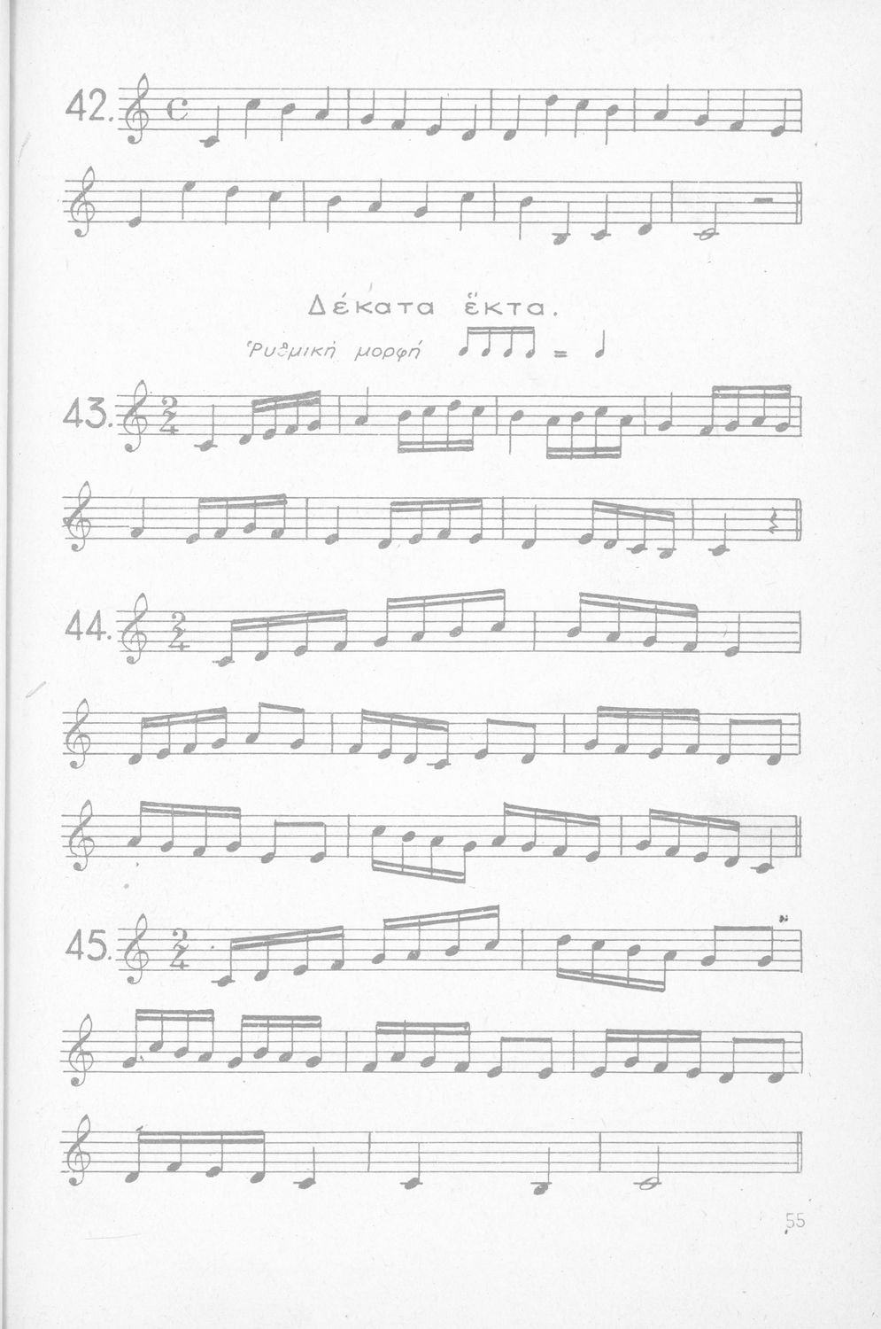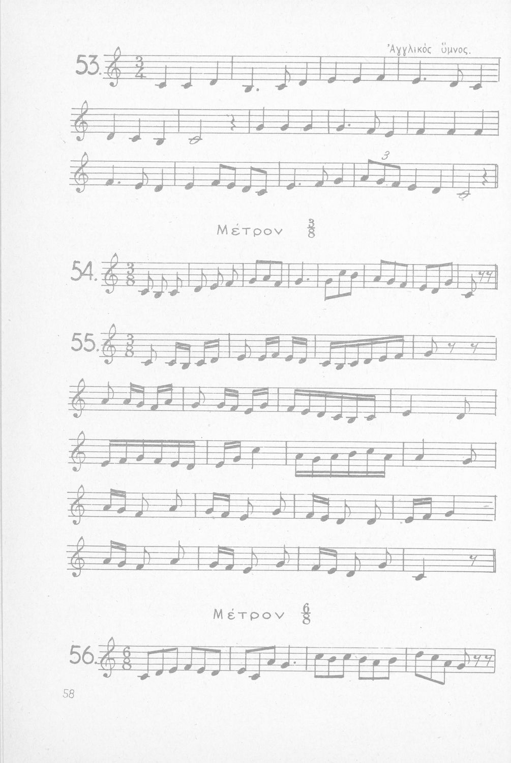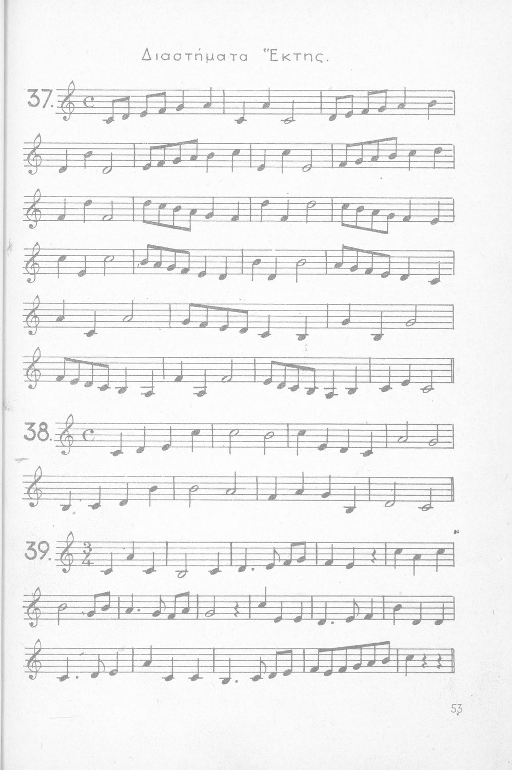 Σχολικό εγχειρίδιο Μουσικής για Γυμνάσια, Παρθεναγωγεία και Διδασκαλεία. Περιέχει ασκήσεις μελωδικές, χωρίς θεωρία.