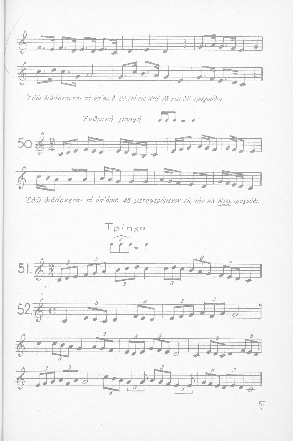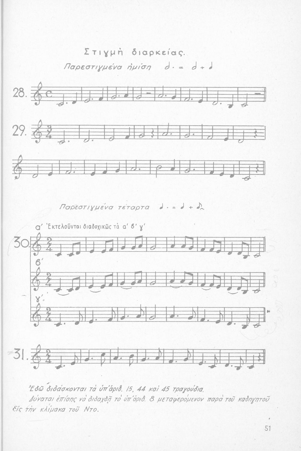 Σχολικό εγχειρίδιο Μουσικής για Γυμνάσια και Διδασκαλεία που περιέχει στοιχεία θεωρίας της μουσικής, μελωδικές ασκήσεις καθώς και σχολικά τραγούδια