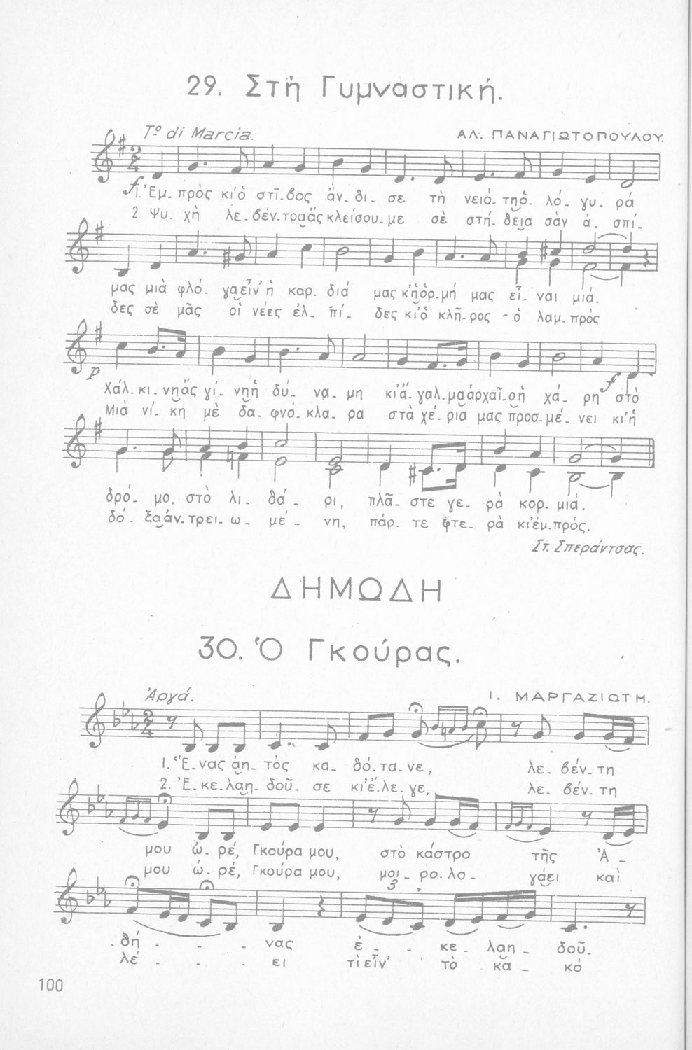 Σχολικό εγχειρίδιο Μουσικής για Γυμνάσια και Διδασκαλεία που περιέχει στοιχεία θεωρίας της μουσικής, μελωδικές ασκήσεις καθώς και σχολικά τραγούδια