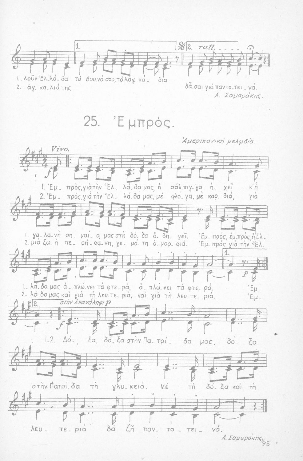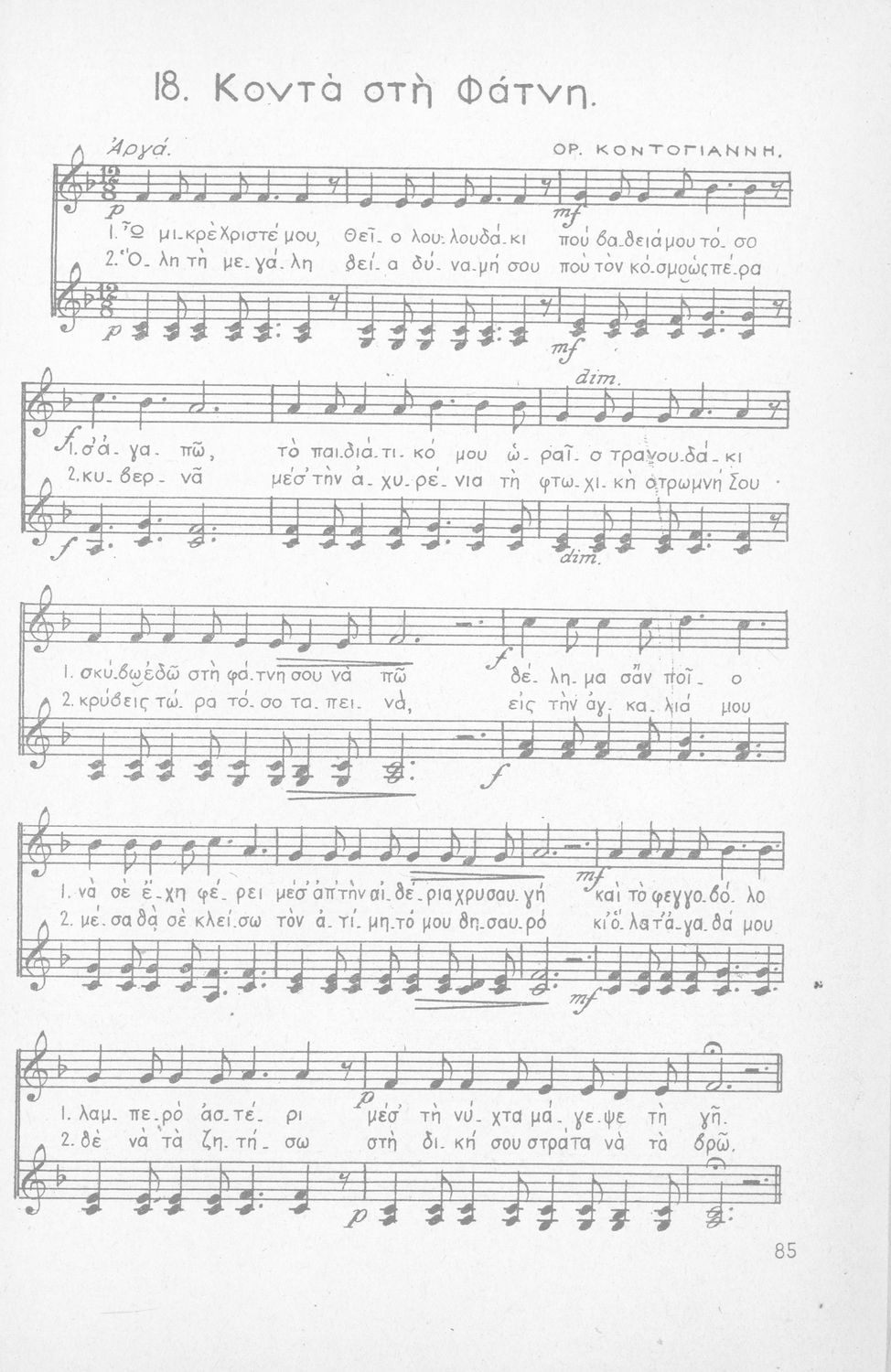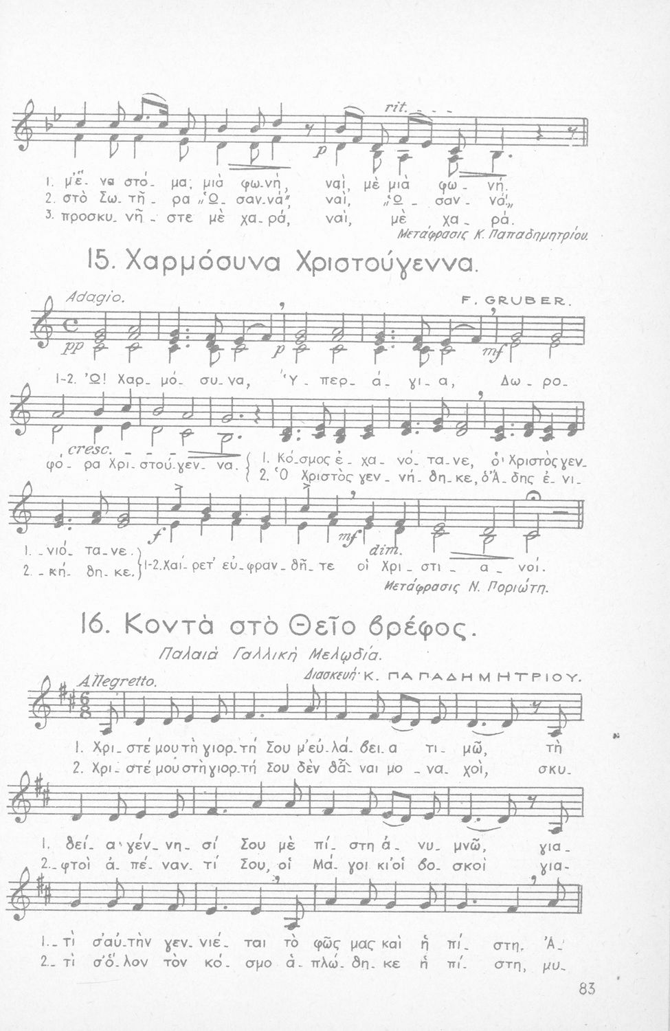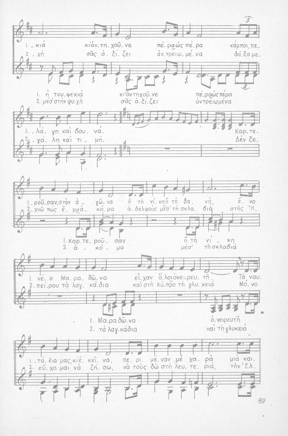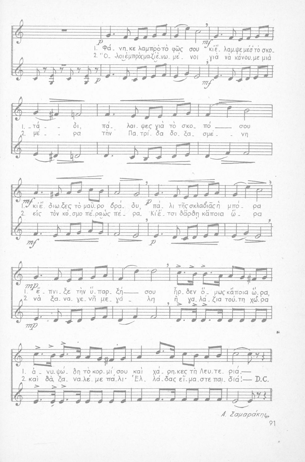 Σχολικό εγχειρίδιο Μουσικής για Γυμνάσια, Παρθεναγωγεία και Διδασκαλεία. Περιέχει ασκήσεις μελωδικές, χωρίς θεωρία.