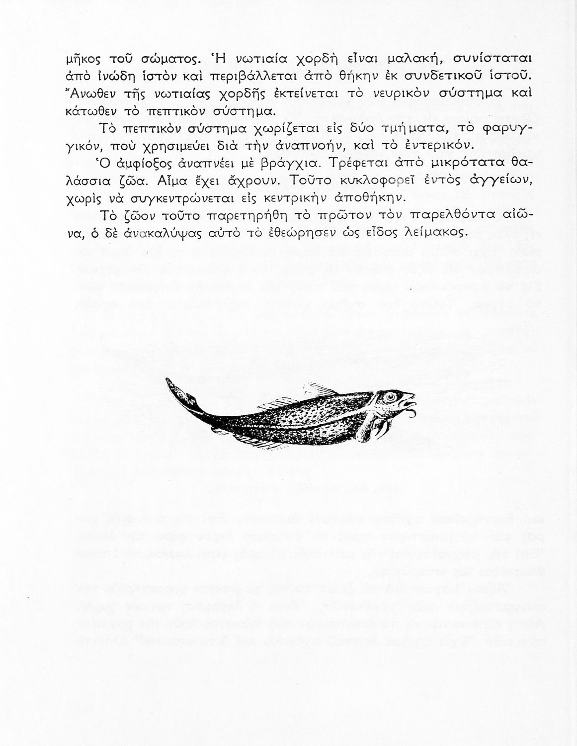 Σχολικό εγχειρίδιο Ζωολογίας Α΄ Γυμνασίου που εστιάζει στη φυσιολογία και ανατομία και παρουσιάζει τα διάφορα ζώα ανάλογα με την συνομοταξία στην οποία ανήκουν. Φέρει το σύμβολο της δικτατορίας.