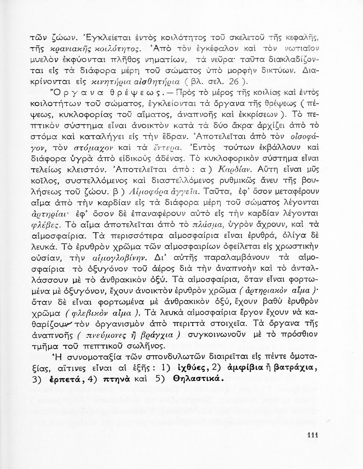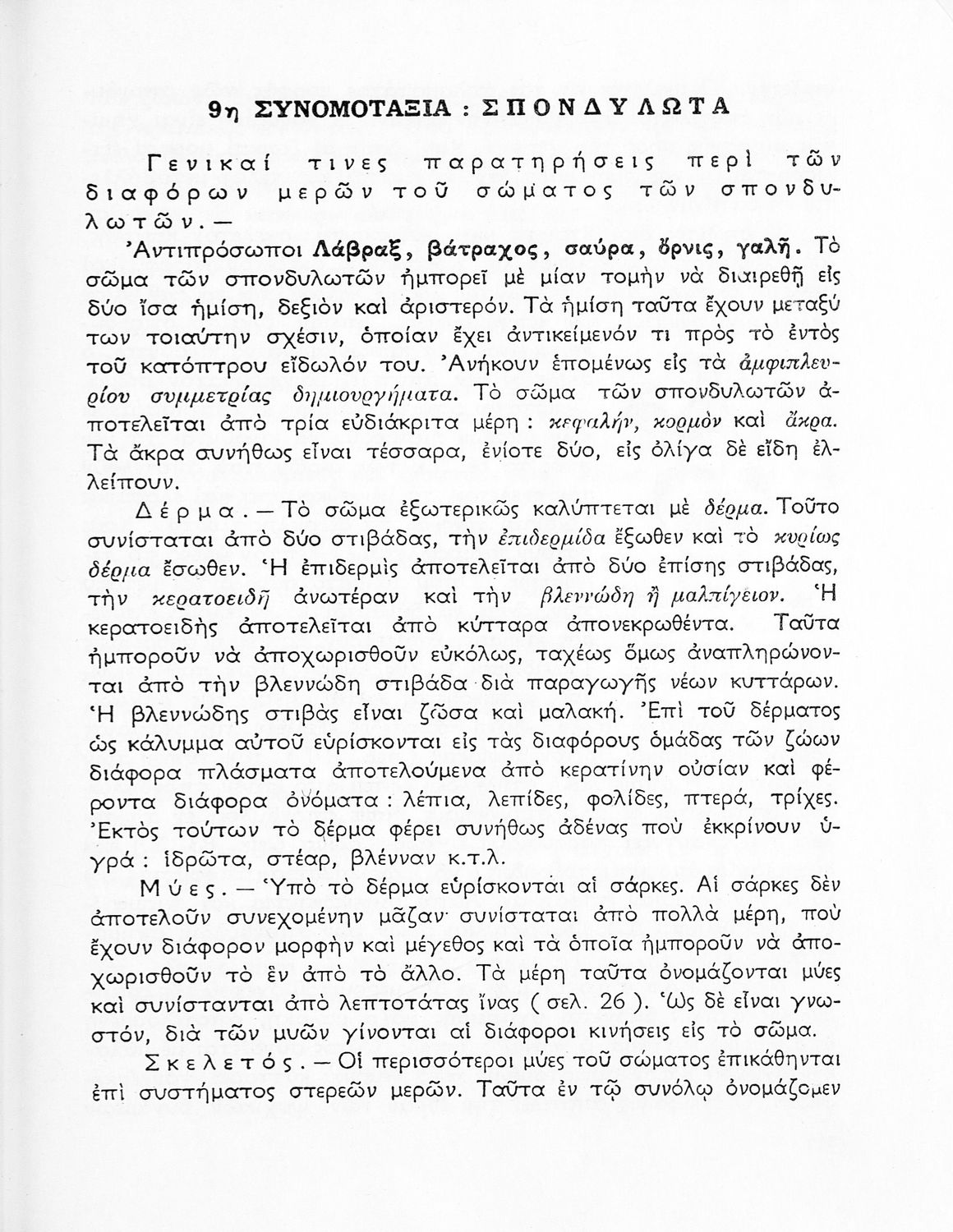 Σχολικό εγχειρίδιο Ζωολογίας για την Γ΄ τάξη των Εξαταξίων Γυμνασίων που παρουσιάζει τα διάφορα ζώα ανάλογα με την συνομοταξία στην οποία ανήκουν.