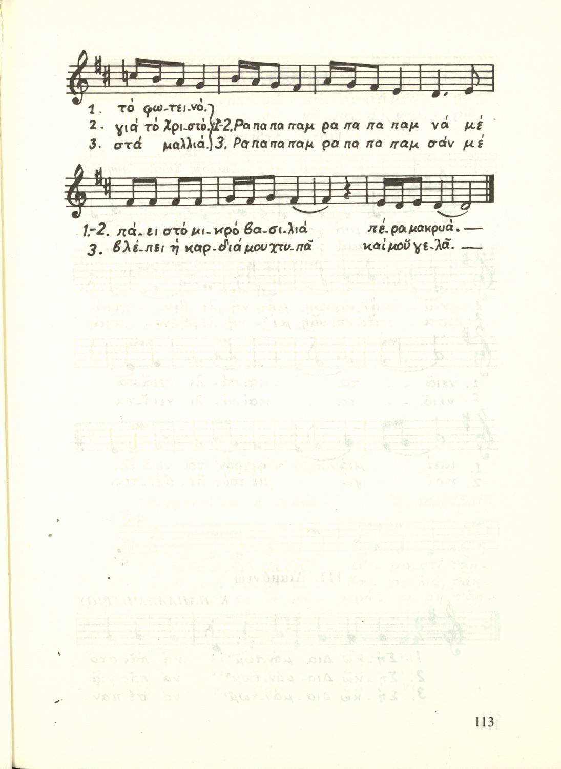 Βαθμίδα εκπαίδευσης: Δευτεροβάθμια Τάξη: Β' Γυμνασίου Μάθημα: Μουσική Γλώσσα: Δημοτική Παρουσίαση περιεχομένου: Σχολικό εγχειρίδιο Μουσικής για τους μαθητές της Β' Γυμνασίου. Περιέχει την ιστορία της Μουσικής στην Ελλάδα, επαναληπτικές ερωτήσεις και παραδοσιακά τραγούδια |