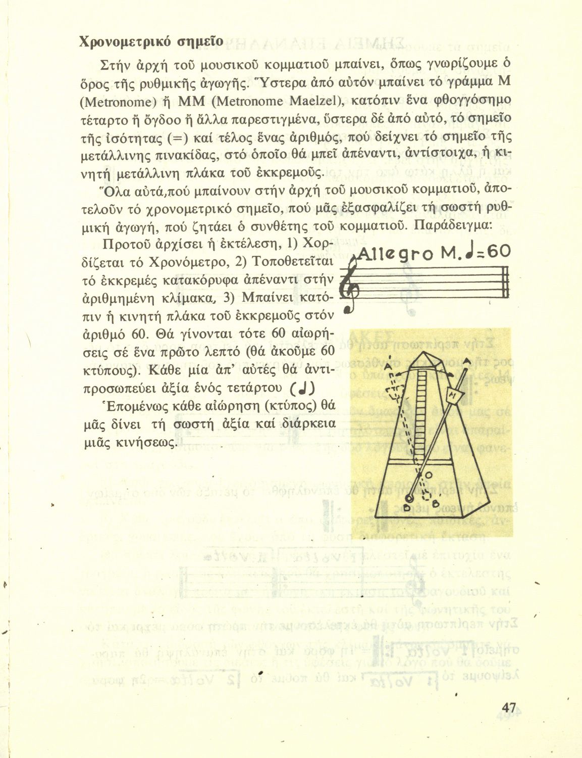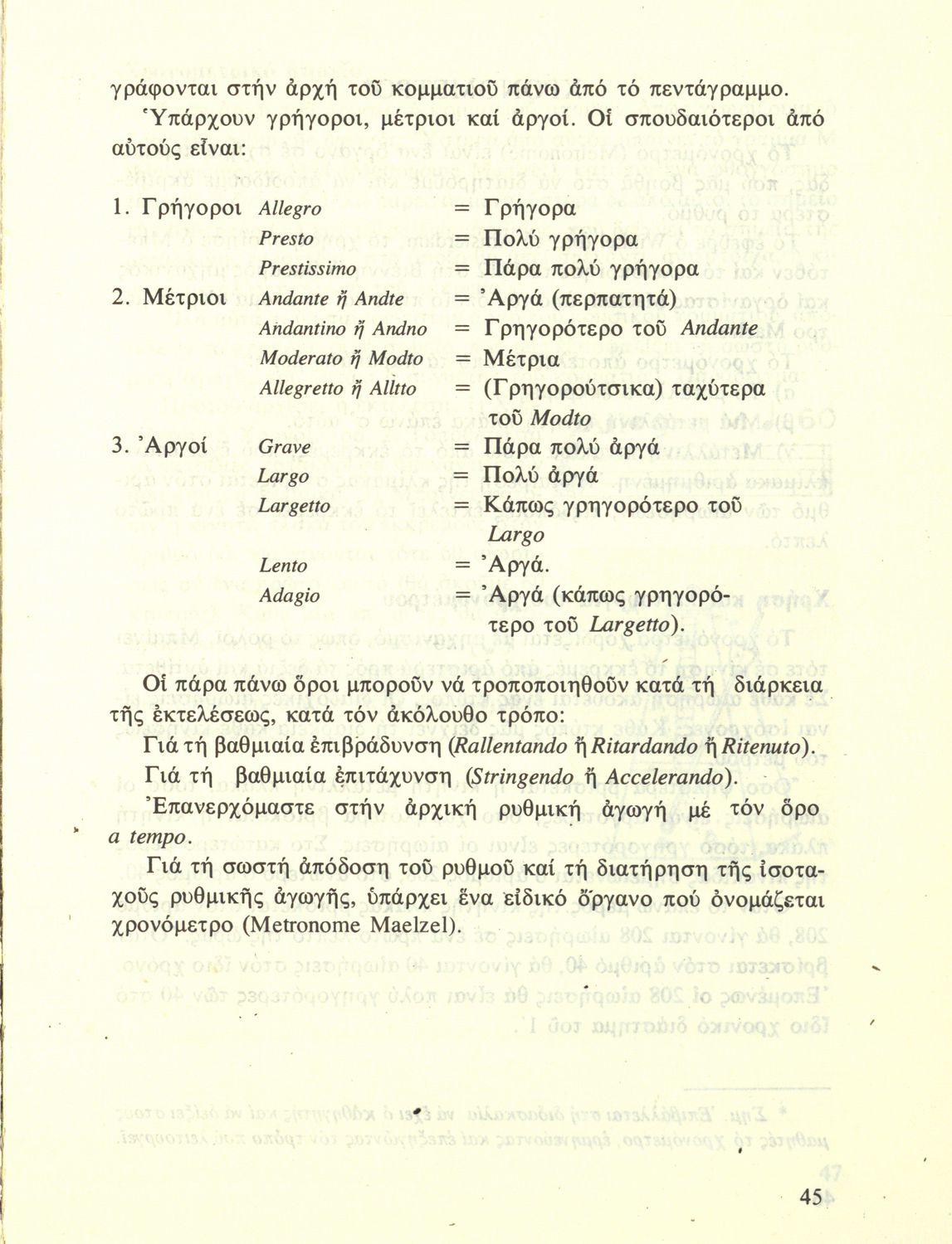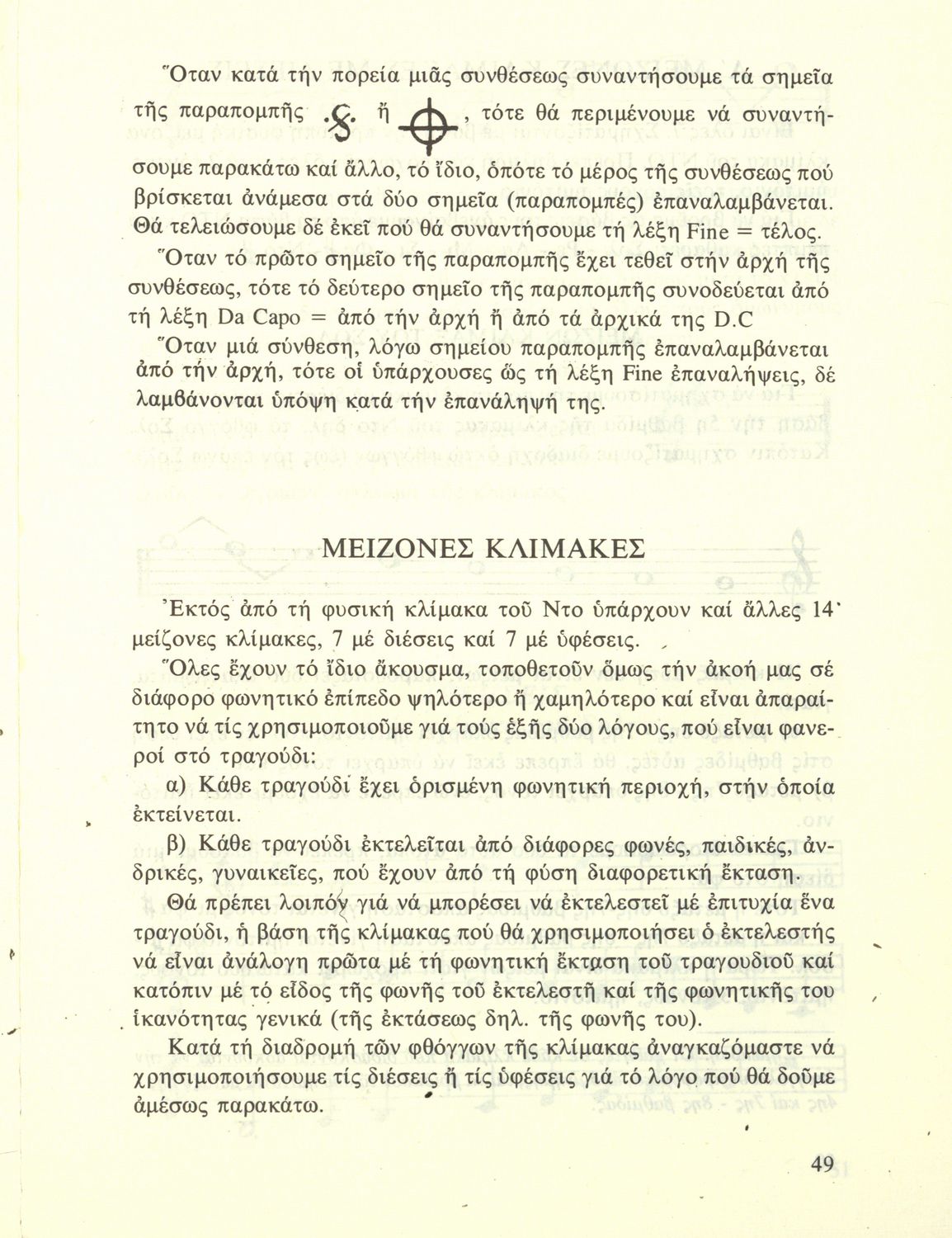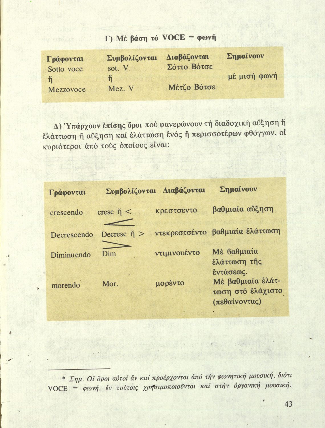 Σχολικό εγχειρίδιο Μουσικής για την Β' τάξη Εξαταξίων και Γ', Δ' τάξη Οκταταξίων σχολείων Μέσης Εκπαιδεύσεως. Περιέχει μείζονες κλίμακες και αλλοιωμένους φθόγγους, μελωδικές ασκήσεις και δίφωνες μελωδικές ...