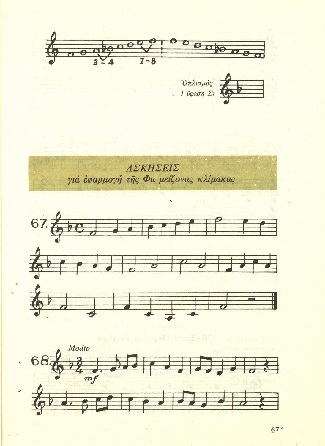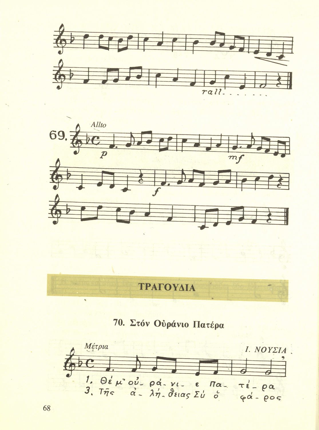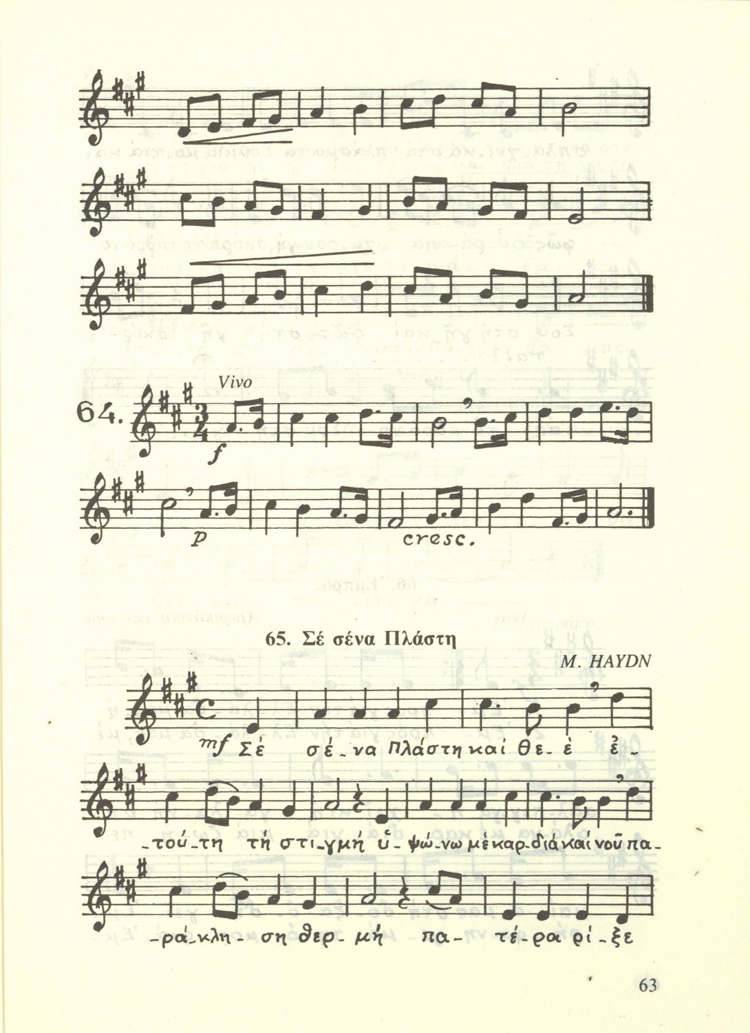 Σχολικό εγχειρίδιο Μουσικής για την Α', Β', Γ΄, Δ' τάξη Γυμνασίου, Πρακτικών Λυκείων και Διδασκαλείων. Περιέχει ασκήσεις μελωδικές, χωρίς θεωρία.