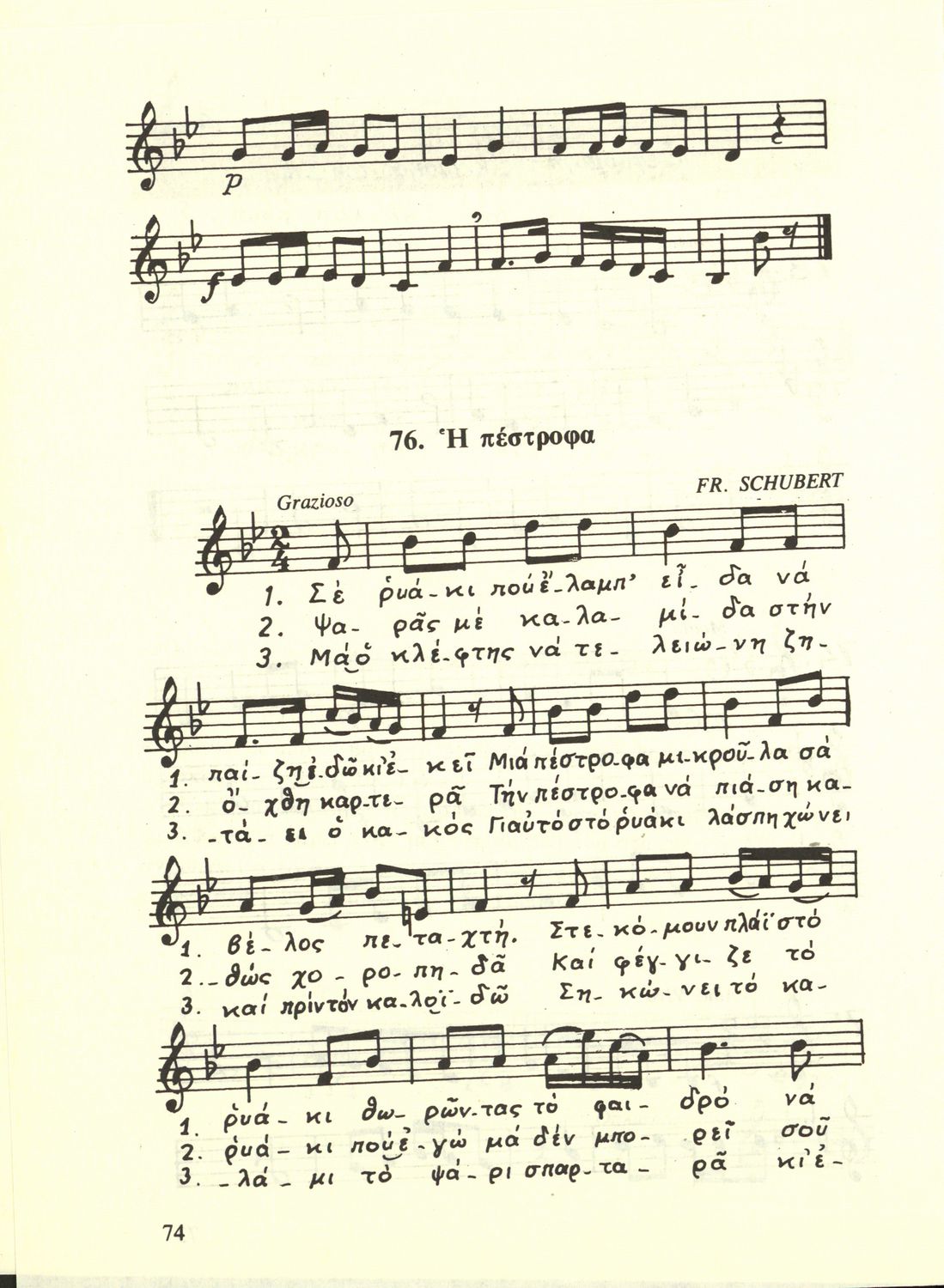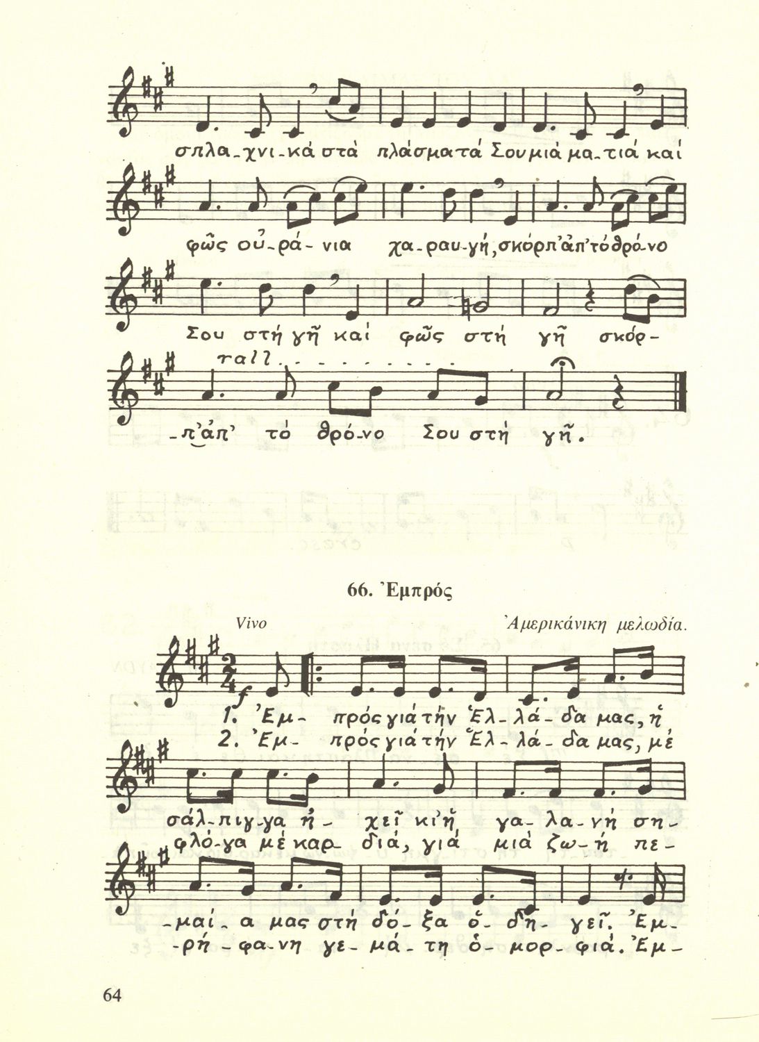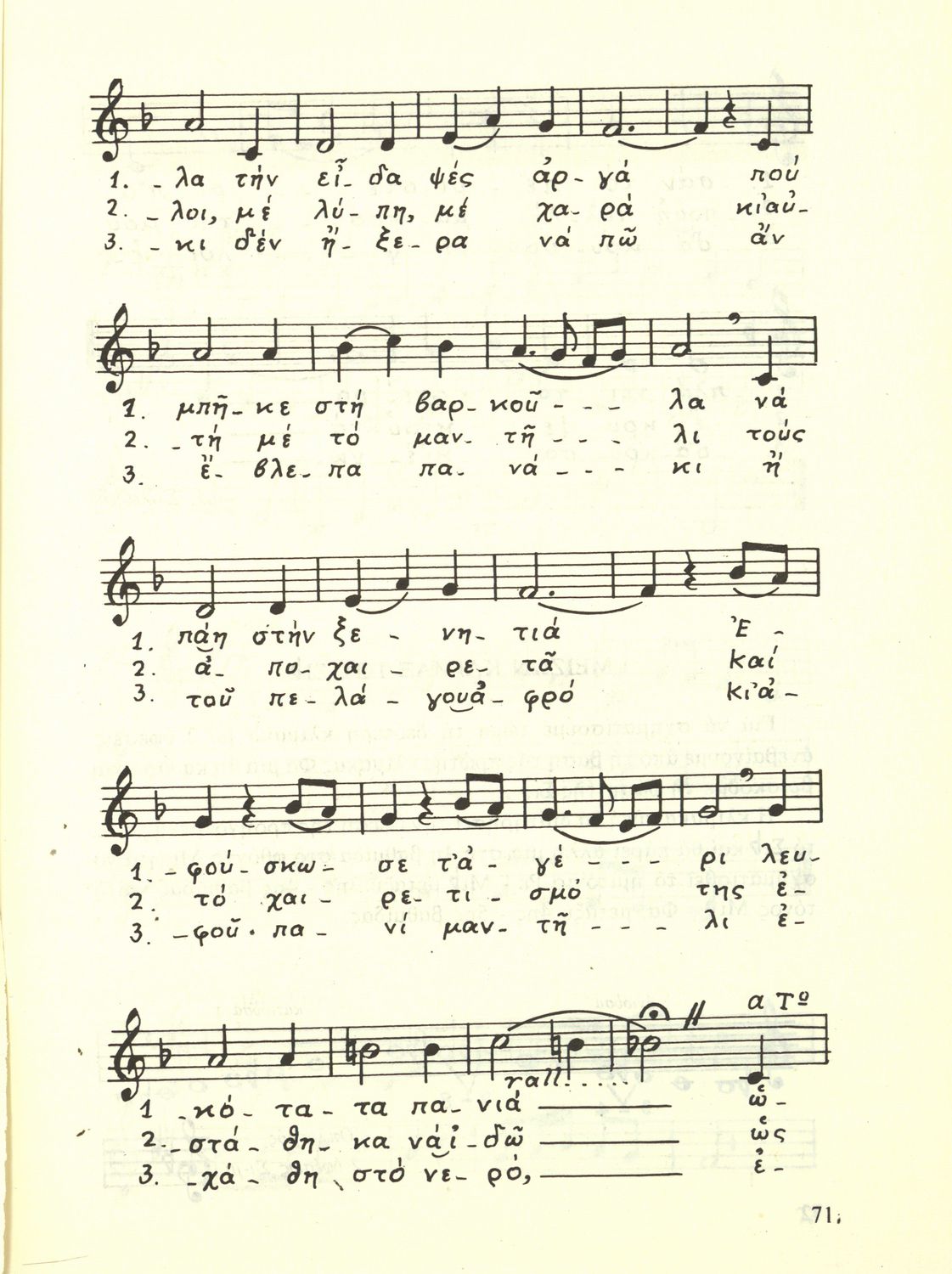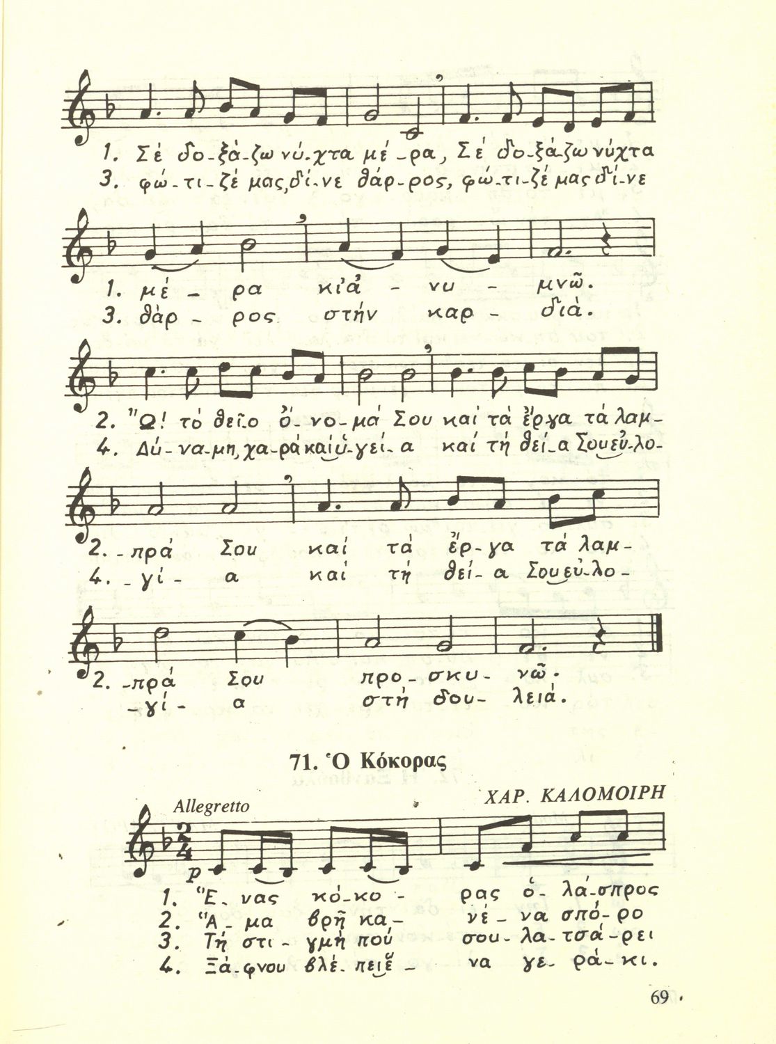Σχολικό εγχειρίδιο Μουσικής για την Α', Β', Γ΄, Δ' τάξη Γυμνασίου, Πρακτικών Λυκείων και Διδασκαλείων. Περιέχει ασκήσεις μελωδικές, χωρίς θεωρία.