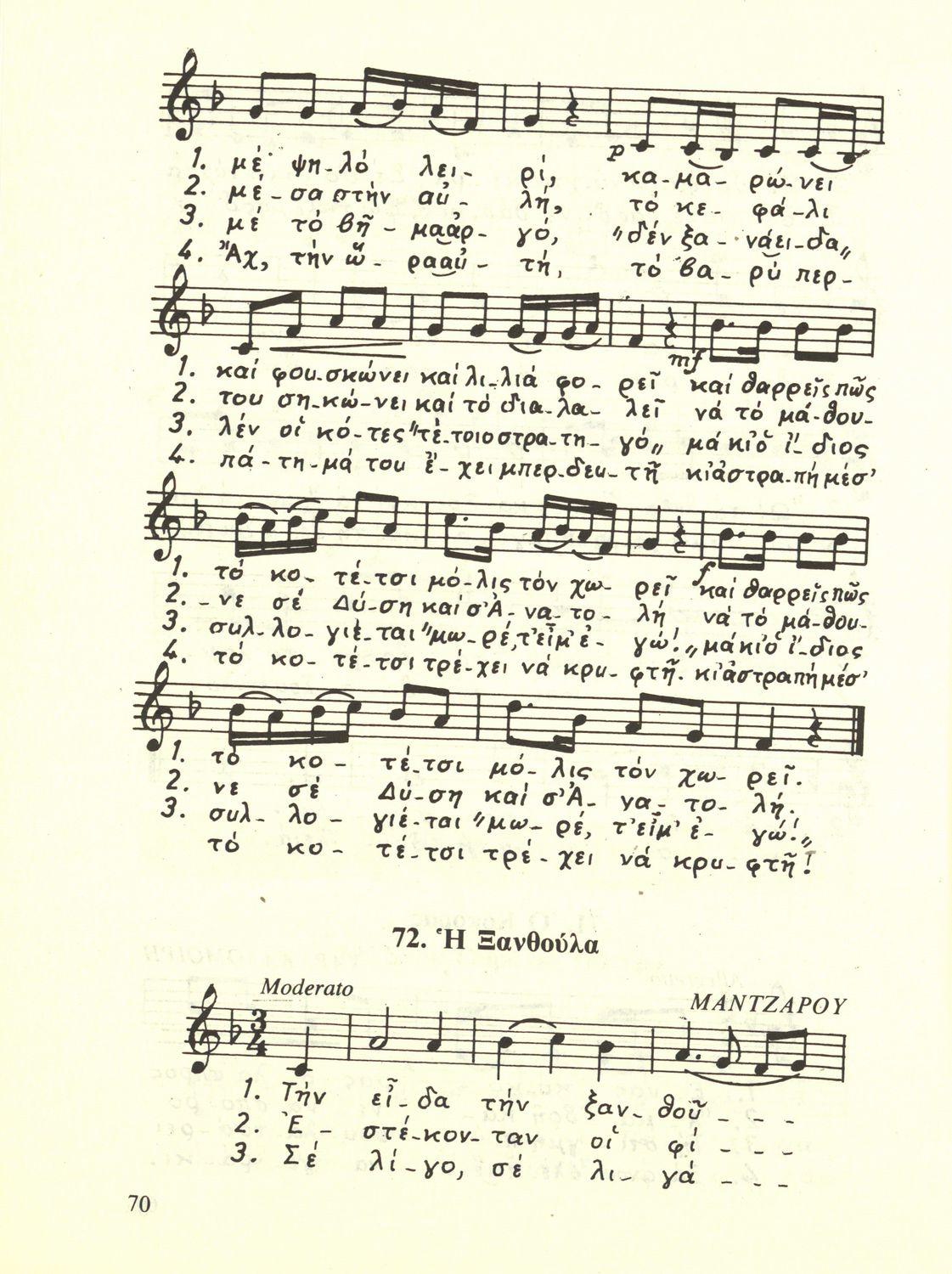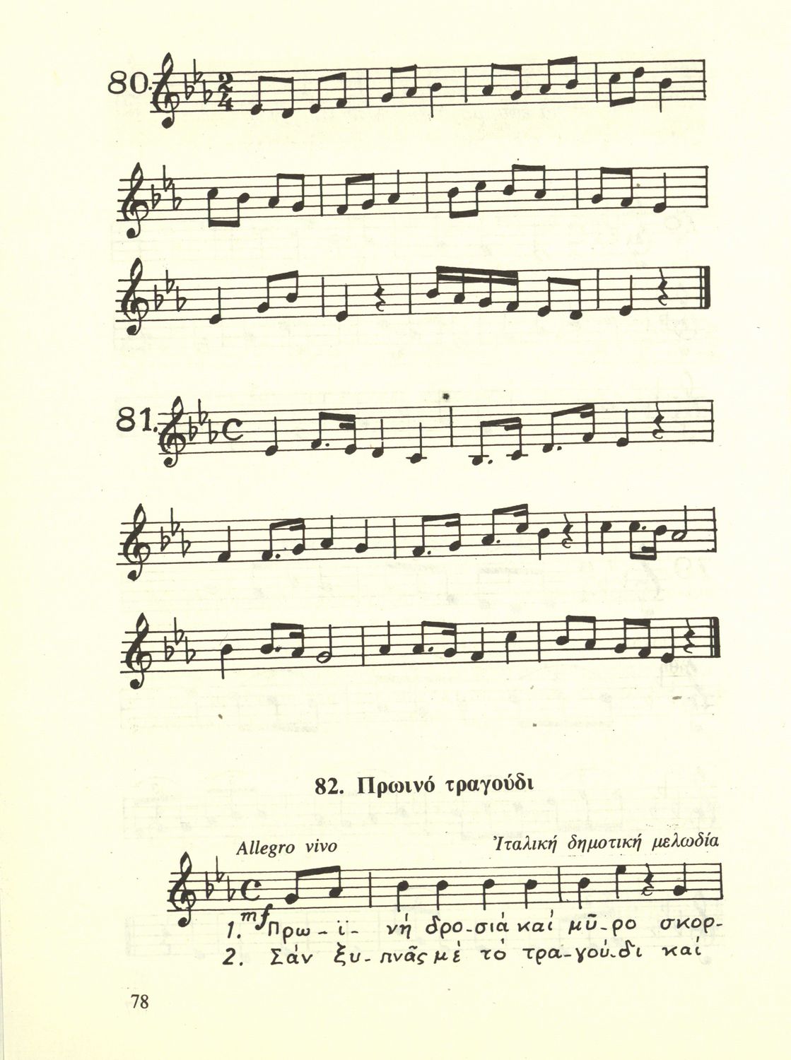 Σχολικό εγχειρίδιο Μουσικής για την Α', Β', Γ', Δ' Γυμνασίου, Πρακτικών Λυκείων και Διδασκαλείων. Περιέχει ασκήσεις μελωδικές, χωρίς θεωρία.