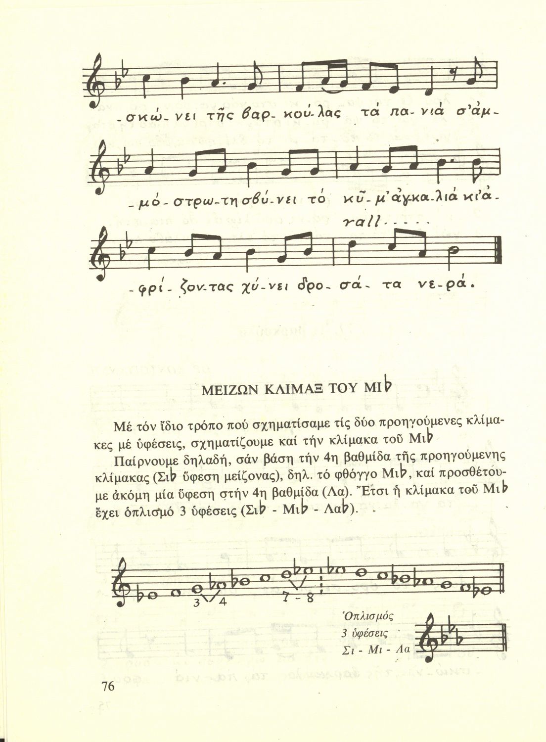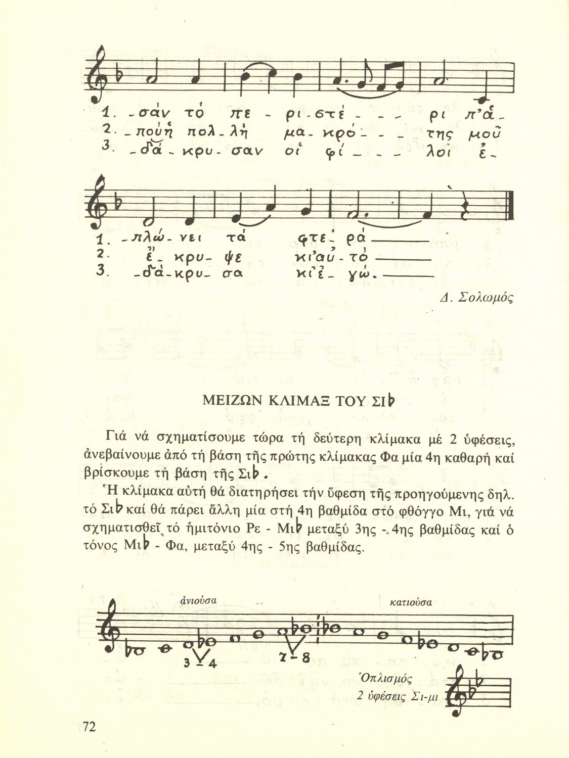 Σχολικό εγχειρίδιο Μουσικής για την Β' τάξη Εξαταξίων και Γ', Δ' τάξη Οκταταξίων σχολείων Μέσης Εκπαιδεύσεως. Περιέχει μείζονες κλίμακες και αλλοιωμένους φθόγγους, μελωδικές ασκήσεις και δίφωνες μελωδικές ...