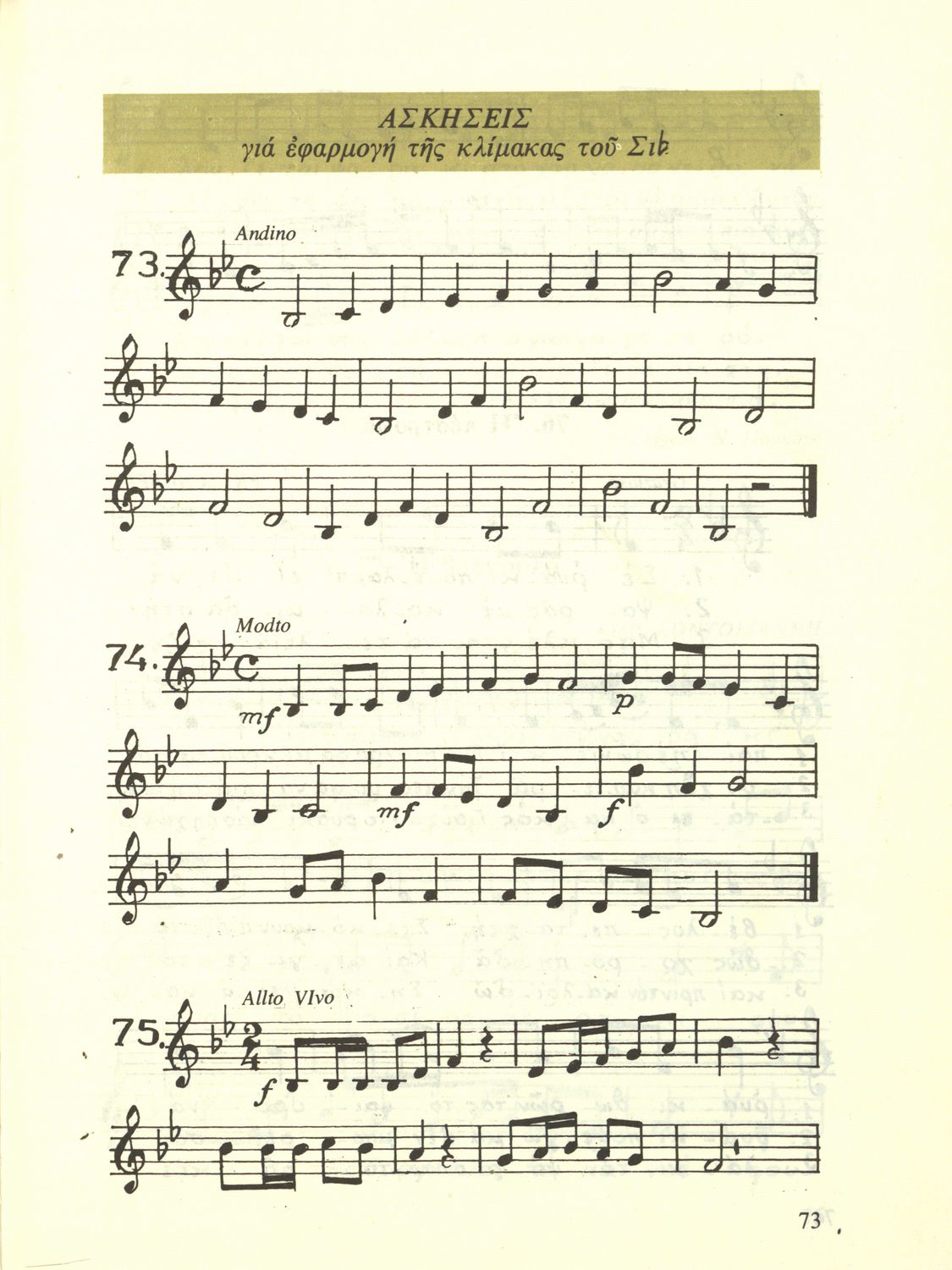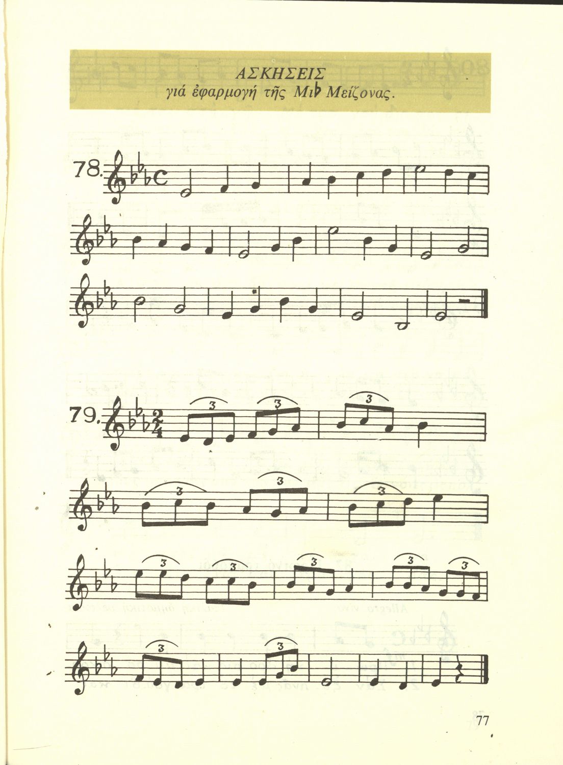 Σχολικό εγχειρίδιο Μουσικής για την Α', Β', Γ', Δ' Γυμνασίου και Πρακτικών Λυκείων. Περιέχει ασκήσεις μελωδικές, χωρίς θεωρία.
