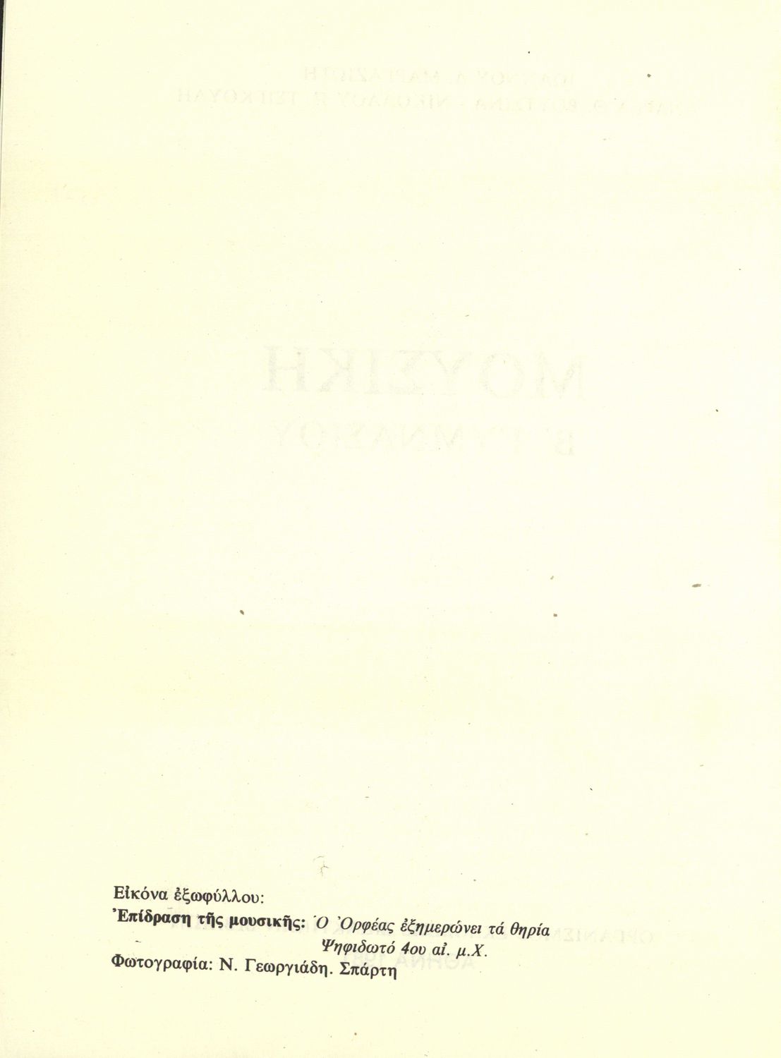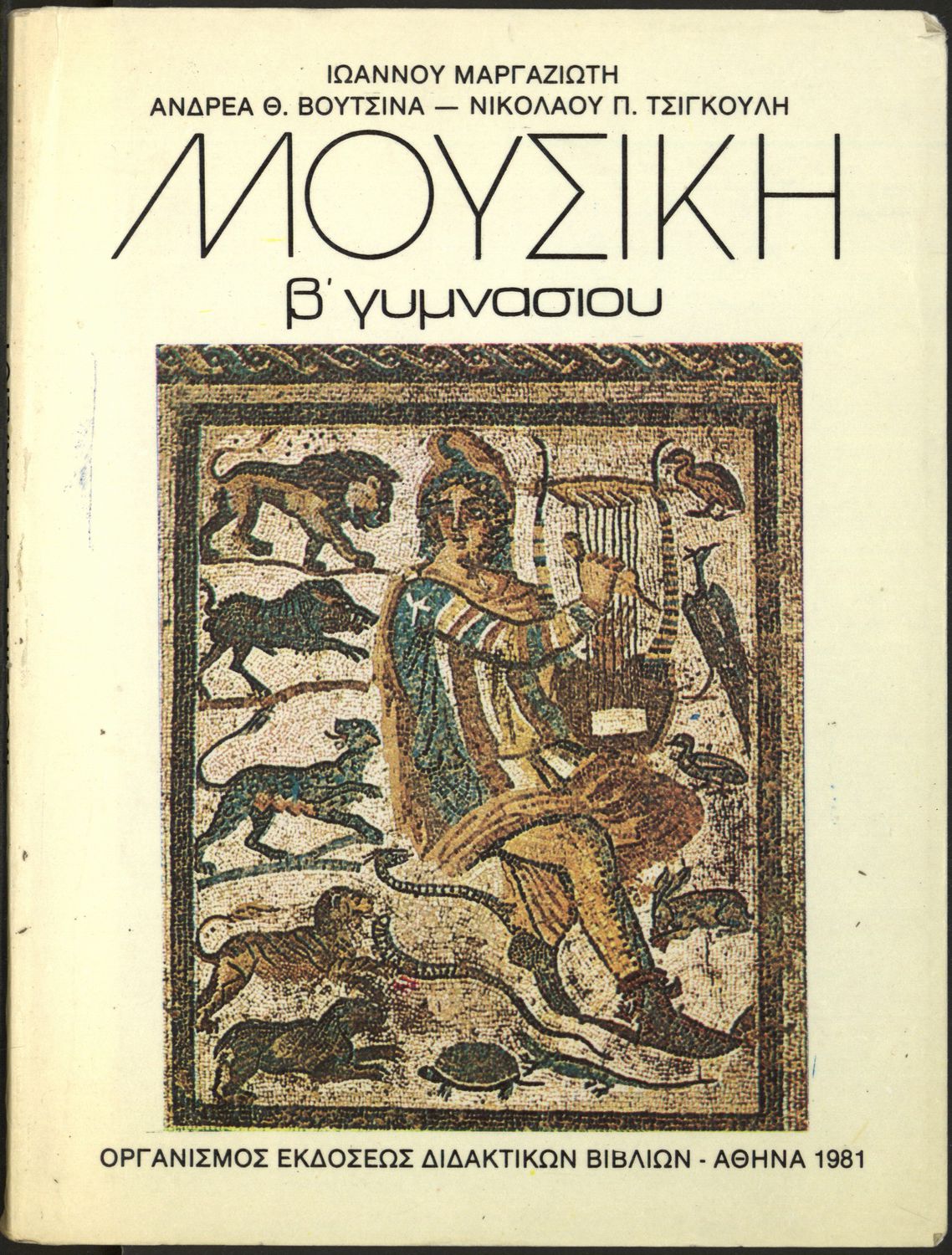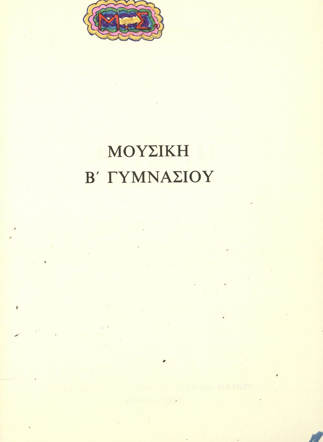 Σχολικό εγχειρίδιο Μουσικής για τους μαθητές της Β' Γυμνασίου. Περιέχει την ιστορία της Μουσικής στην Ελλάδα, επαναληπτικές ερωτήσεις και παραδοσιακά τραγούδια