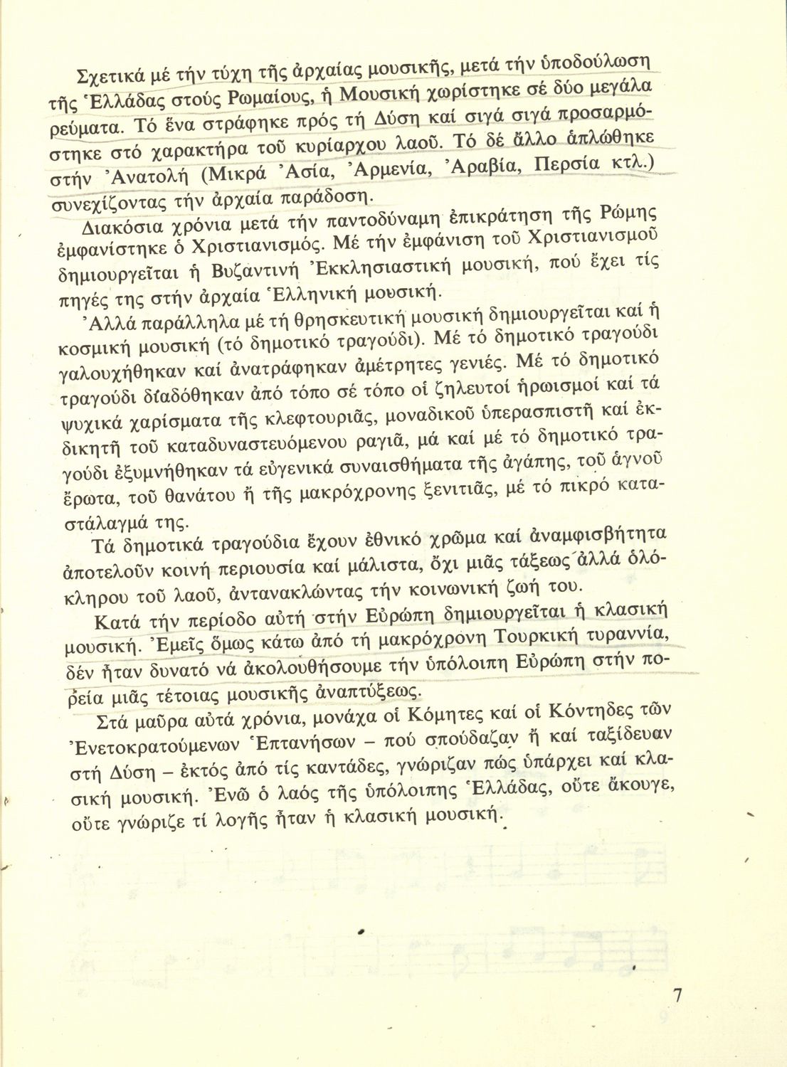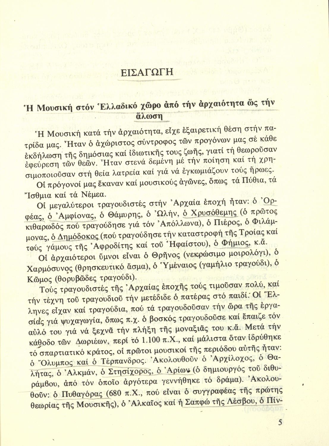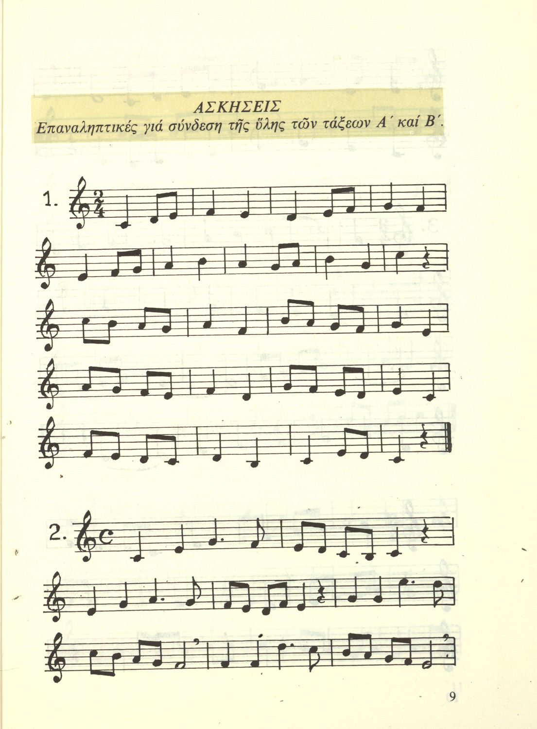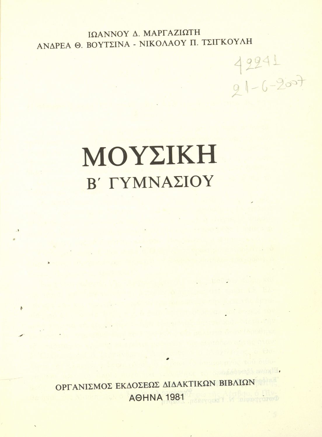 Σχολικό εγχειρίδιο Μουσικής για τους μαθητές της Β' Γυμνασίου. Περιέχει την ιστορία της Μουσικής στην Ελλάδα, επαναληπτικές ερωτήσεις και παραδοσιακά τραγούδια