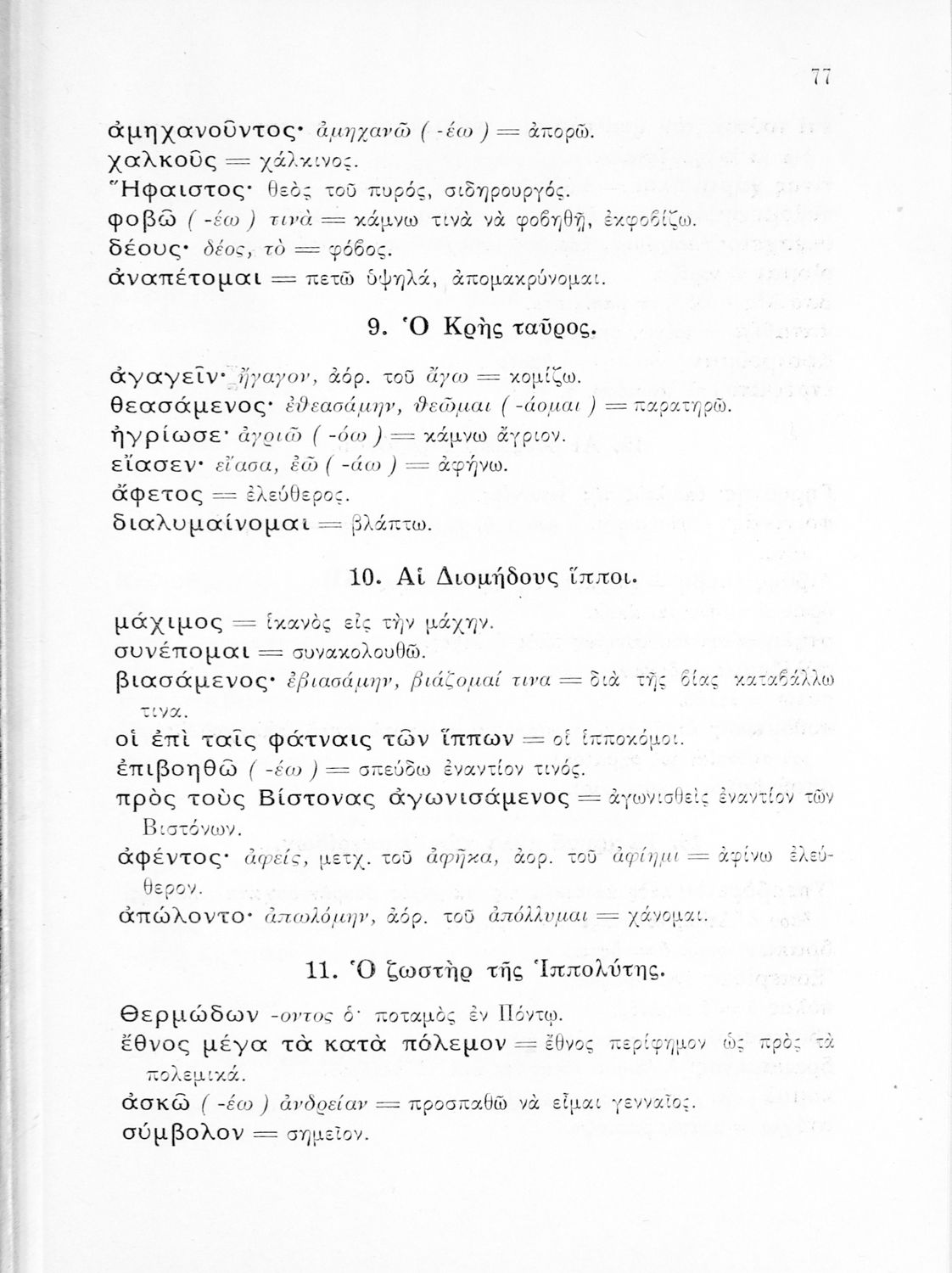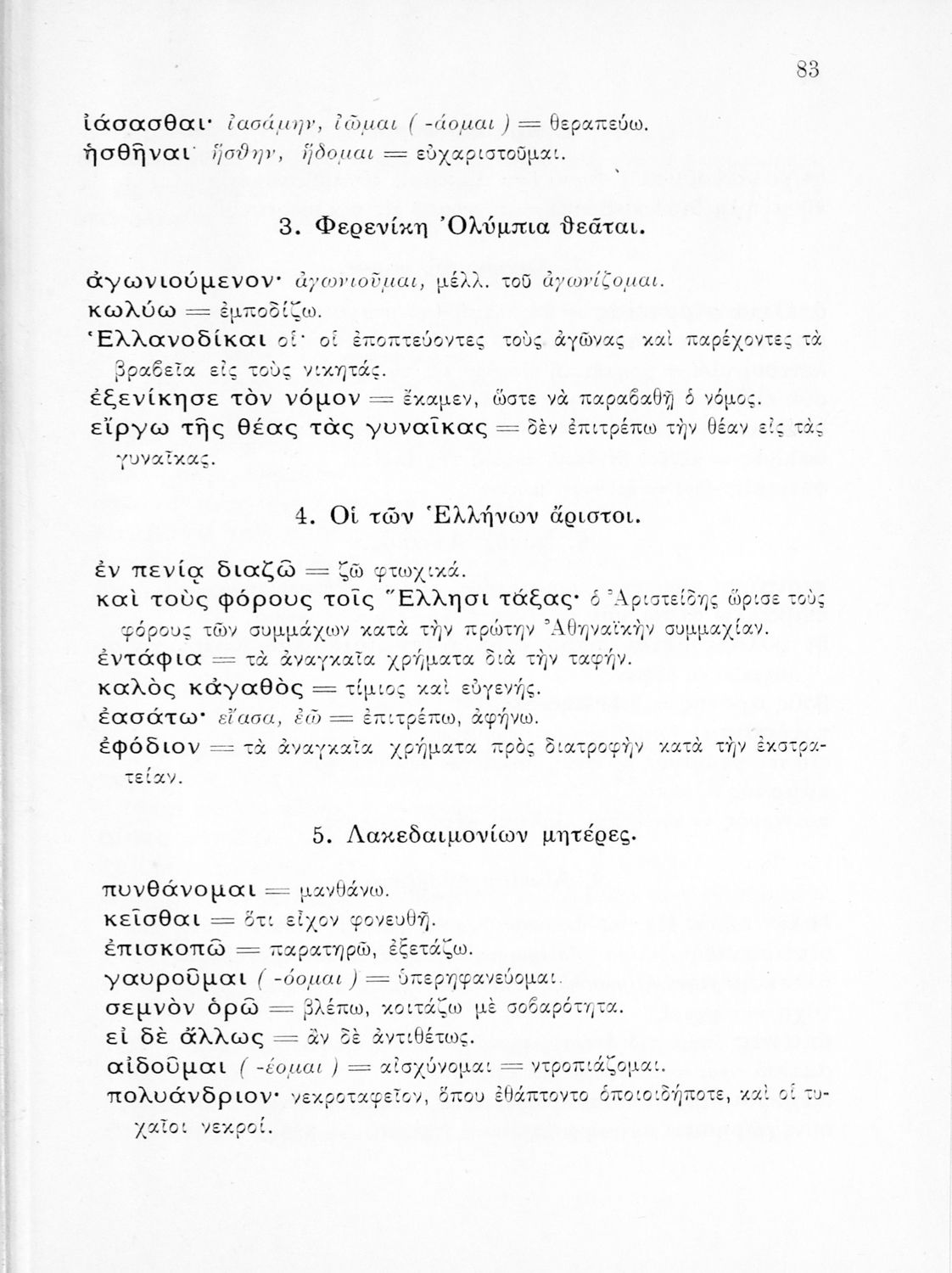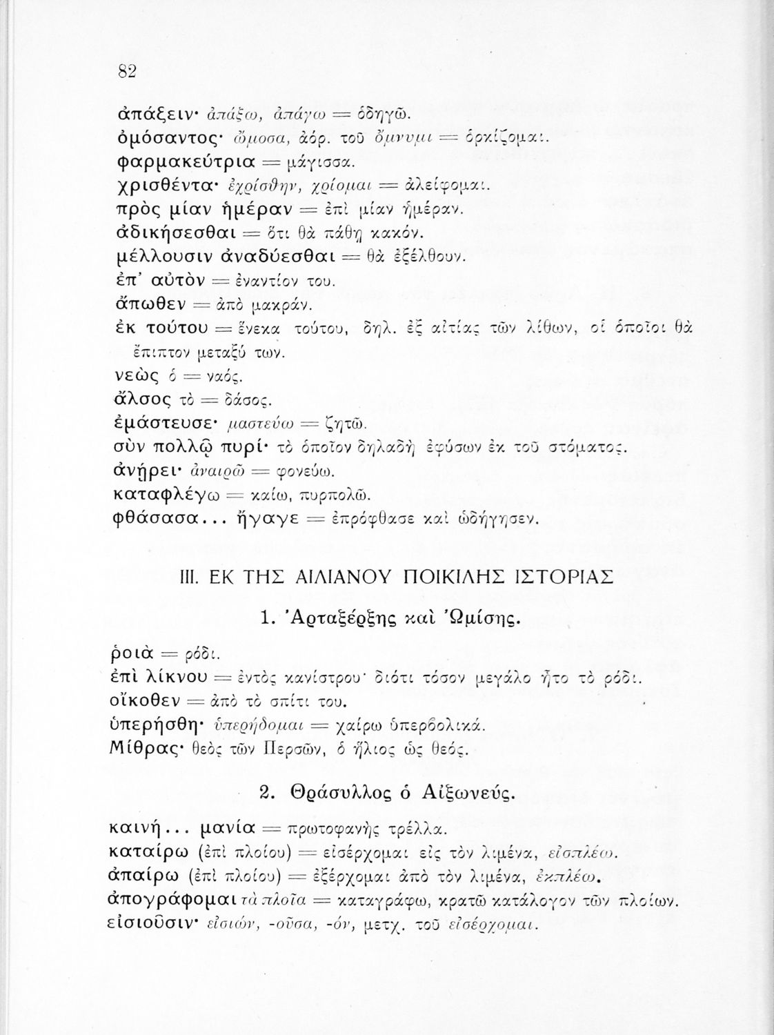 Σχολικό εγχειρίδιο Αρχαίων Ελληνικών Β΄ και Γ΄ Γυμνασίου και Αστικού Σχολείου που περιέχει αποσπάσματα από έργα αρχαίων Ελλήνων συγγραφέων, ερμηνευτικά και πραγματολογικά σχόλια και γραμματικές παρατηρήσεις.