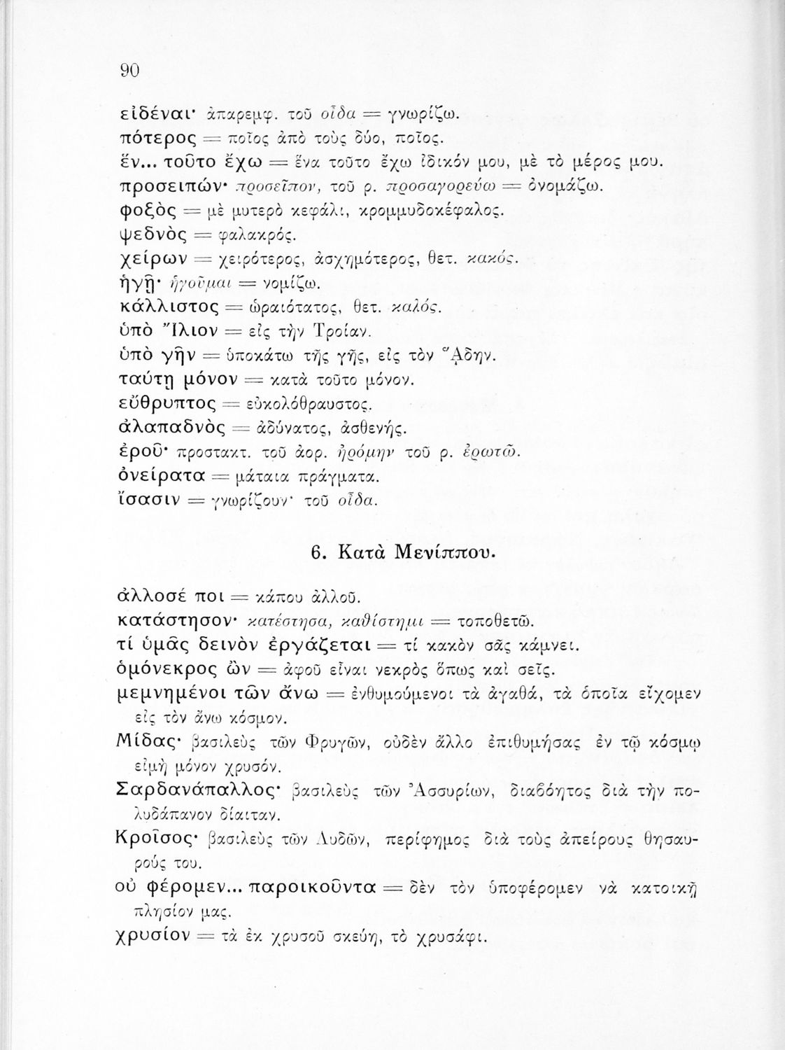 Σχολικό εγχειρίδιο Αρχαίων Ελληνικών Β΄ και Γ΄ Γυμνασίου που περιέχει αποσπάσματα από έργα αρχαίων Ελλήνων συγγραφέων, ερμηνευτικά και πραγματολογικά σχόλια και γραμματικές παρατηρήσεις.