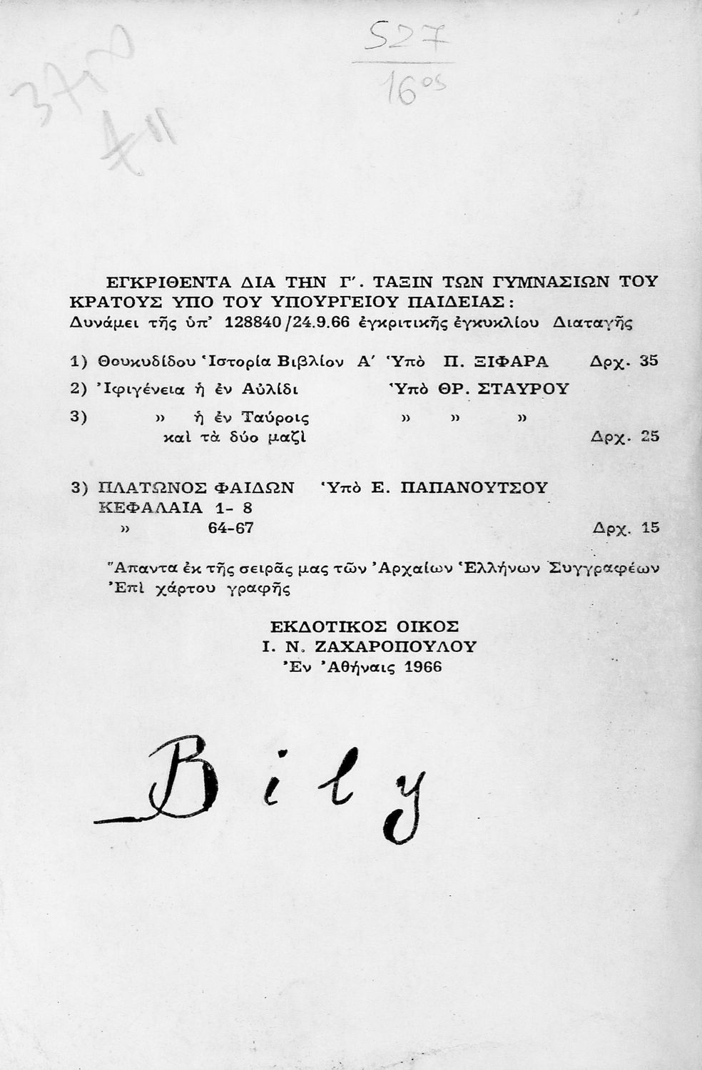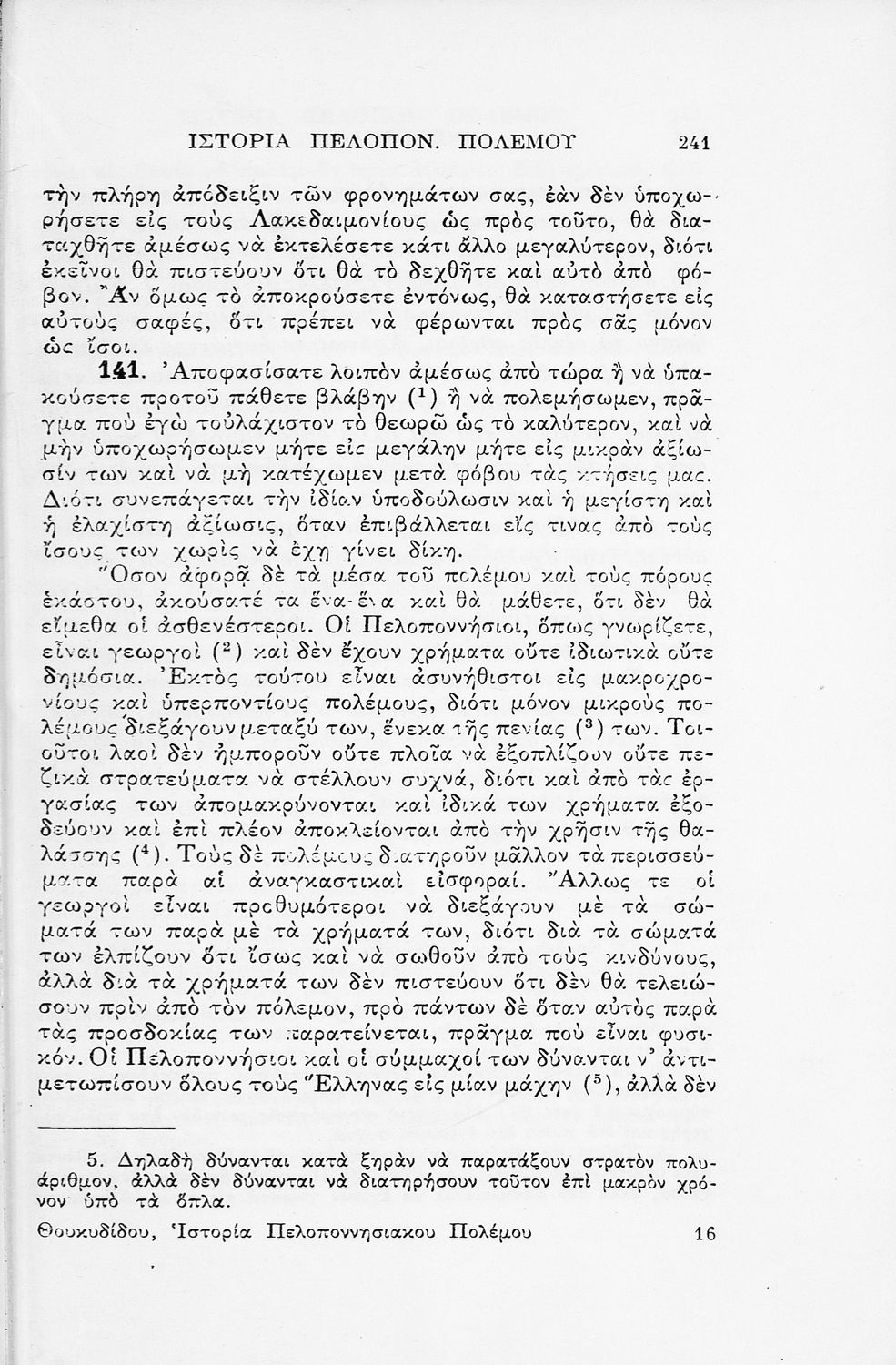 Θουκυδίδης, Ιστορία του Πελοποννησιακού Πολέμου, εγκριθέν δια την Γ΄ τάξιν του Γυμνασίου υπό του Υπουργείου Παιδείας