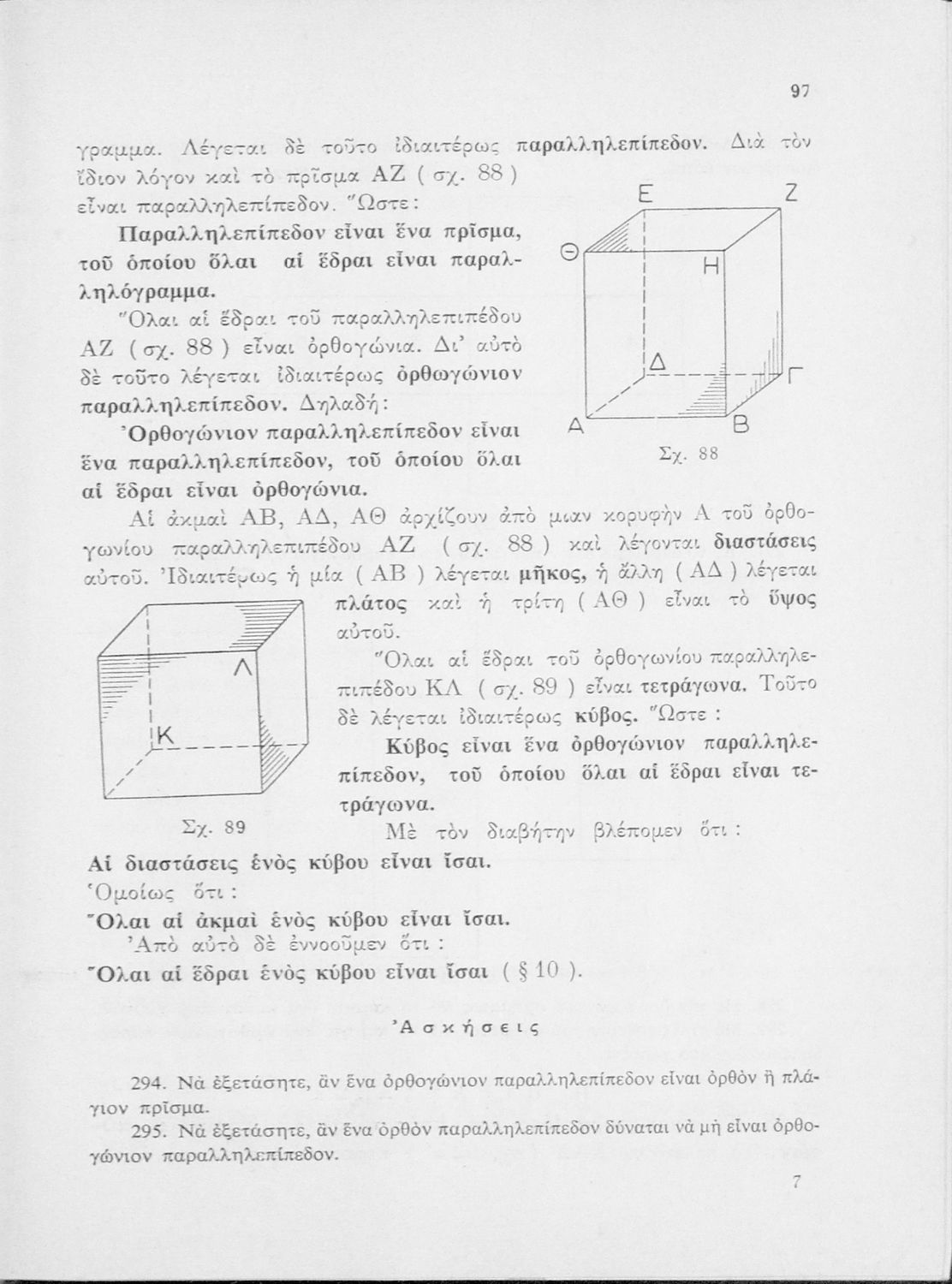 Βαθμίδα εκπαίδευσης: Δευτεροβάθμια Τάξη: Γυμνάσιο Μάθημα: Μαθηματικά Γλώσσα: Απλή καθαρεύουσα Παρουσίαση περιεχομένου: Σχολικό εγχειρίδιο Γεωμετρίας Γυμνασίου που περιλαμβάνει θεωρία και ασκήσεις και είναι χωρισμένο σε Επιπεδομετρία και Στερεομετρία. |