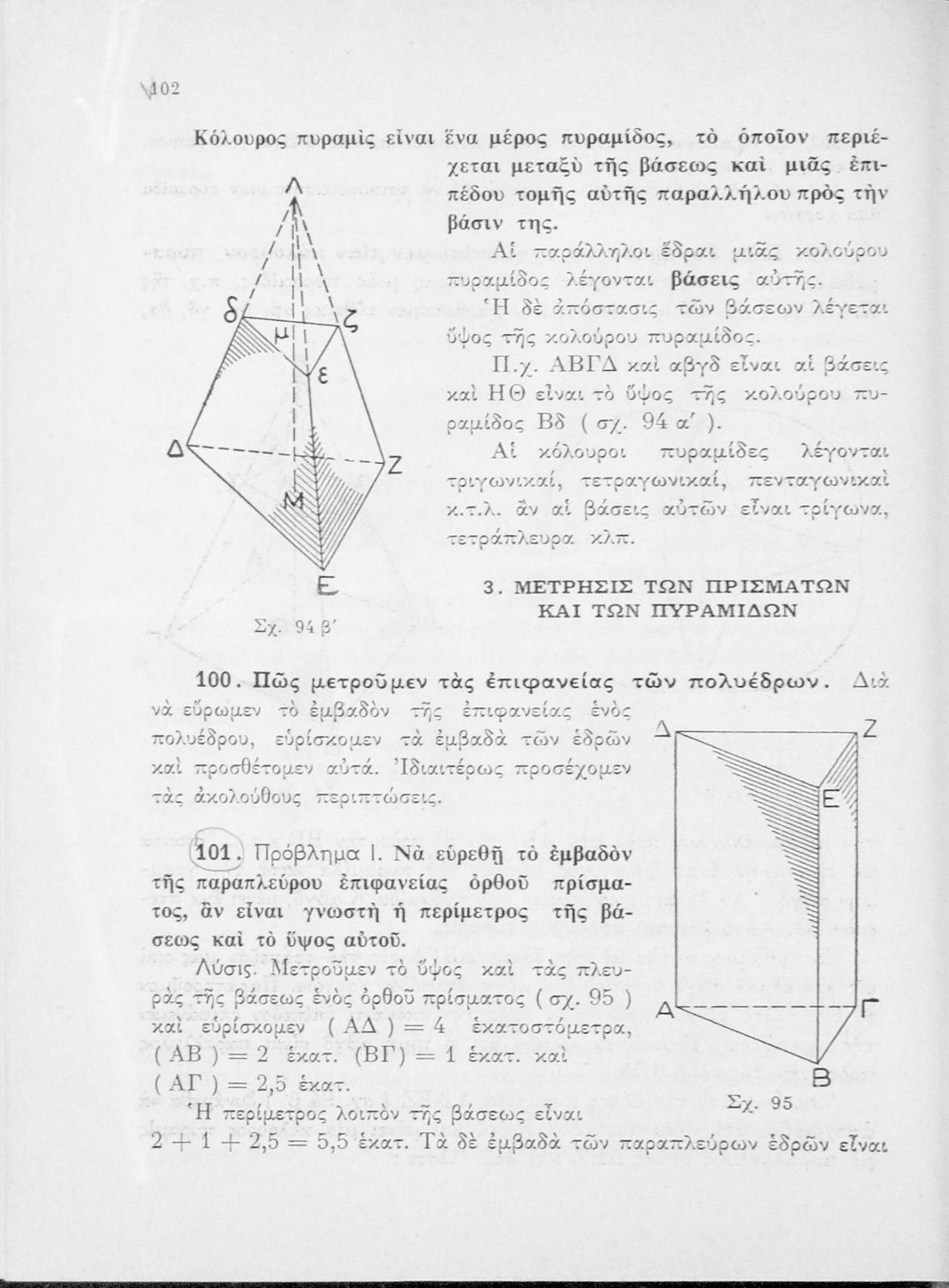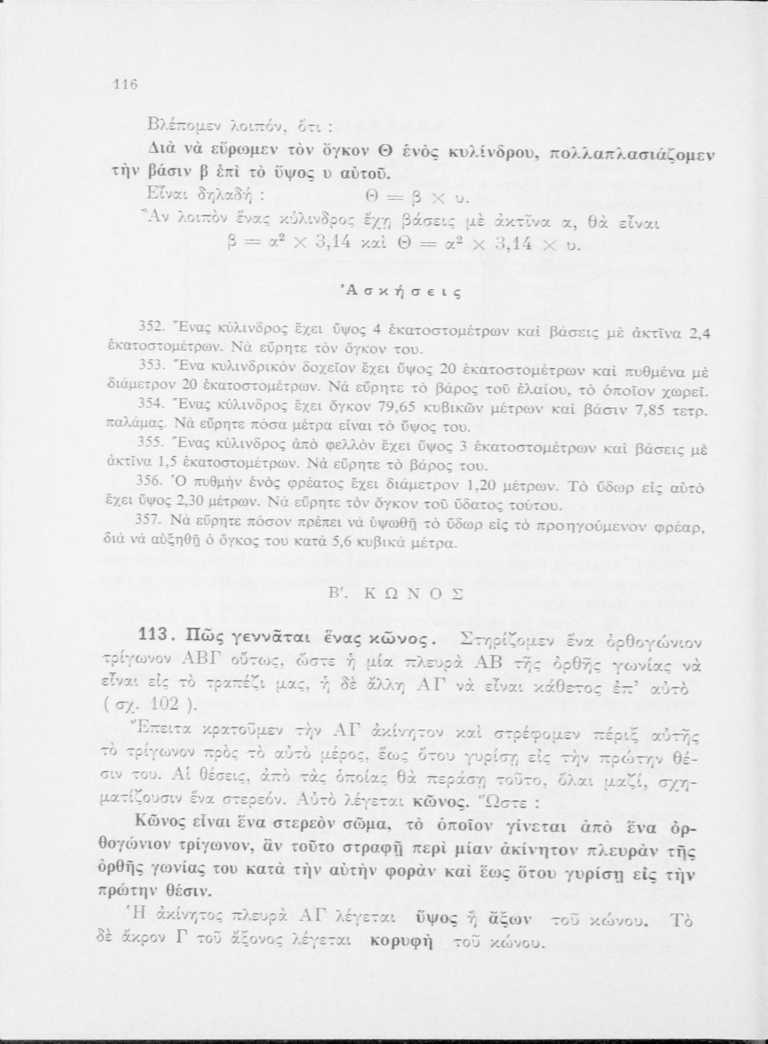 Σχολικό εγχειρίδιο Γεωμετρίας Γυμνασίου που περιλαμβάνει θεωρία και ασκήσεις και είναι χωρισμένο σε Επιπεδομετρία και Στερεομετρία.