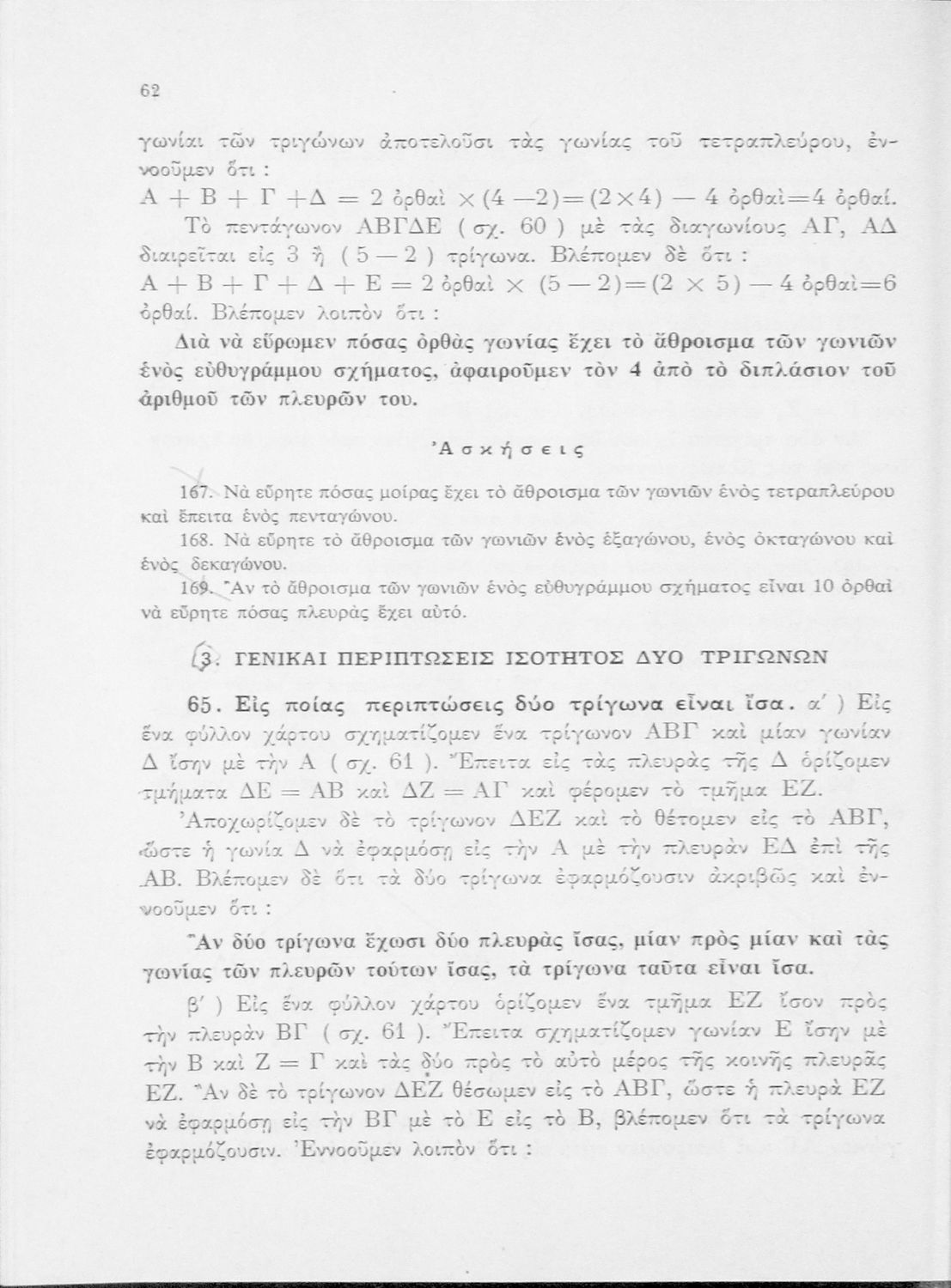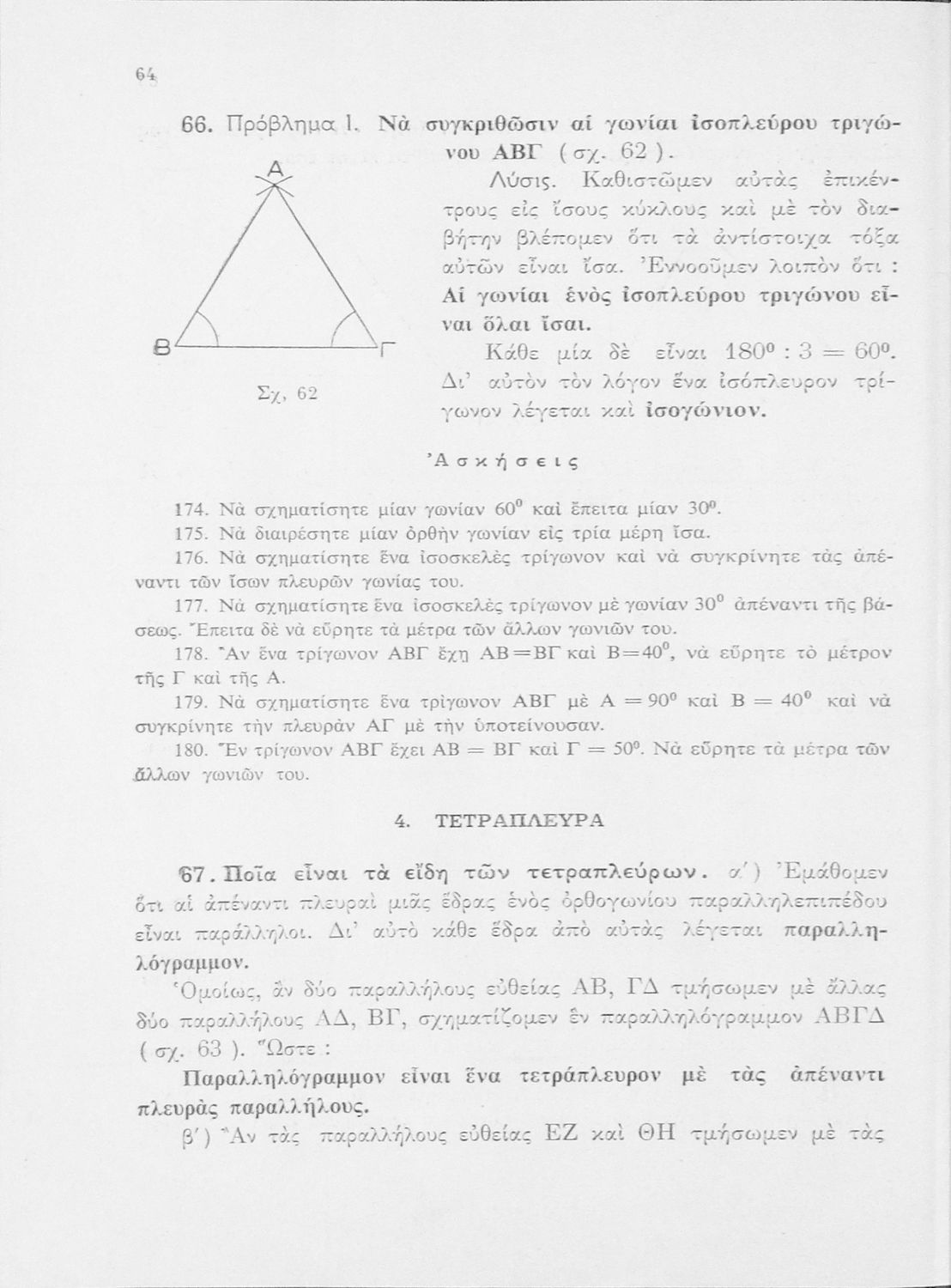 Σχολικό εγχειρίδιο των κατωτέρων τάξεων του Γυμνασίου για το μάθημα της Γεωμετρίας. Το εγχειρίδιο αποτελείται από την εισαγωγή, όπου αναλύονται οι βασικές έννοιες των ιδιοτήτων και γνωρισμάτων των γεωμετρικών ...