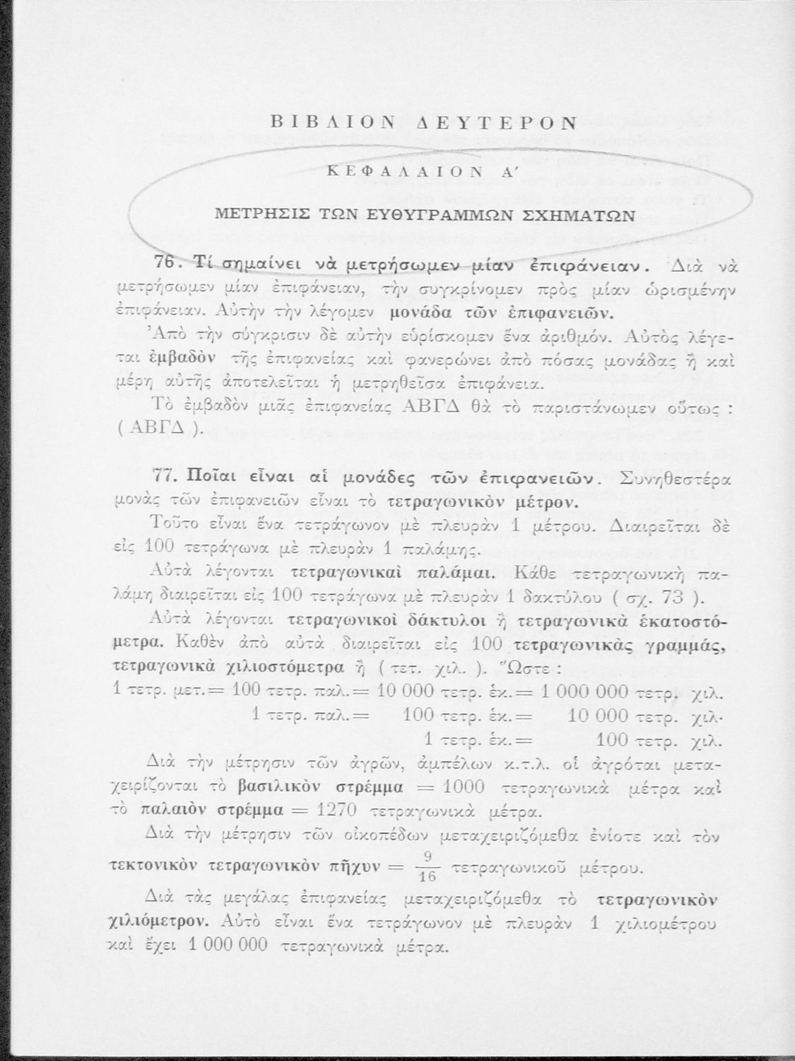 Σχολικό εγχειρίδιο Γεωμετρίας για τα Γυμνάσια και τα Αστικά Σχολεία που είναι χωρισμένο σε Επιπεδομετρία και Στερεομετρία και περιλαμβάνει θεωρία και ασκήσεις.