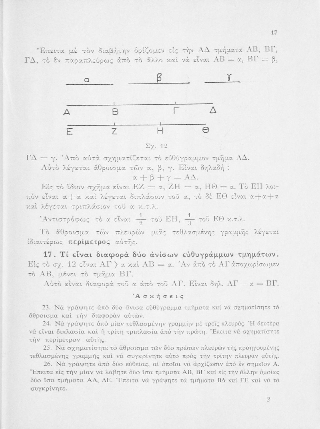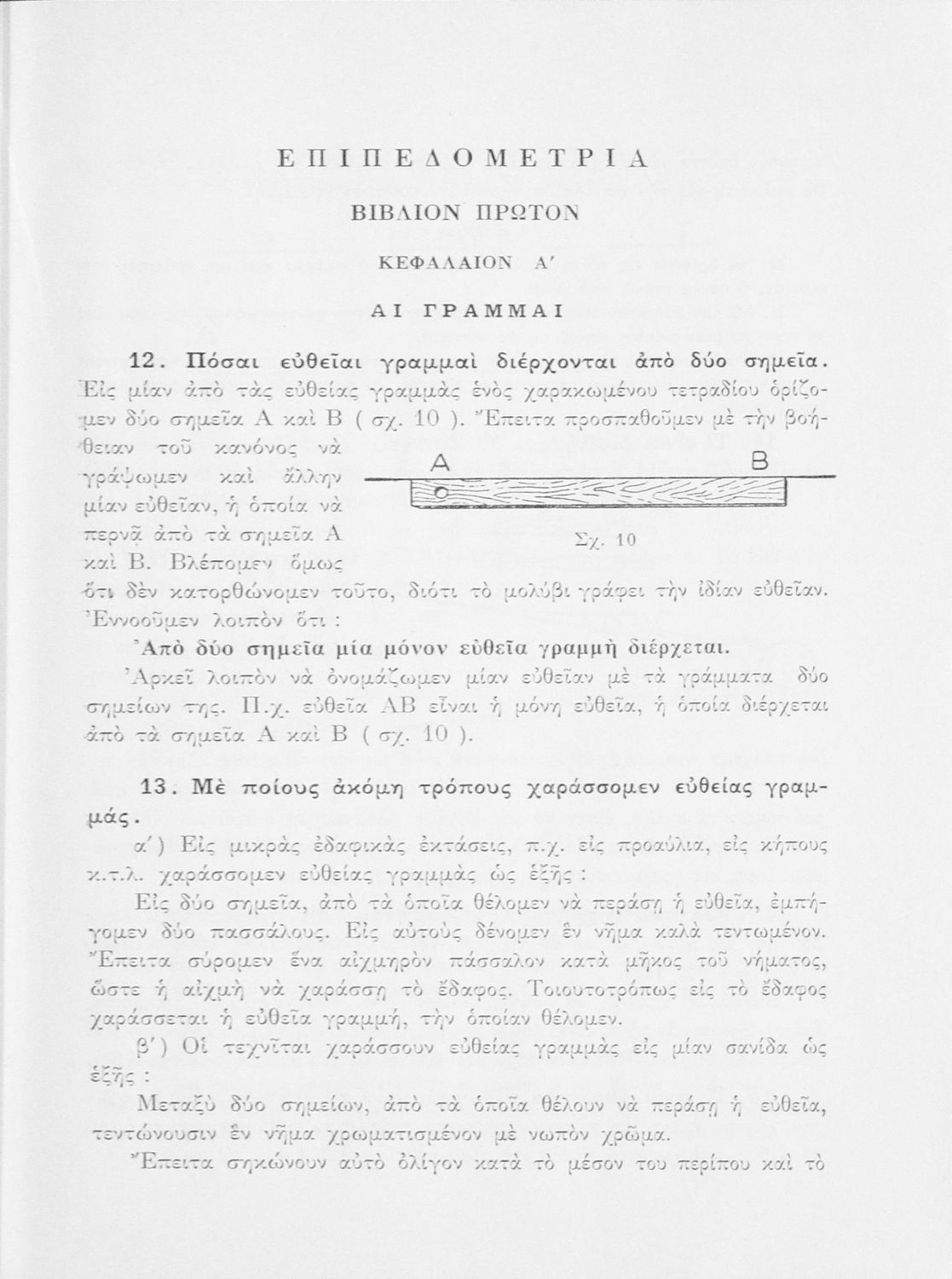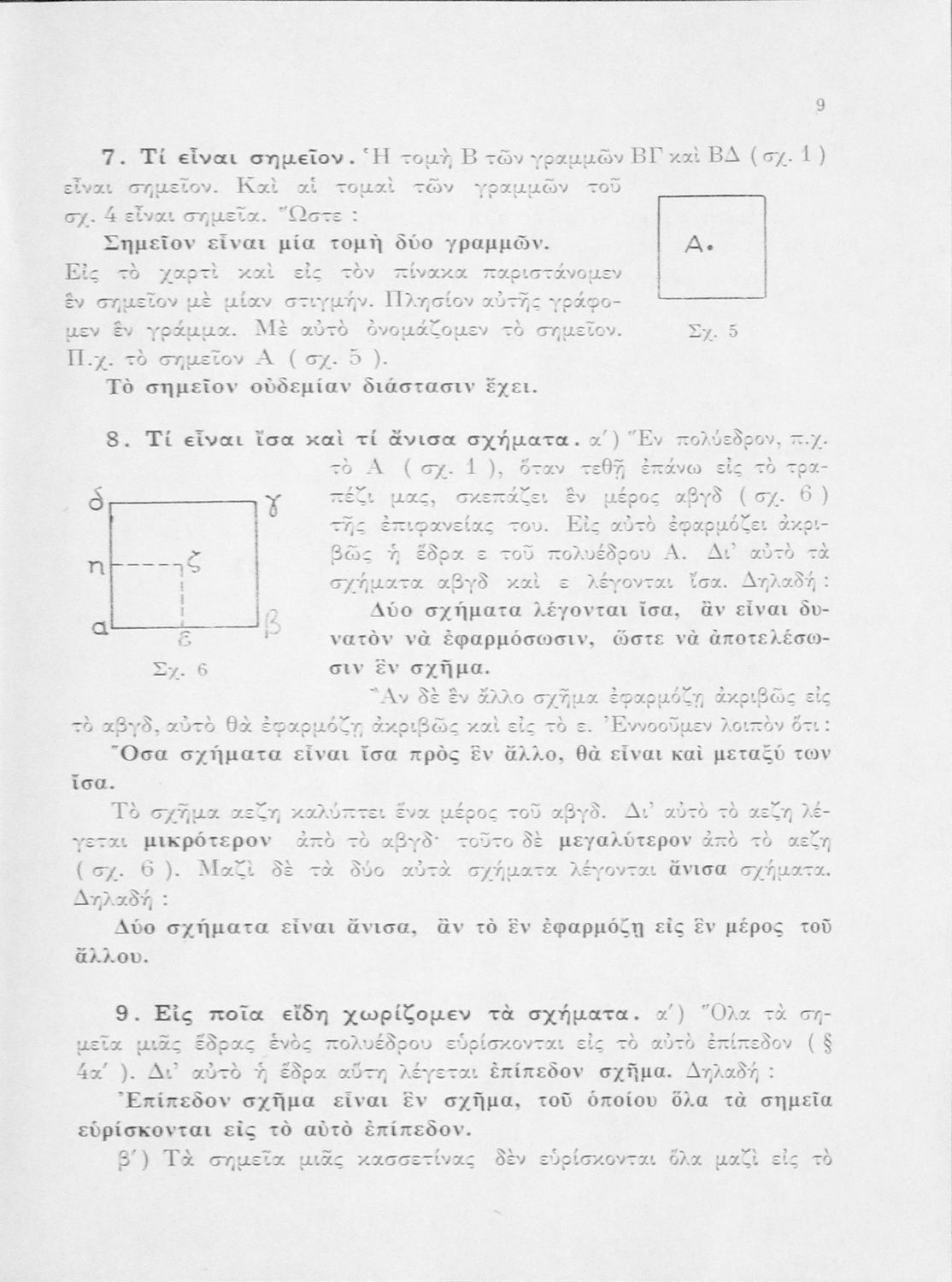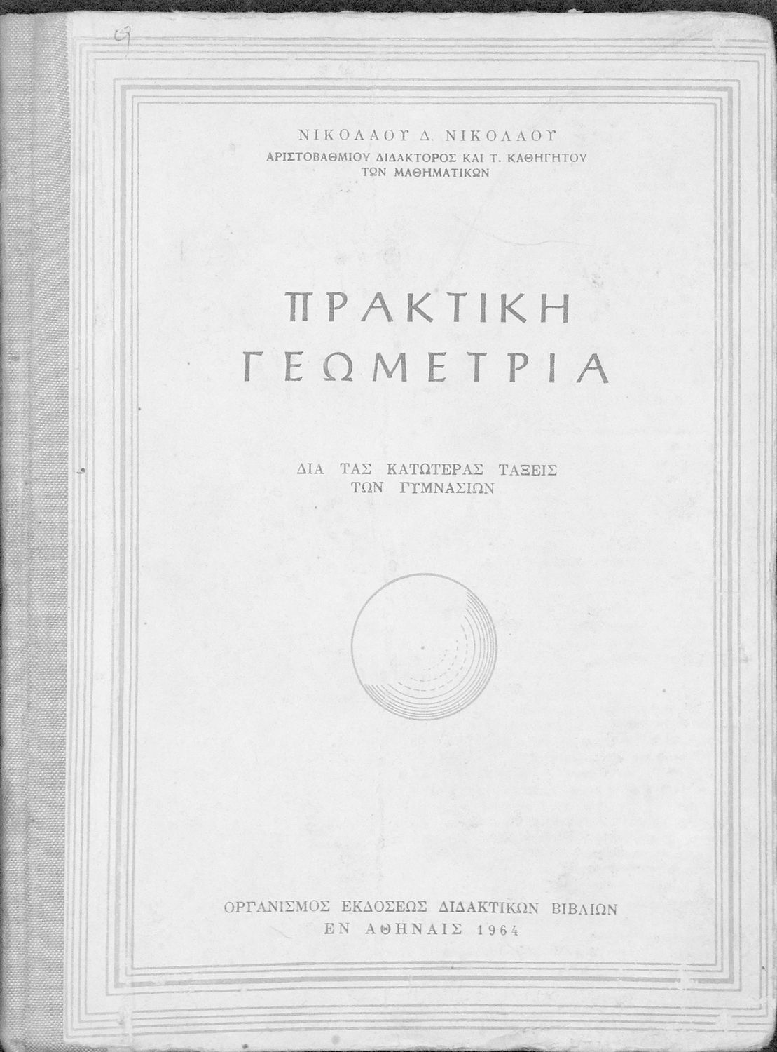 Βαθμίδα εκπαίδευσης: Δευτεροβάθμια Τάξη: Γυμνάσιο Μάθημα: Μαθηματικά Γλώσσα: Απλή καθαρεύουσα Παρουσίαση περιεχομένου: Σχολικό εγχειρίδιο Γεωμετρίας Γυμνασίου που περιλαμβάνει θεωρία και ασκήσεις και είναι χωρισμένο σε Επιπεδομετρία και Στερεομετρία. |