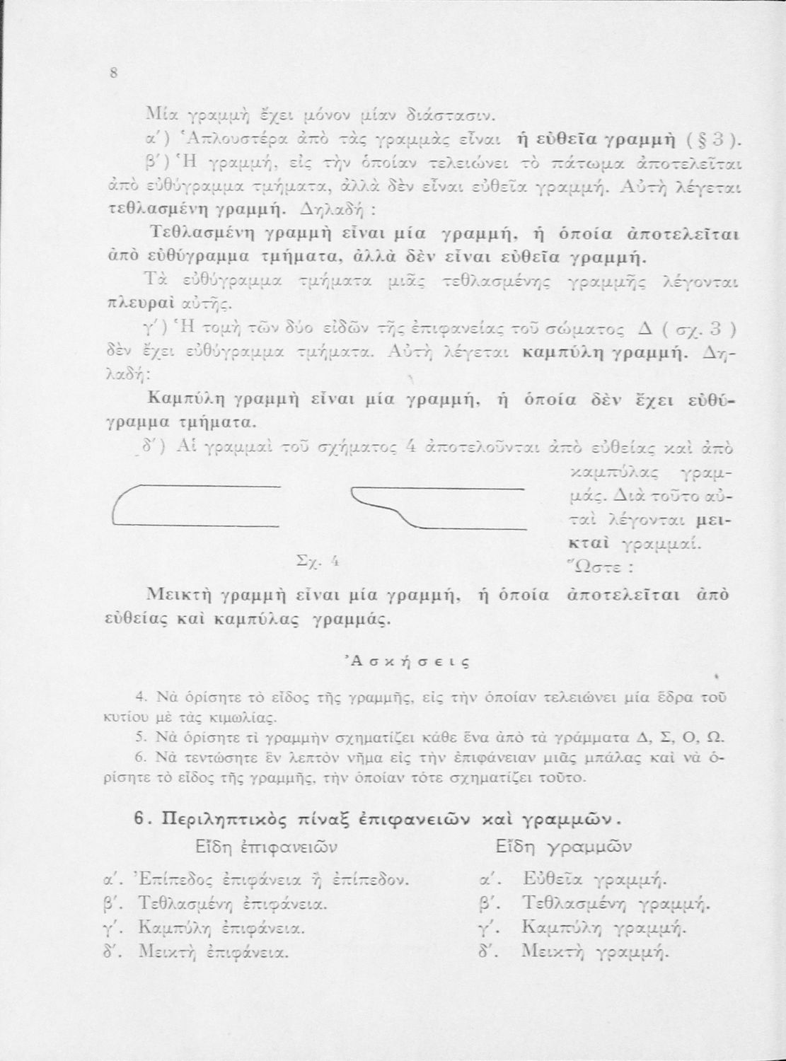 Σχολικό εγχειρίδιο Γεωμετρίας Γυμνασίου που περιλαμβάνει θεωρία και ασκήσεις και είναι χωρισμένο σε Επιπεδομετρία και Στερεομετρία.