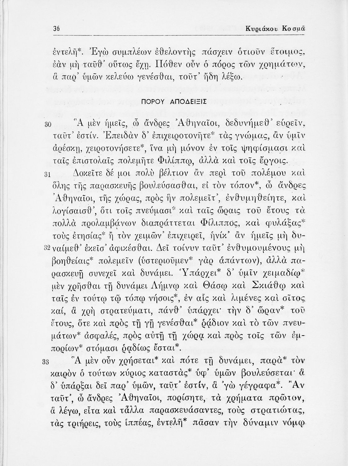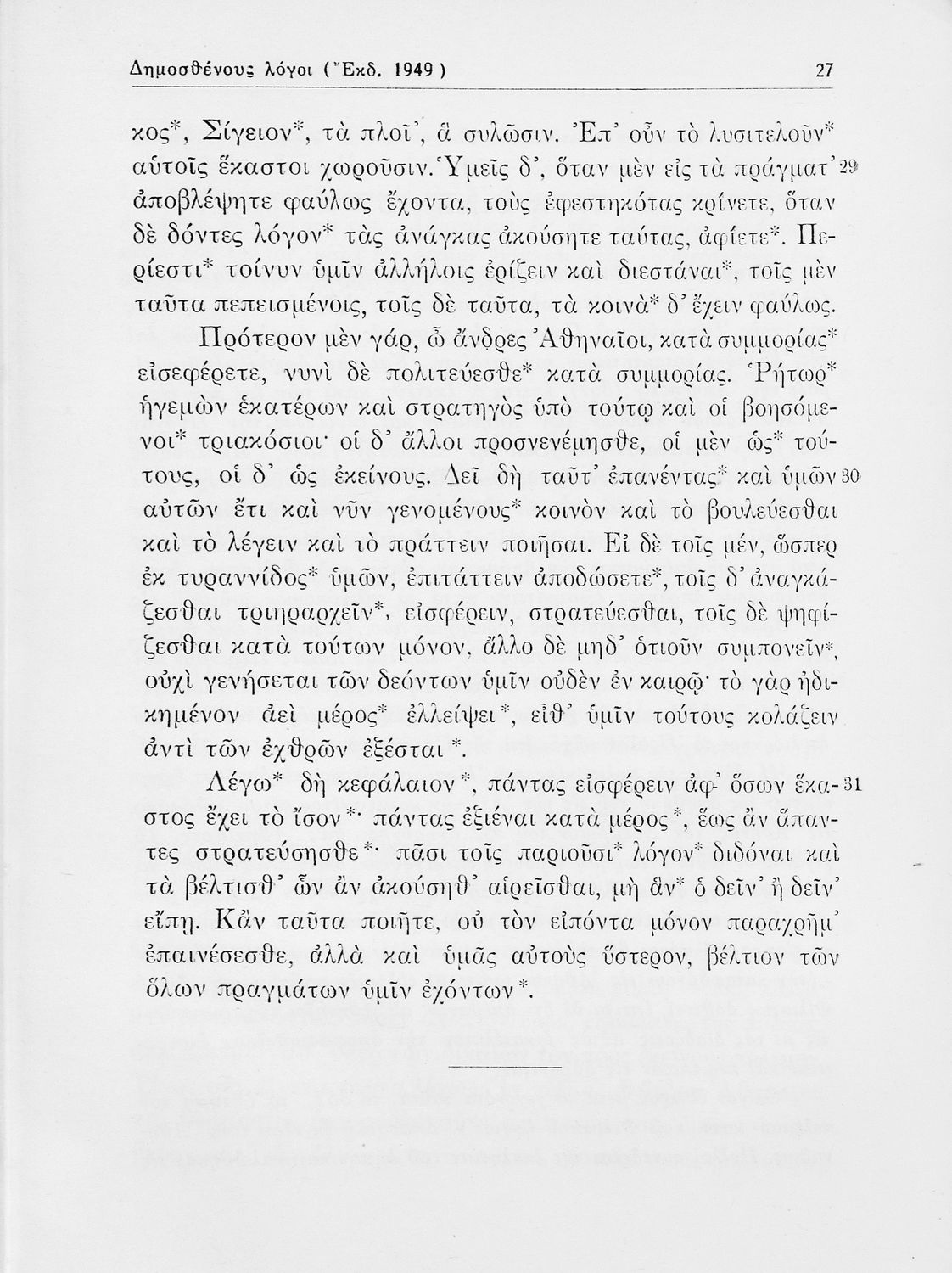 LDR 01252 2200193 4500 035 ## _a01-42246 040 ## _aΙνστιτούτο Εκπαιδευτικής Πολιτικής 041 ## _ael 100 ## _aΔημοσθένης _aΚυριάκος Κοσμάς (σχόλια) 110 ## _a42246 245 0# _aΔημοσθένους Λόγοι (Ολυνθιακοί Α΄- Β΄ και Φιλιππικοί Α΄- Β΄) δια την Δ' τάξιν των Γυμνασίων 260 ## _aΑθήνα _bΟργανισμός Εκδόσεως Σχολικών Βιβλίων _c1949 300 ## _a91 _bΣκίτσα (ασπρόμαυρα) 520 ## _aΣχολικό εγχειρίδιο Αρχαίων Ελληνικών Δ΄ Γυμνασίου που περιέχει τους Ολυνθιακούς Α΄ και Β΄ και τους Φιλιππικούς Α΄ και Β' του Δημοσθένη, ερμηνευτικά και πραγματολογικά σχόλια και γραμματικές παρατηρήσεις. 521 ## _aΔ' Γυμνασίου 522 ## _aΕλλάδα 546 ## _aΑπλή καθαρεύουσα 563 ## _aΜαλακό Εξώφυλλο 650 #4 _aΑρχαία _aΔημηγορία _aΔημοσθένης _aΛόγος _aΡητορική
